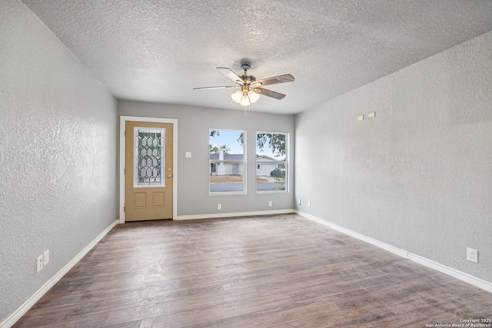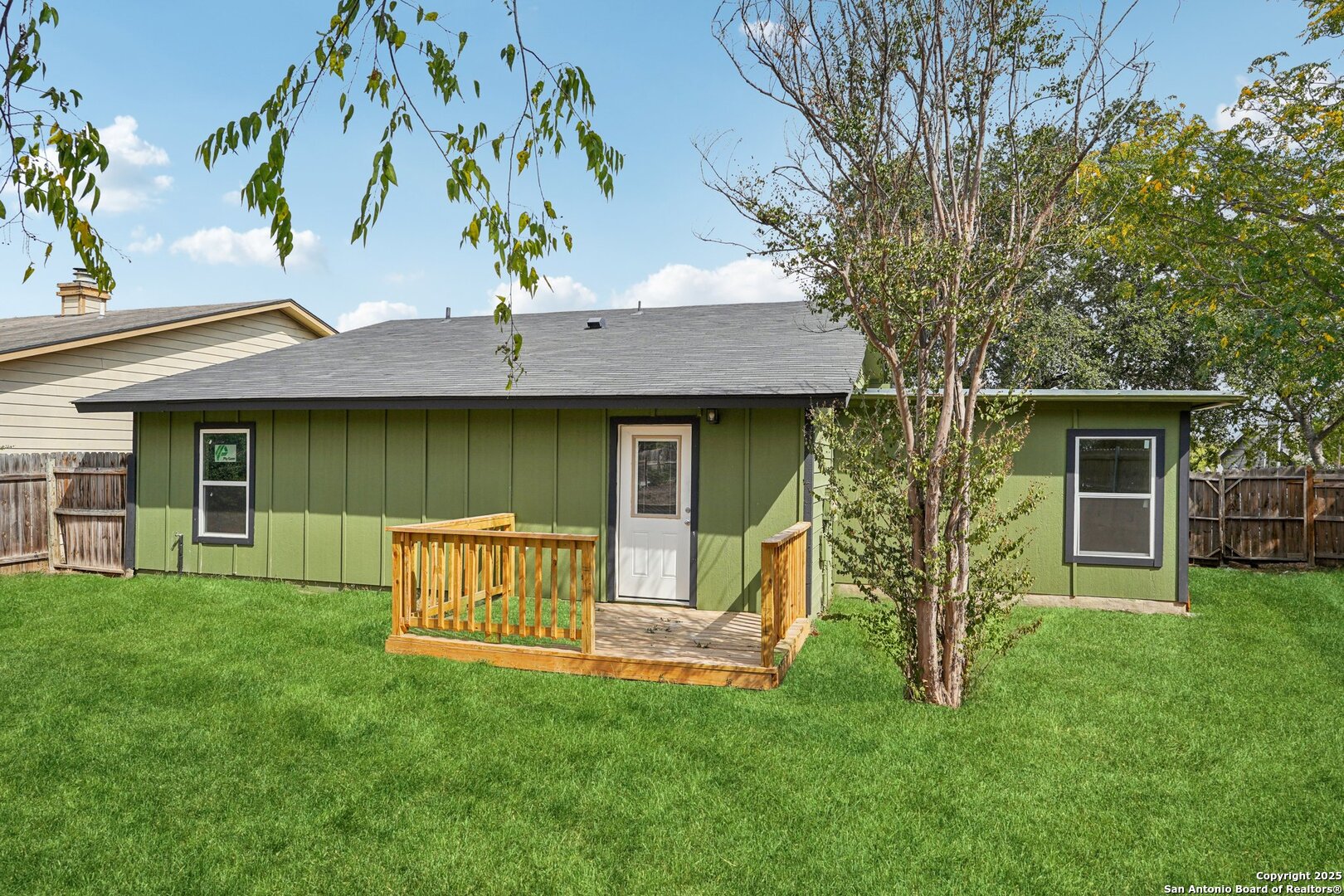 Charming Home in a Well-Established Neighborhood - No HOA! Welcome to this beautifully maintained 3-bedroom, 2-bath home featuring an inviting open-concept layout designed for modern living. Enjoy durable laminate flooring throughout, combining style and easy maintenance. The spacious living, dining, and kitchen areas flow seamlessly together - perfect for entertaining guests or relaxing with family. Step outside to an oversized backyard offering endless possibilities - from weekend BBQs to a future garden or pool. A one-car garage adds convenience and security. Ideally located just 30 minutes from downtown San Antonio, this home offers an easy commute to major employers, shopping, and dining. With no HOA, you'll have the freedom to truly make this home your own. Don't miss this opportunity to own a charming property in a great location - schedule your showing today!