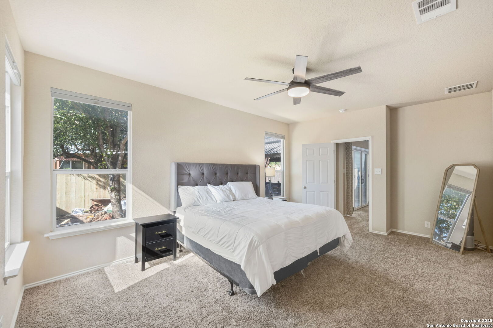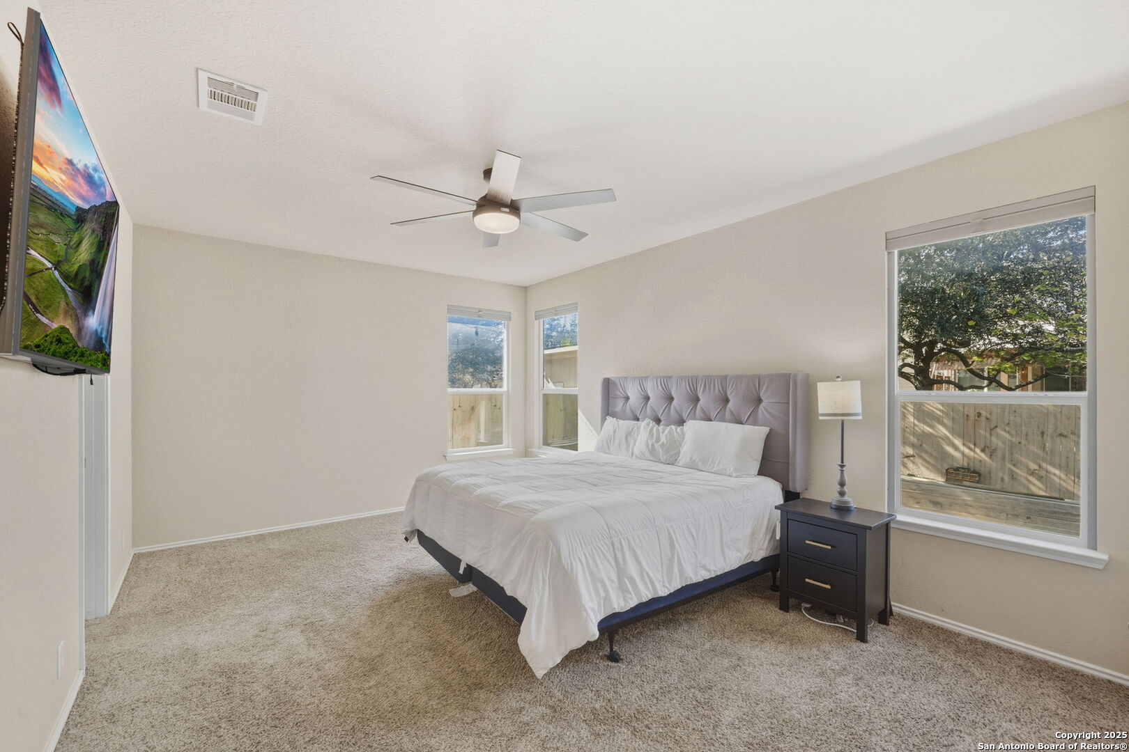 Welcome to 8819 Liberty Sky, a spacious 4-bedroom, 3-bath home in the desirable Tausch Farms/Wildhorse area featuring an open layout, a large island kitchen with granite counters and stainless-steel appliances, and multiple dining spaces perfect for everyday living and entertaining. The main level offers the primary suite, a dedicated study, and two additional bedrooms for convenient single-story functionality. Upstairs, a generous bonus room with its own full bath creates the ideal second primary suite, guest space, or multigenerational setup. With nearly 2,900 sq ft, a fenced backyard, and access to community amenities including a pool, playground, and neighborhood events, this home provides comfort, flexibility, and a truly welcoming lifestyle in one of Northwest San Antonio's most sought-after areas.