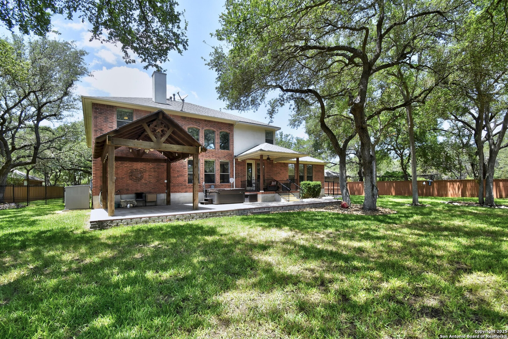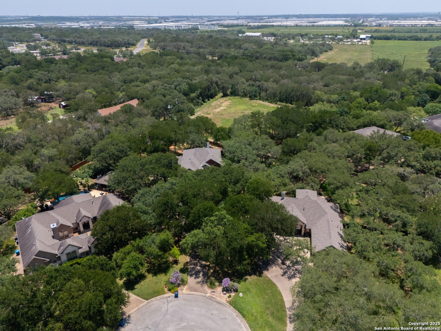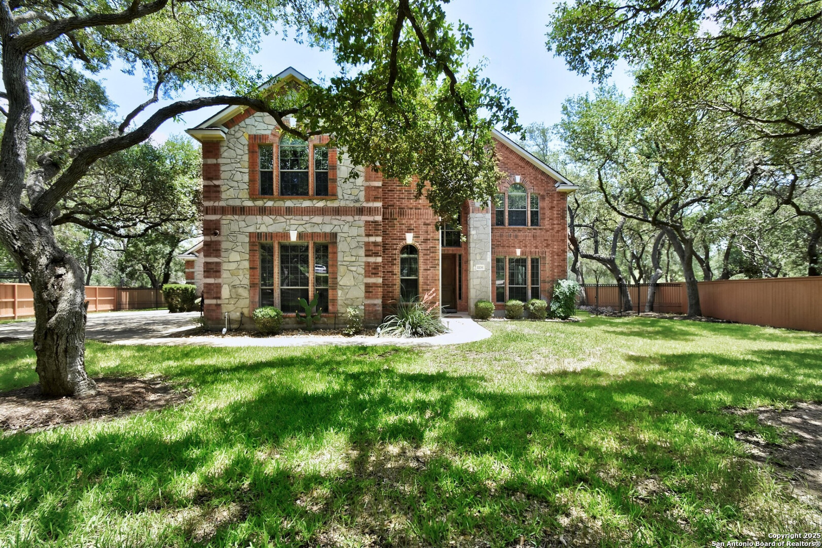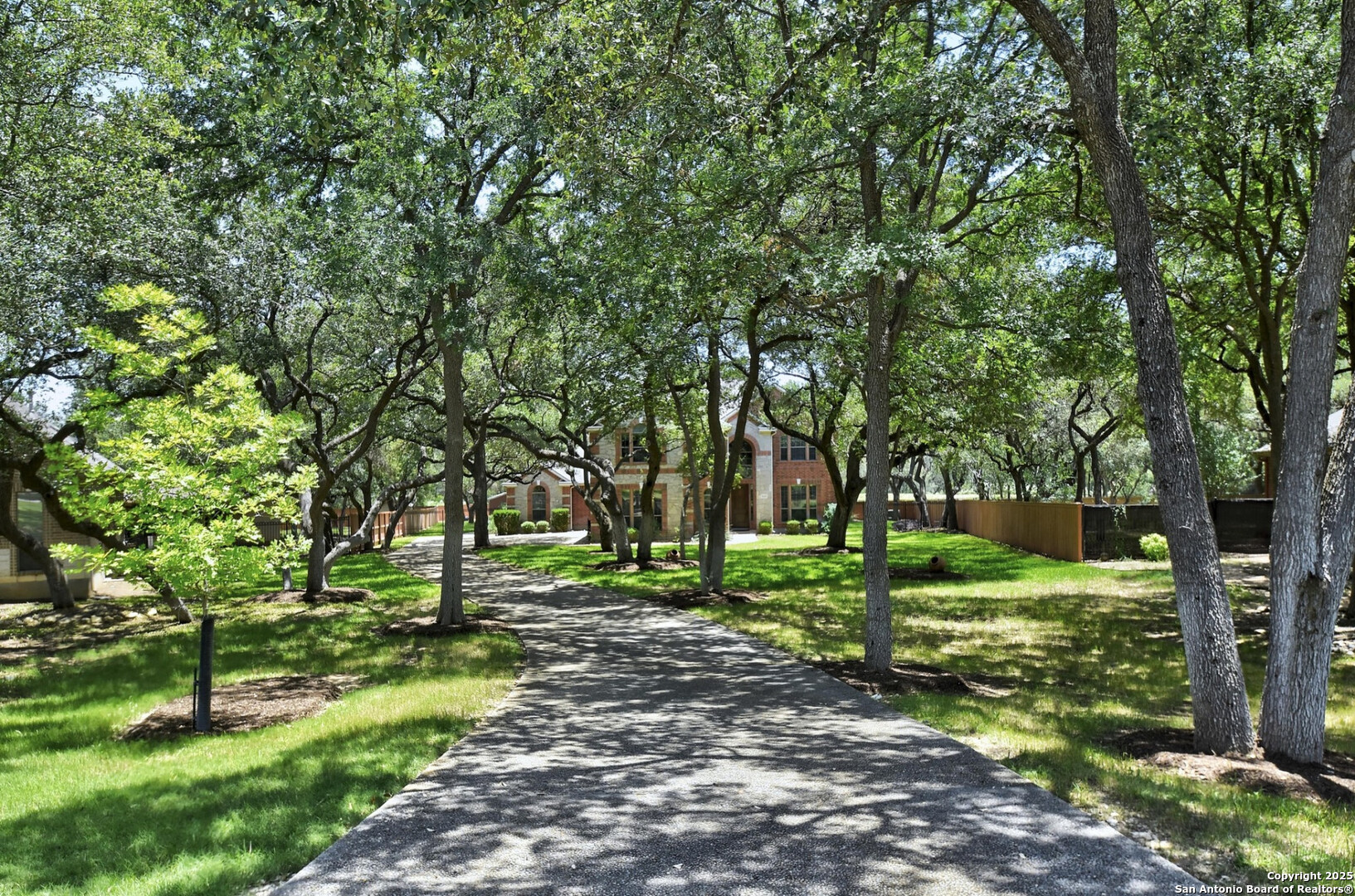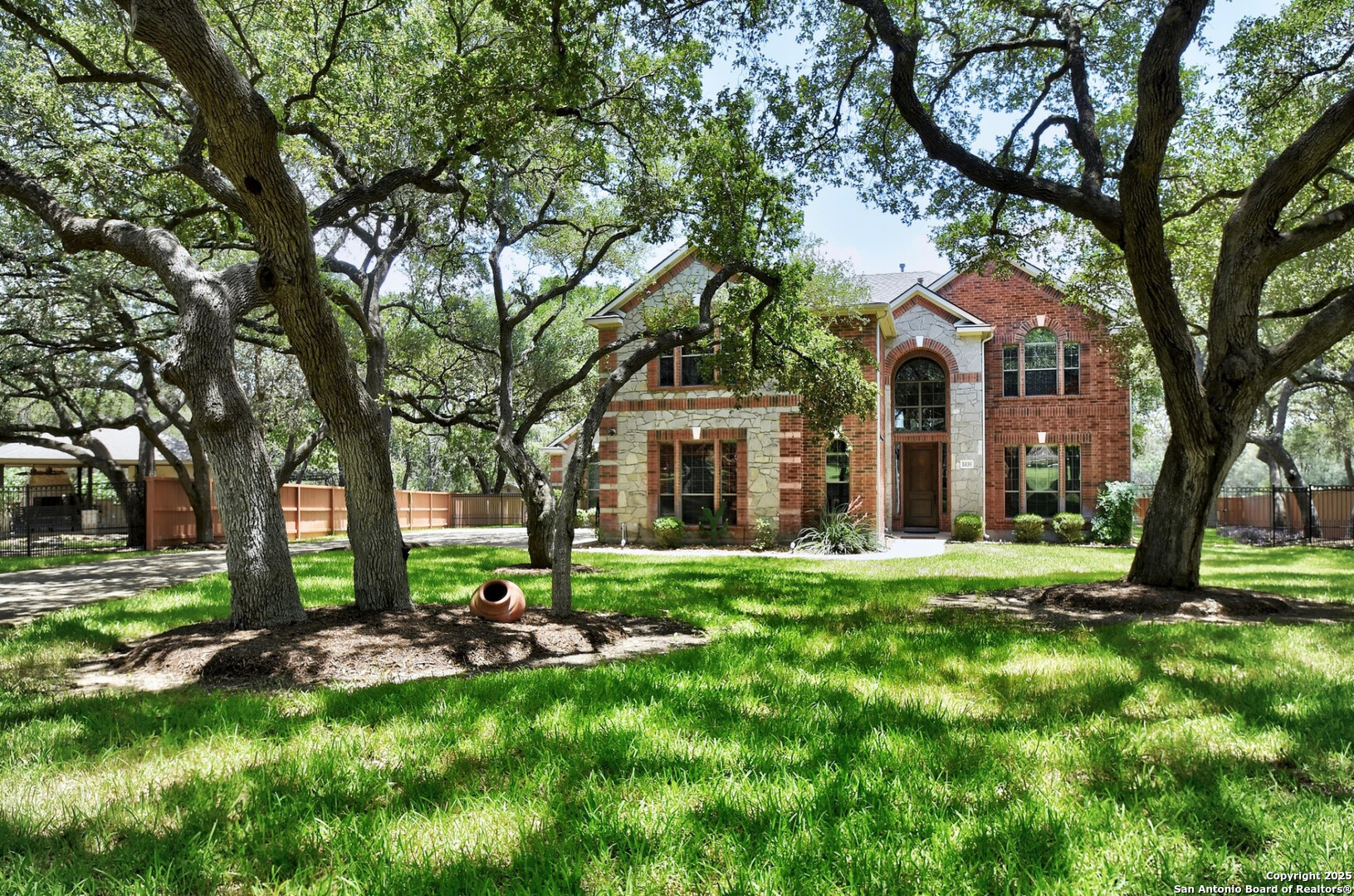 This home is an Executive Series Design with aspects that truly make it stand out. It has the Master Bedroom and all main living areas downstairs, while the upstairs provide bedrooms and entertainment areas for family and guests. It combines the convenience of a single-story home for the owners with the efficiency of a 2-story. This is a beautiful well-maintained brick and stone home nestled among mature oak trees in the Forest of Garden Ridge subdivision. It sits on a premium cul-de-sac lot. Its orientation is an ideal southeast exposure for gorgeous morning sun and cool afternoon shade. You'll really like how the backyard provides excellent privacy with a pleasant view of a 4-acre tree lined deer grazing meadow. Overall, the location provides a perfect balance of serene country living with easy access to city amenities. This home has had extensive updates in the past few years: new roof, A/C, water heaters, all kitchen appliances (including a 36" induction cooktop), 20,000W standby generator, and Caldera Seychelles Spa. Downstairs are the master bedroom suite, formal living and dining rooms, a butler's pantry, executive office, powder room, spacious kitchen, and family room with fireplace. Upstairs are 3 bedrooms, 2 baths, game room, and media room (all large). The game room with wet bar conveys an $8K Peter Vitale pool table, lighting, and bench. The back porch steps on to a large pavestone patio and an impressive pavilion shelter. The entire back yard is enclosed with a 6' cedar fence that includes a grand swing and slide playset, and a 12'X20' well-built shed and workshop with electricity. An added convenience in the backyard is a large 12' sliding fenced gate that leads out to a private access road.