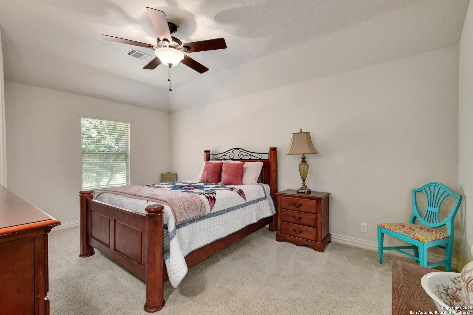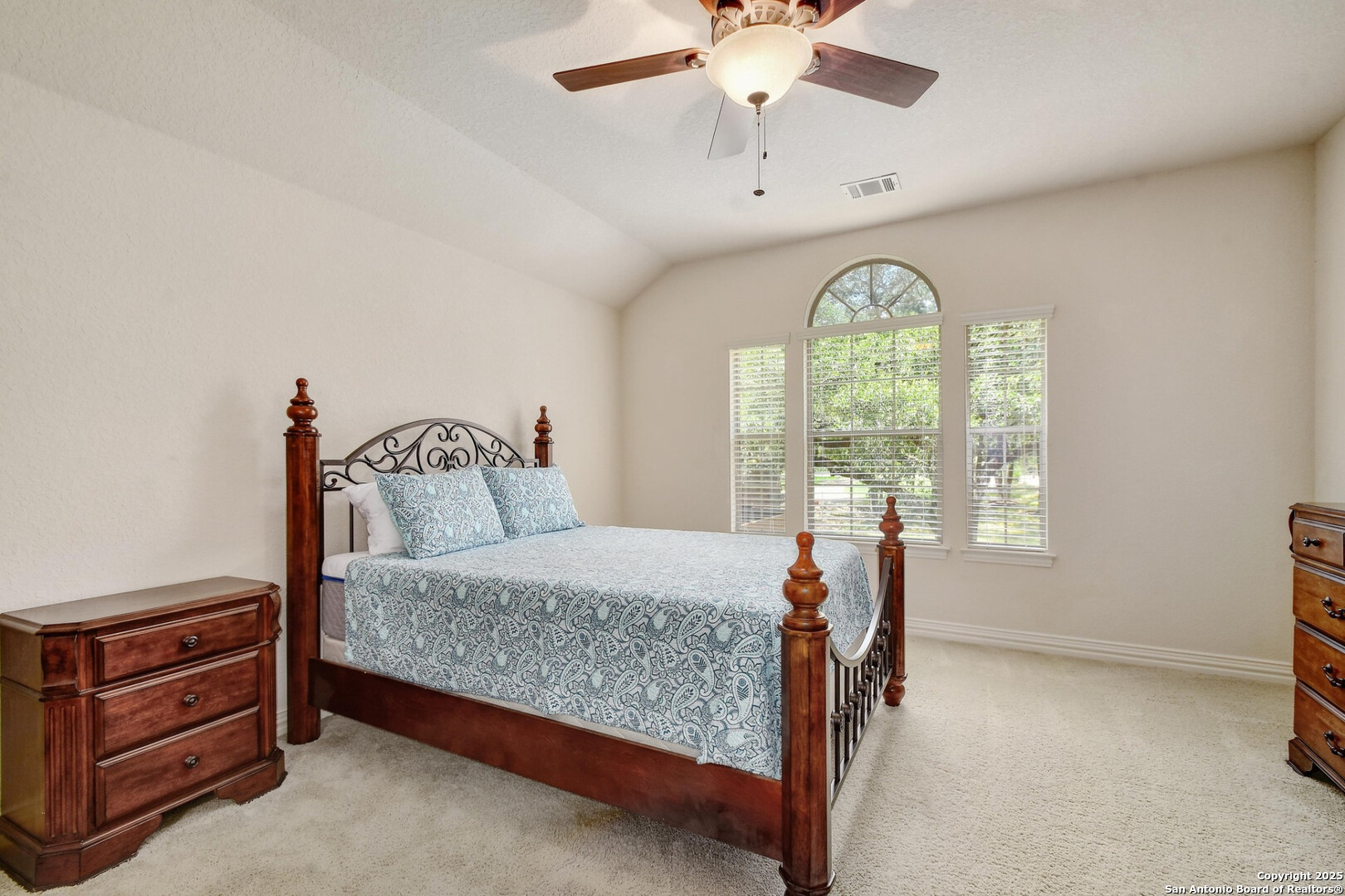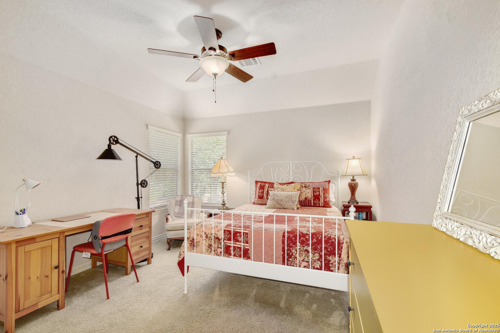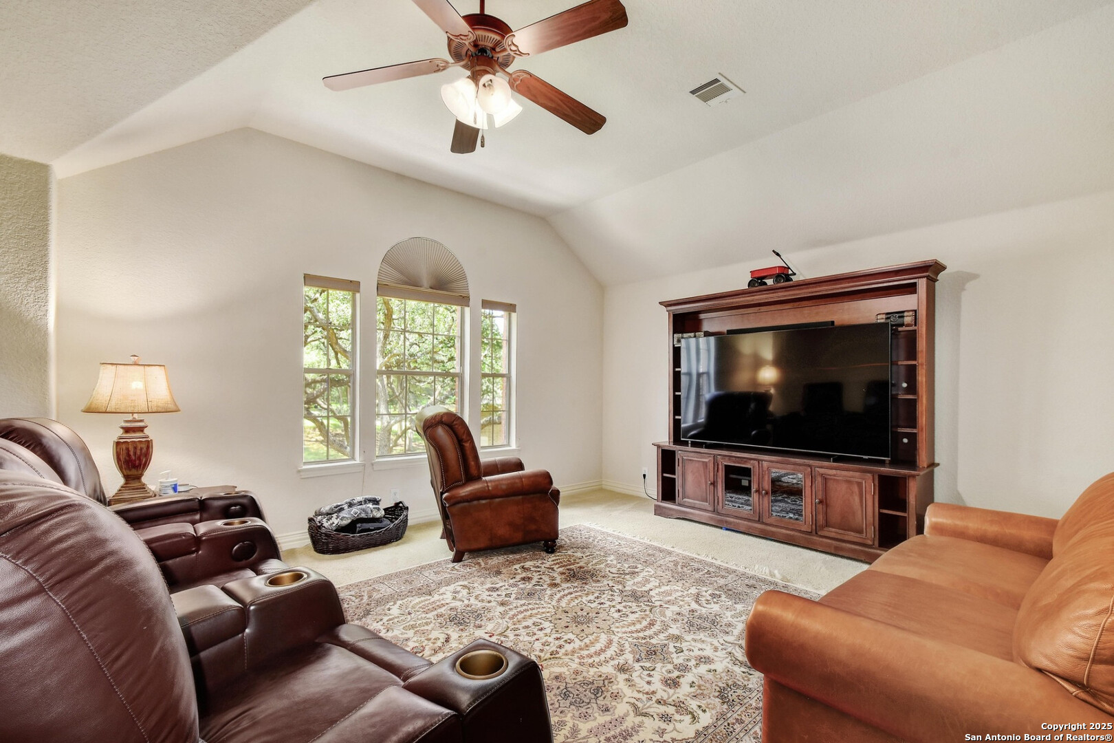 This home is an Executive Series Design with aspects that truly make it stand out. It has the Master Bedroom and all main living areas downstairs, while the upstairs provide bedrooms and entertainment areas for family and guests. It combines the convenience of a single-story home for the owners with the efficiency of a 2-story. This is a beautiful well-maintained brick and stone home nestled among mature oak trees in the Forest of Garden Ridge subdivision. It sits on a premium cul-de-sac lot. Its orientation is an ideal southeast exposure for gorgeous morning sun and cool afternoon shade. You'll really like how the backyard provides excellent privacy with a pleasant view of a 4-acre tree lined deer grazing meadow. Overall, the location provides a perfect balance of serene country living with easy access to city amenities. This home has had extensive updates in the past few years: new roof, A/C, water heaters, all kitchen appliances (including a 36" induction cooktop), 20,000W standby generator, and Caldera Seychelles Spa. Downstairs are the master bedroom suite, formal living and dining rooms, a butler's pantry, executive office, powder room, spacious kitchen, and family room with fireplace. Upstairs are 3 bedrooms, 2 baths, game room, and media room (all large). The game room with wet bar conveys an $8K Peter Vitale pool table, lighting, and bench. The back porch steps on to a large pavestone patio and an impressive pavilion shelter. The entire back yard is enclosed with a 6' cedar fence that includes a grand swing and slide playset, and a 12'X20' well-built shed and workshop with electricity. An added convenience in the backyard is a large 12' sliding fenced gate that leads out to a private access road.