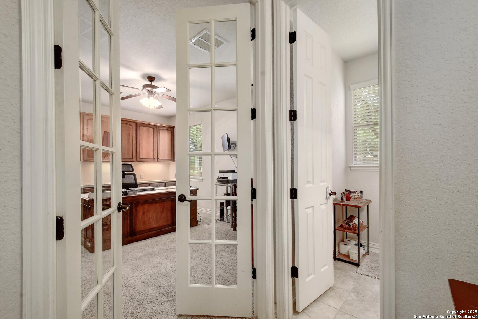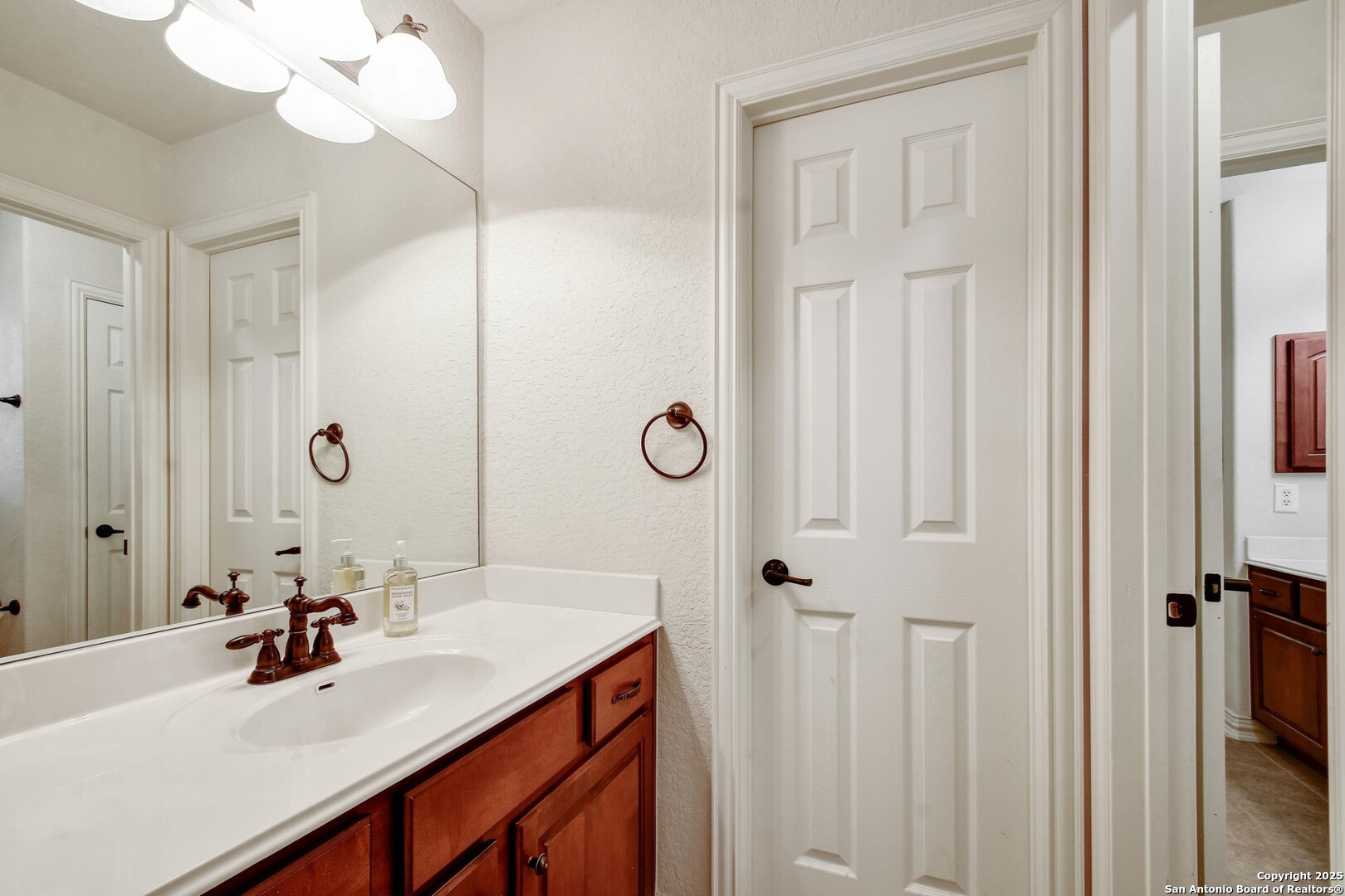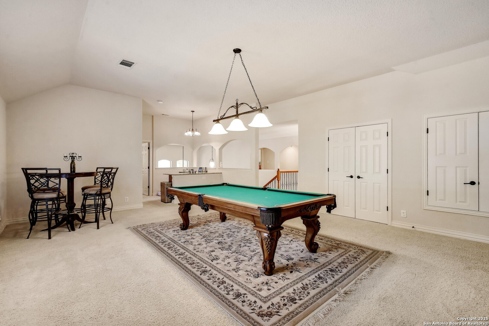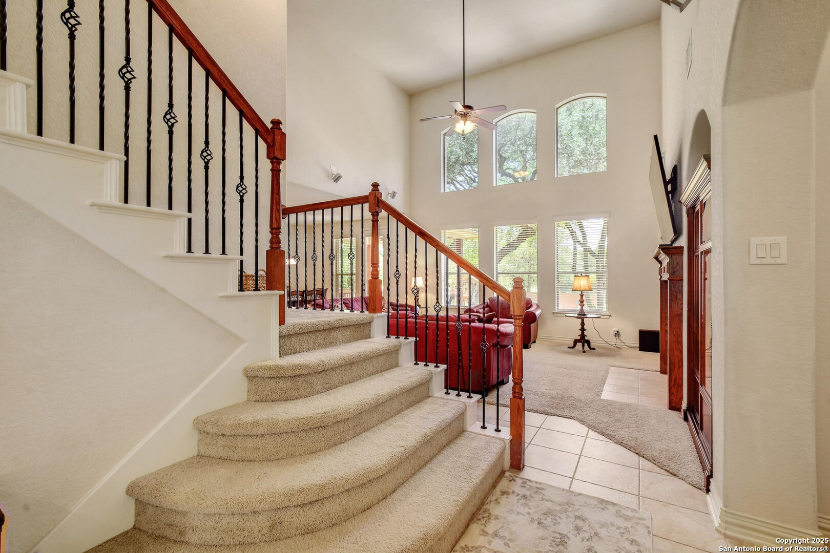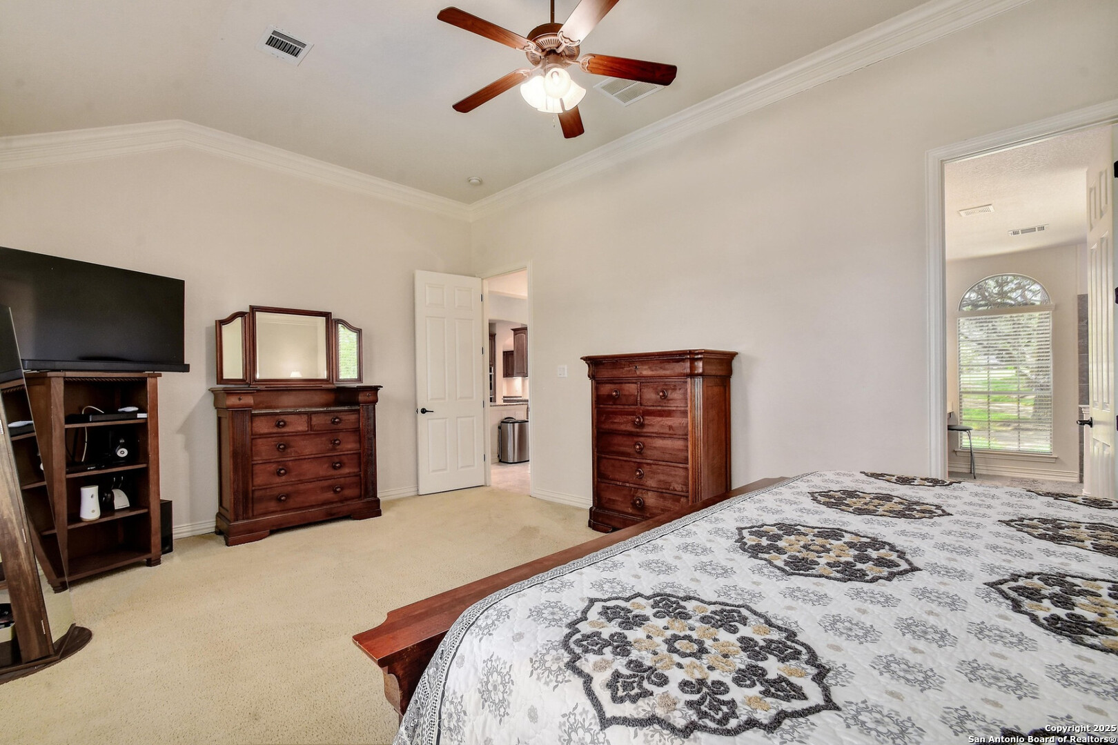 This home is an Executive Series Design with aspects that truly make it stand out. It has the Master Bedroom and all main living areas downstairs, while the upstairs provide bedrooms and entertainment areas for family and guests. It combines the convenience of a single-story home for the owners with the efficiency of a 2-story. This is a beautiful well-maintained brick and stone home nestled among mature oak trees in the Forest of Garden Ridge subdivision. It sits on a premium cul-de-sac lot. Its orientation is an ideal southeast exposure for gorgeous morning sun and cool afternoon shade. You'll really like how the backyard provides excellent privacy with a pleasant view of a 4-acre tree lined deer grazing meadow. Overall, the location provides a perfect balance of serene country living with easy access to city amenities. This home has had extensive updates in the past few years: new roof, A/C, water heaters, all kitchen appliances (including a 36" induction cooktop), 20,000W standby generator, and Caldera Seychelles Spa. Downstairs are the master bedroom suite, formal living and dining rooms, a butler's pantry, executive office, powder room, spacious kitchen, and family room with fireplace. Upstairs are 3 bedrooms, 2 baths, game room, and media room (all large). The game room with wet bar conveys an $8K Peter Vitale pool table, lighting, and bench. The back porch steps on to a large pavestone patio and an impressive pavilion shelter. The entire back yard is enclosed with a 6' cedar fence that includes a grand swing and slide playset, and a 12'X20' well-built shed and workshop with electricity. An added convenience in the backyard is a large 12' sliding fenced gate that leads out to a private access road.