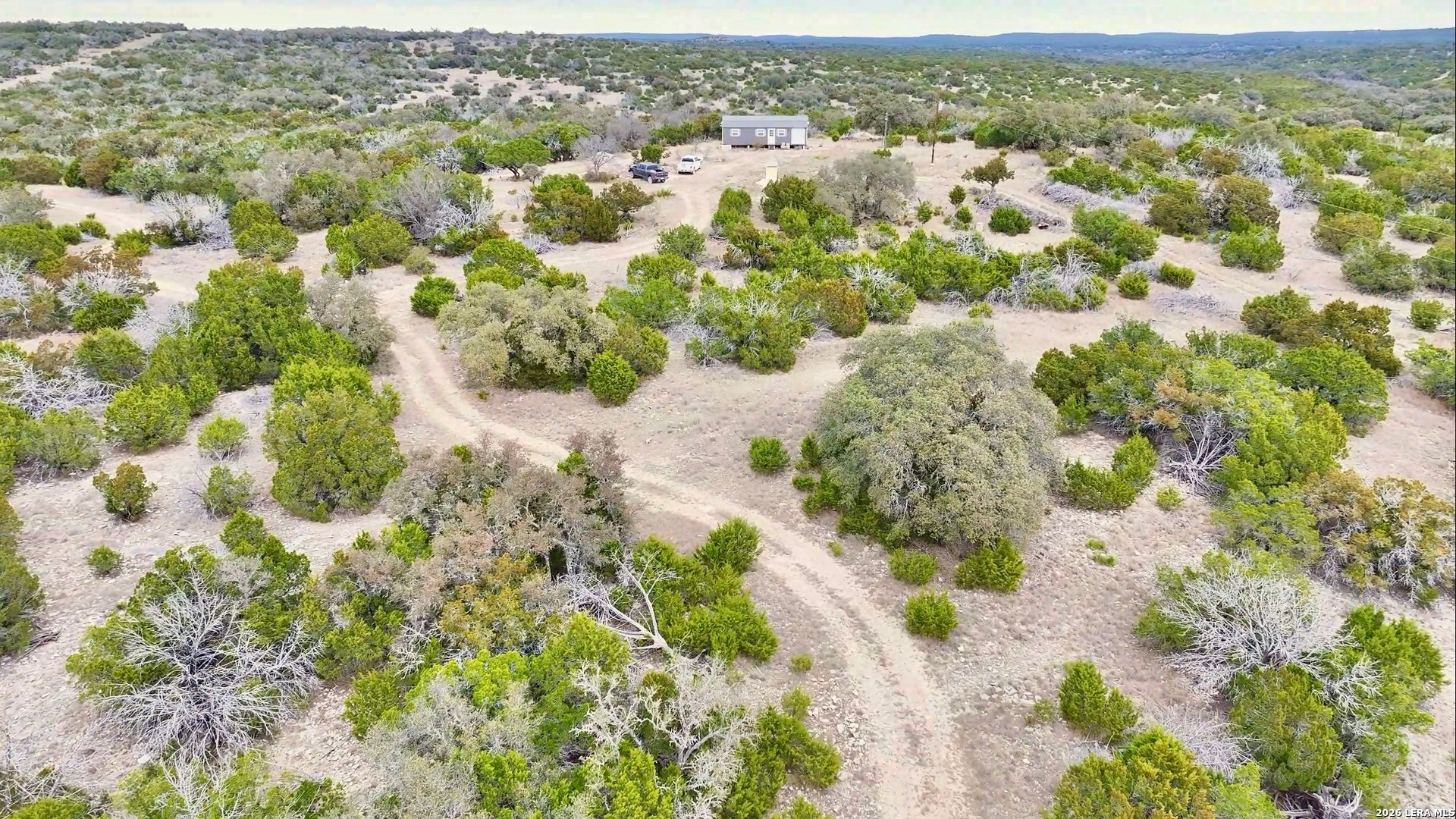 Welcome to Contrary Creek Ranches, a remarkable 98-acre Hill Country retreat offering long-distance views, diverse terrain, and a peaceful blend of privacy and accessibility. Rolling hills give way to open meadows, framed by mature live oaks and cedar trees, creating a landscape that feels both expansive and inviting. At the heart of the property sits a charming one-bedroom tiny home with two lofts, thoughtfully designed to maximize comfort and function. The home features a classy rustic bathroom with a glass shower, adding a touch of modern elegance to the natural setting. With water, septic, and electricity already in place, this property is truly ready to enjoy from day one - whether as a weekend escape, hunting retreat, or future homesite. Outdoor enthusiasts will appreciate the property's set up making it ideal for recreational use and wildlife enjoyment. Owners also enjoy access to a nearby community area featuring a fishing pond and covered picnic tables, perfect for relaxing, entertaining, and spending time outdoors with family and friends. One boundary of the property fronts a private, caliche access road, providing excellent year-round access while still maintaining the privacy and serenity of large acreage ownership. The sweeping views, gently rolling terrain, and abundant natural beauty make this an exceptional opportunity for anyone seeking space, freedom, and authentic Texas living. Whether you're watching sunsets stretch across the hills, enjoying quiet mornings beneath the oaks, or gathering after a day outdoors, Contrary Creek Ranches offers a lifestyle rooted in nature, peace, and possibility.