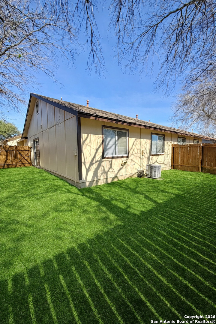 Beautifully Renovated Duplex in NW San Antonio! This 2 bed/2 bath home features a cozy living area with soaring ceilings that open to a spacious kitchen and breakfast nook. Enjoy the convenience of one-car parking, private yard space, and modern updates throughout. Ideally located near Lackland AFB, Six Flags, SeaWorld, top-rated schools, shopping, dining, and easy access to Loop 410 and Hwy 90.
