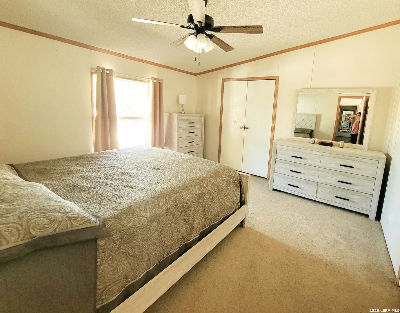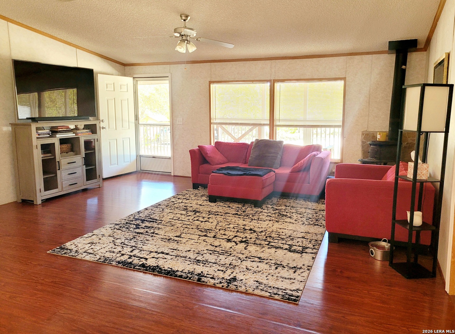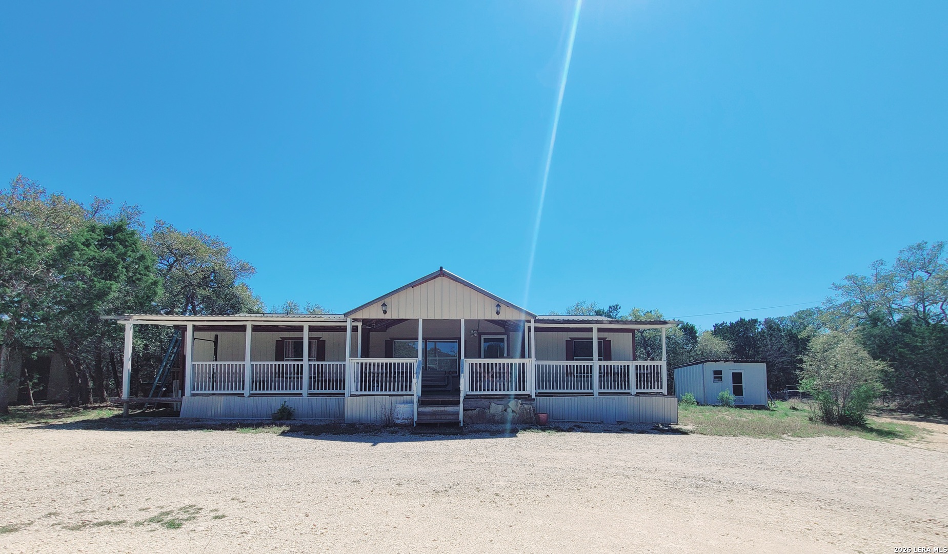 Discover the perfect blend of privacy, space, and opportunity with this beautiful 5-acre rural property featuring a well-maintained 2006 Palm Harbor manufactured home offering approximately 1,600 square feet of comfortable living space. This spacious home includes 4 bedrooms, 2 full bathrooms, and a dedicated office area - ideal for working from home, homeschooling, or creating your own hobby space. High speed fiber internet from BEC makes working from home, school, and gaming ultra fast! The home's open layout provides functional living with wood-burning stove and room for everyone. Step outside and take in the peaceful surroundings from the full-length covered front porch, perfect for enjoying morning coffee while watching the sunrise over the rolling hills. A secondary side porch with exterior access adds convenience and flexibility for guests or everyday living. Located in a gated community with Medina Lake access (lake currently dry due to minimal rainfall) Low HOA fees, Attractive 1.375% tax rate! Incredible potential to enhance views with a second-story addition (on the existing home or a future structure), capturing approximately 30 feet of elevation and even more breathtaking Hill Country scenery. Improvements include a water well, septic system, and a water softener installed approximately three years ago. Outdoor features include a 30' x 50' concrete basketball court with an adjustable goal. An automatic shooting machine is negotiable. Additional exterior features include a chicken coop, three storage sheds, and raised garden beds. With ample space for additional improvements, a workshop, barn, or future build, this property offers flexibility for your vision. Whether you're looking for peaceful country living, room to expand, or long-term investment potential, this is an opportunity you don't want to miss.
