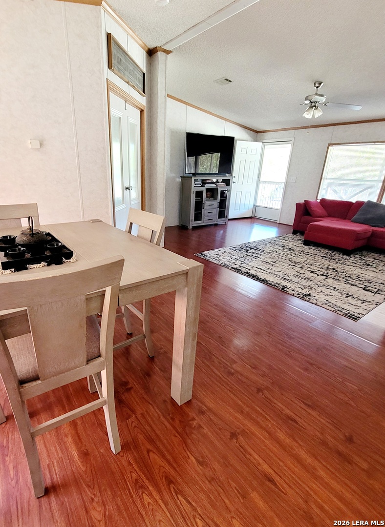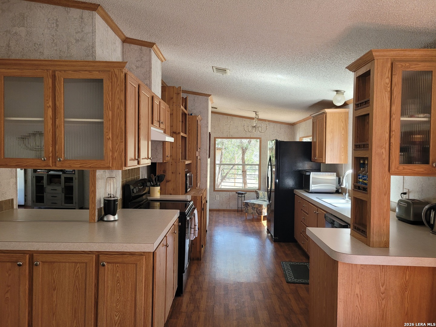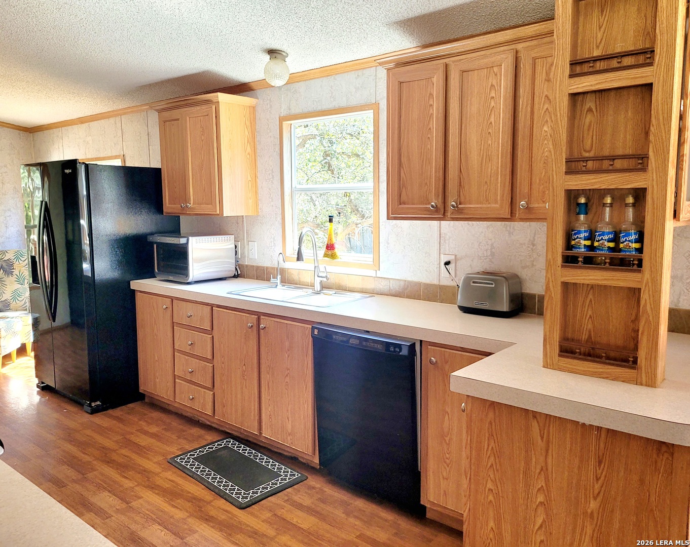 Discover the perfect blend of privacy, space, and opportunity with this beautiful 5-acre rural property featuring a well-maintained 2006 Palm Harbor manufactured home offering approximately 1,600 square feet of comfortable living space. This spacious home includes 4 bedrooms, 2 full bathrooms, and a dedicated office area - ideal for working from home, homeschooling, or creating your own hobby space. High speed fiber internet from BEC makes working from home, school, and gaming ultra fast! The home's open layout provides functional living with wood-burning stove and room for everyone. Step outside and take in the peaceful surroundings from the full-length covered front porch, perfect for enjoying morning coffee while watching the sunrise over the rolling hills. A secondary side porch with exterior access adds convenience and flexibility for guests or everyday living. Located in a gated community with Medina Lake access (lake currently dry due to minimal rainfall) Low HOA fees, Attractive 1.375% tax rate! Incredible potential to enhance views with a second-story addition (on the existing home or a future structure), capturing approximately 30 feet of elevation and even more breathtaking Hill Country scenery. Improvements include a water well, septic system, and a water softener installed approximately three years ago. Outdoor features include a 30' x 50' concrete basketball court with an adjustable goal. An automatic shooting machine is negotiable. Additional exterior features include a chicken coop, three storage sheds, and raised garden beds. With ample space for additional improvements, a workshop, barn, or future build, this property offers flexibility for your vision. Whether you're looking for peaceful country living, room to expand, or long-term investment potential, this is an opportunity you don't want to miss.