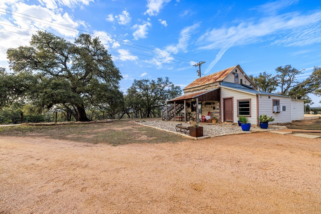 Discover your dream escape on this 21-acre property in Fredericksburg, TX, where natural beauty meets modern comfort. Enjoy stunning sunset views over rolling hills and a tranquil creek, with wildlife just steps away and majestic oak trees gracing the landscape. Historical charm abounds with a well-maintained 1-bedroom, 1-bathroom cabin from the late 1800s, complete with an updated bathroom. Bonus room accessed via outdoor stairs. Additional features include a pre-1930 windmill, spacious shops with lean-tos for projects and storage, and enhanced infrastructure like a robust pipe fence, working cattle pens, and new fences for livestock. Recent upgrades include a new well pump and pump house, a remodeled bathroom, crushed granite pathways, and an electric gate with a wireless sensor for security and ease. A detached guest room offers extra space for guests or creativity, while fertilized fields await your agricultural dreams. Embrace the extraordinary fusion of history, nature, and modern amenities in the heart of Texas Hill Country. This rare opportunity combines the best of both worlds—contact us today to explore your future haven.