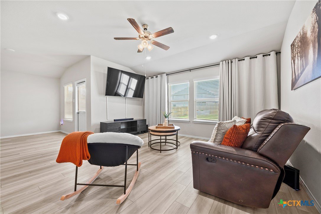 8903 Cantera Rdg Rd, the sought after Texas Cali floor plan in the Terrace at Lake Pointe community in Temple, zoned for top-rated Belton ISD. Move-in Ready, all appliances included! Ideally located near everyday conveniences and fun: Temple Mall, Dead Fish Grill, Spare Time Fun Center, and Baylor Scott and White Hospital, 30 minute commute to Fort Hood. Smart-home features: Qolsys panel controlling lights, thermostat, and locks via app or voice. A spacious primary with dual vanities, walk-in shower, and a massive walk-in closet.The oversized backyard, complete with planters and a covered patio, offers an ideal space for gatherings, pets, or gardening. Come tour this spacious, modern, open-concept layout today.