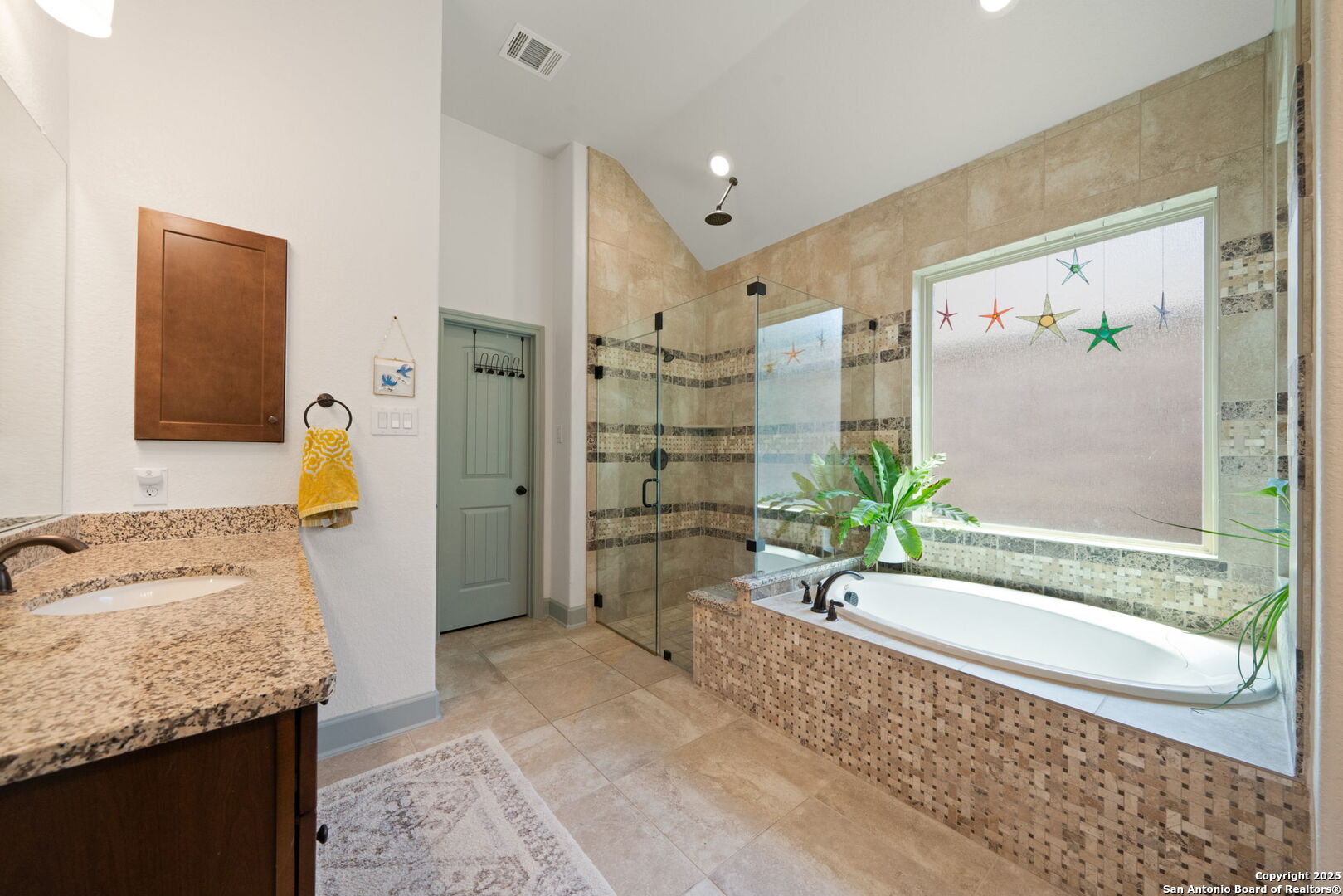 OPEN HOUSE - 12-3PM SATURDAY & SUNDAY - JUNE 21-22 ! Welcome to this stunning two-story home nestled in the highly sought-after gated community of Front Gate at Fair Oaks Ranch in Boerne. Situated on a spacious .35-acre lot, this home features both the primary and a secondary bedroom with en-suite bathroom conveniently located on the main level. Enjoy the added convenience of a laundry room accessible directly through the primary closet. This thoughtfully designed floor plan includes a large kitchen perfect for entertaining, an oversized island, abundance of cabinet storage, a walk-in pantry, built-in command center and opens to a spacious dining room perfect for gatherings. A dedicated office offers the ideal space for working from home or quiet study. Upstairs, you'll find two additional bedrooms, a full bathroom, and a generously sized game room. The backyard is a true highlight, featuring mature trees and plenty of space for outdoor living, play, or future customization-don't miss the opportunity to make this beauty your own!