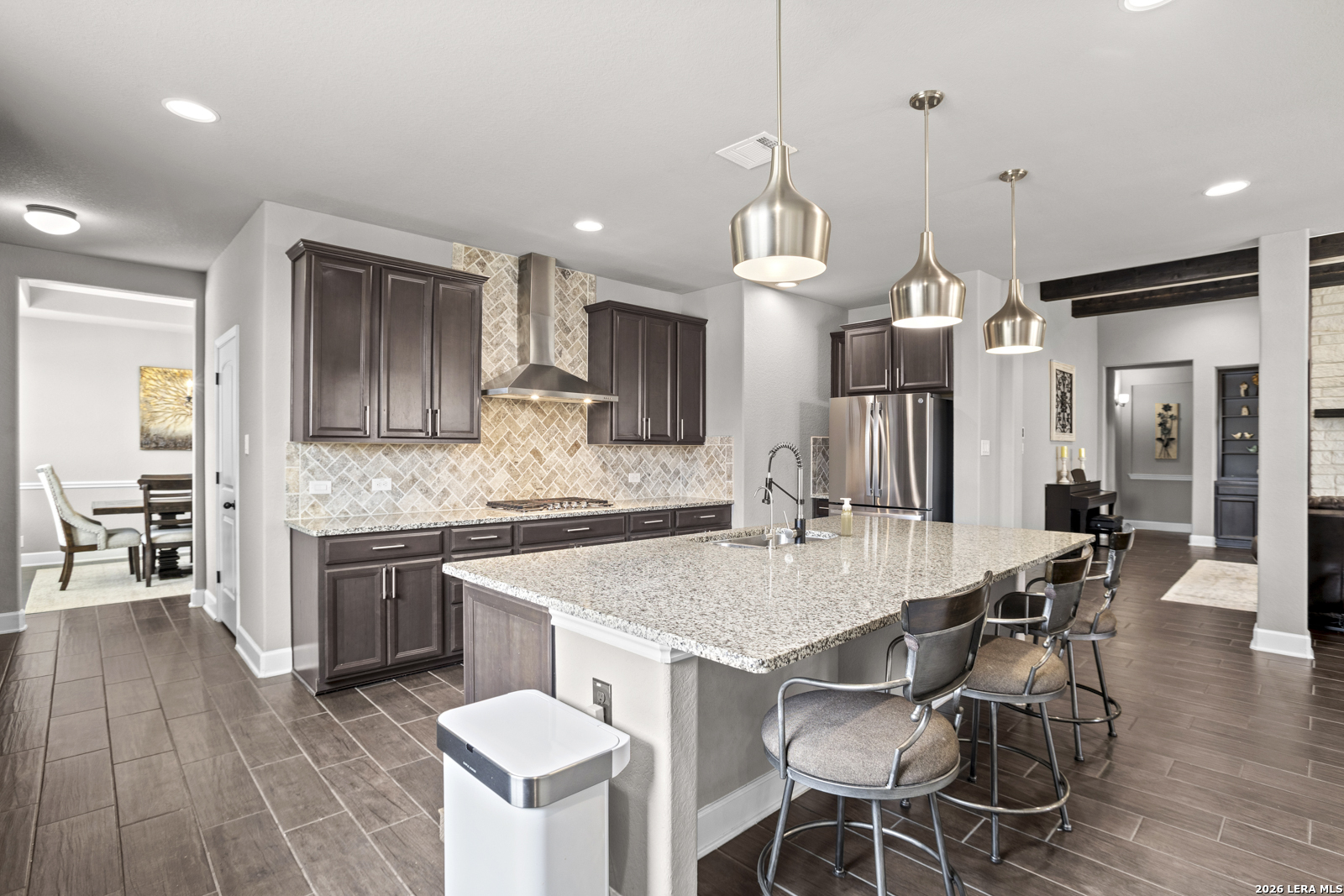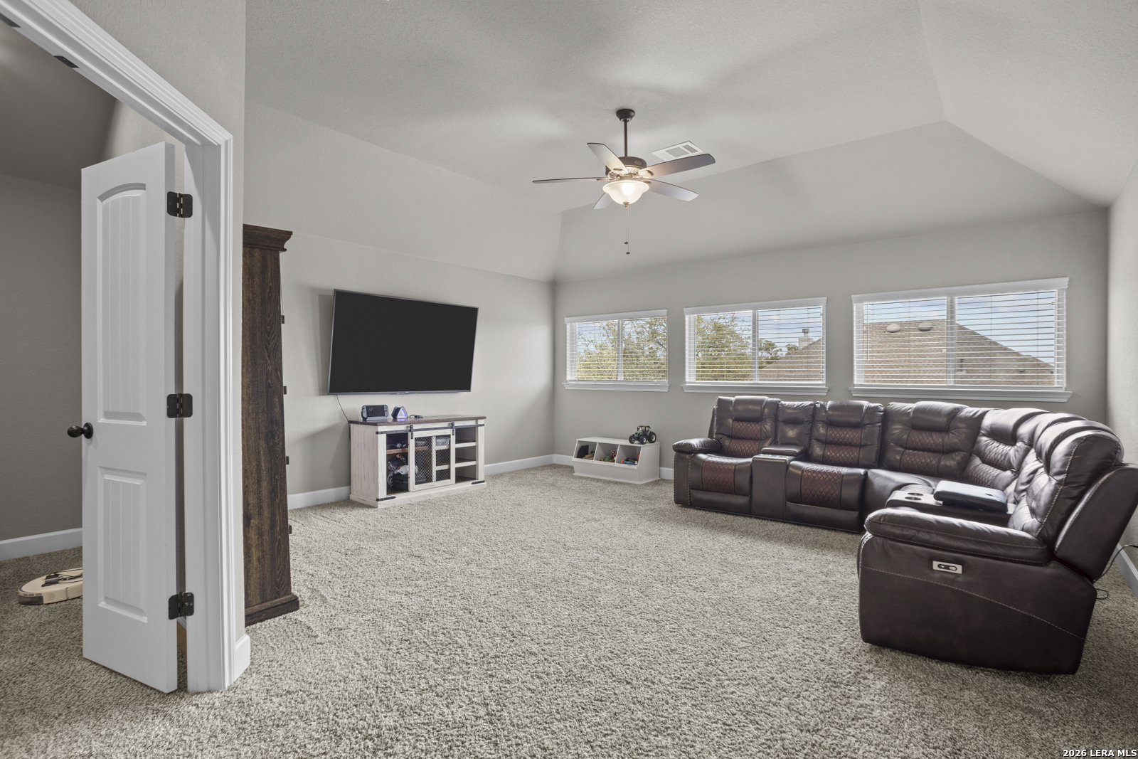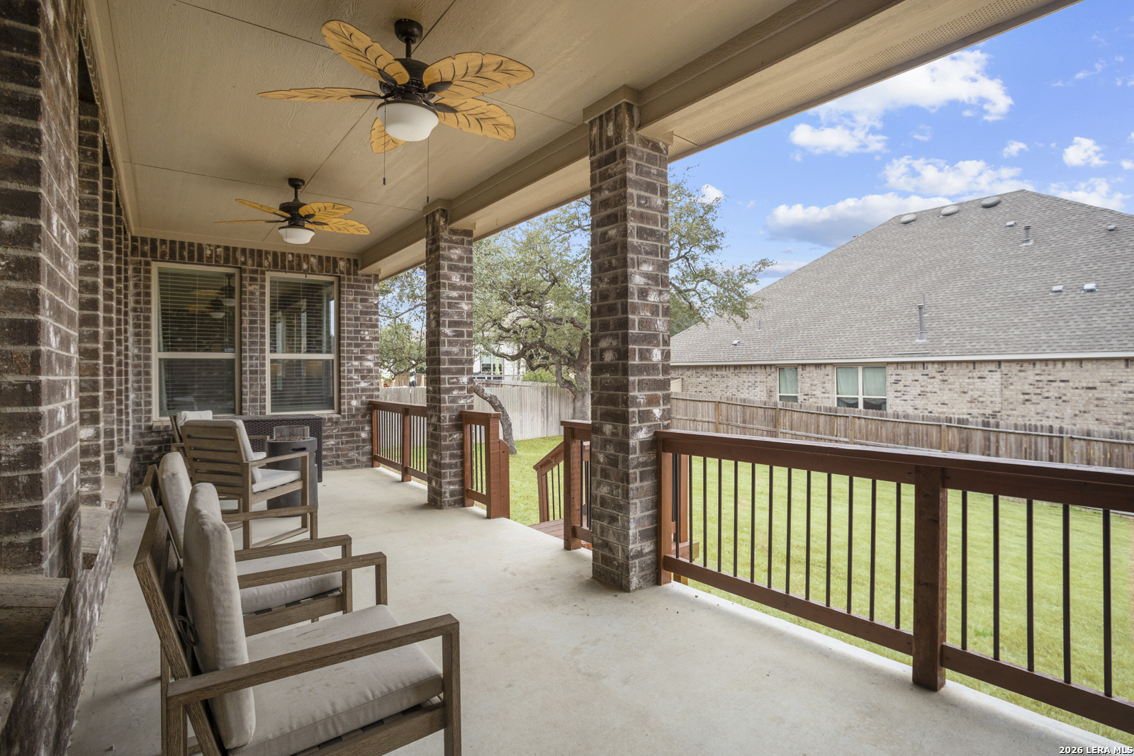 Welcome to 8905 Shady Pond in the sought-after community of Fair Oaks Ranch, where elegance meets everyday comfort. This stunning 4-bedroom, 3.5-bath home with a 3-car garage offers the space, style, and functionality today's buyers crave. Step inside to find a formal dining room perfect for hosting gatherings and an open-concept living area anchored by a beautiful fireplace and striking ceiling beams. Natural light pours in, creating a warm, inviting atmosphere throughout. The island kitchen is a true centerpiece, featuring gas cooking, stainless steel appliances, abundant cabinet space, and a spacious layout ideal for entertaining or casual family meals. Retreat to the oversized primary suite, complete with a luxurious ensuite bath offering a large walk-in shower, soaking tub, double vanity, and an expansive walk-in closet. A dedicated office with ample natural light provides the perfect work-from-home setup, while the upstairs loft offers flexible space for a game room, media area, or second living space. Out back, enjoy an extended covered patio overlooking a generously sized backyard-ideal for relaxing evenings or weekend barbecues. The home also features an electric vehicle charger in the garage, is pre-wired for a second EV charger, and includes a water softener, offering added convenience for today's lifestyle. Refined finishes, thoughtful design, and room to grow, this home truly has it all.