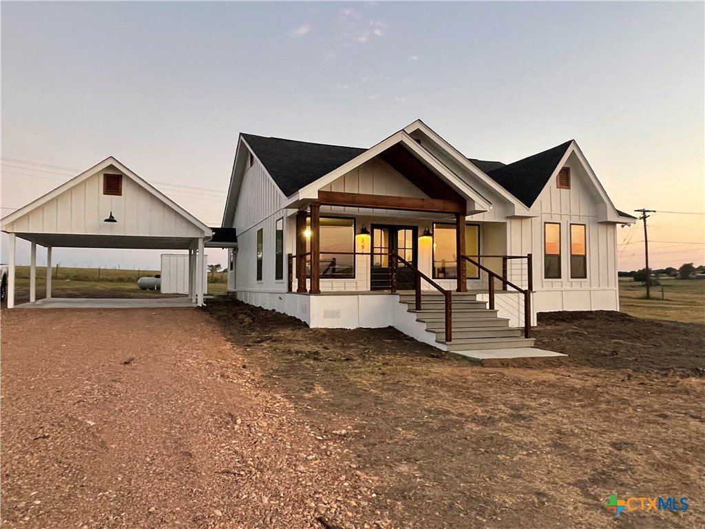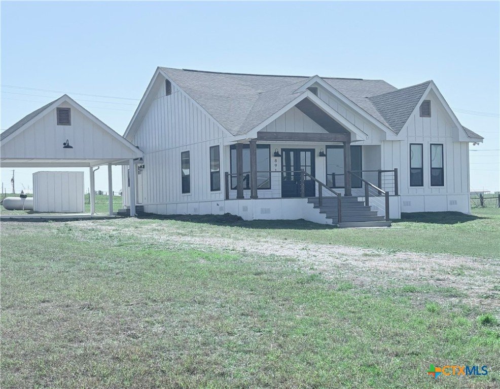 Modern Rustic Elegance in Shiner, TX. Experience the perfect blend of modern sophistication and rustic charm in this stunning 3 bedroom, 2 bathroom home on 1 acre, just minutes from downtown Shiner. Built in 2023, this 1,760 sq. ft. retreat features an inviting open concept design, highlighted by double French doors, a spacious 4 seater island, and a beautiful open porch. The luxurious master suite boasts a spa like bath with a soaking tub, a walk-in closet with custom built ins and marble style ceramic tile flooring. Thoughtfully designed for both comfort and style, this home also includes a carport and breathtaking country views, all while being just three minutes from shopping, dining, and the renowned Shiner Brewery. Discover the charm of modern rustic living. Schedule your private tour today! 891 County Road 301, Shiner, TX 77984