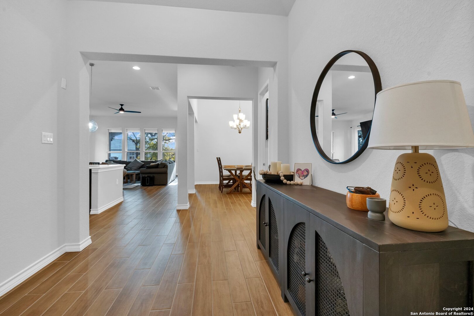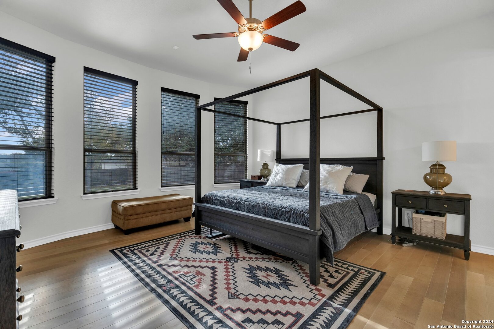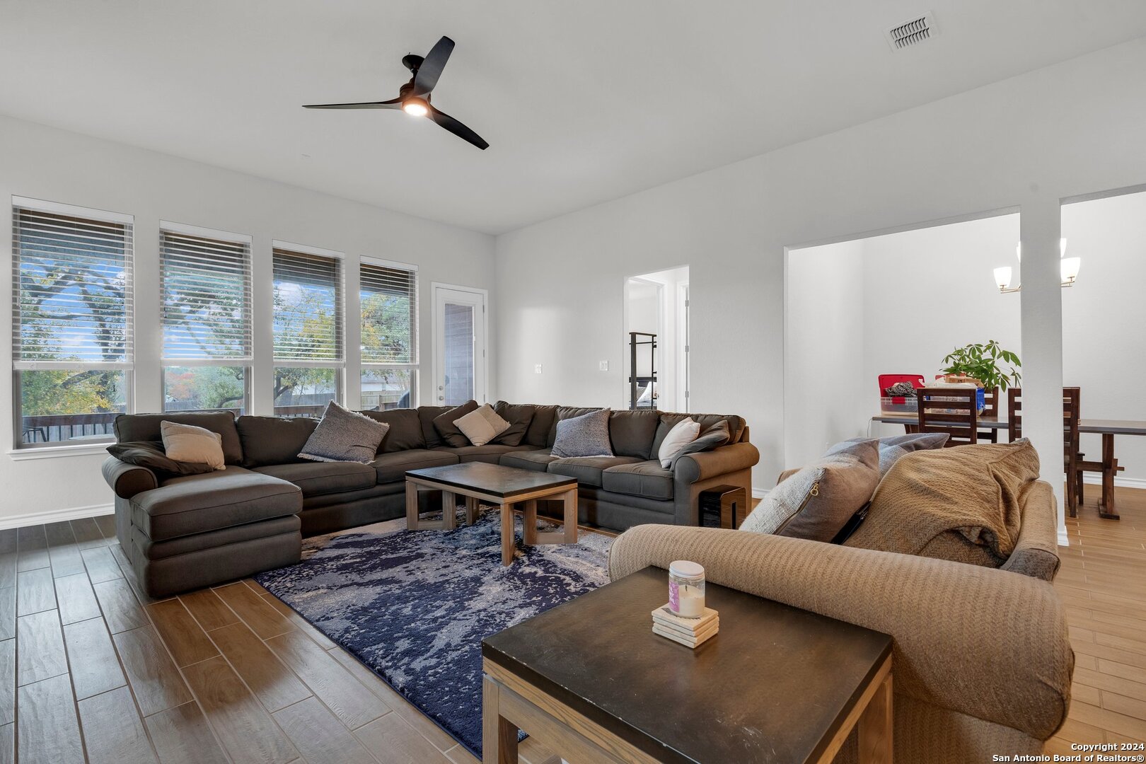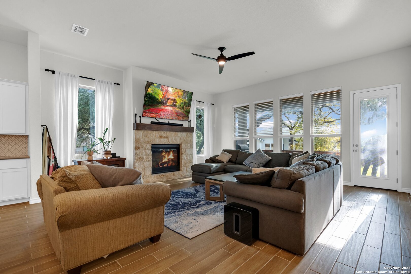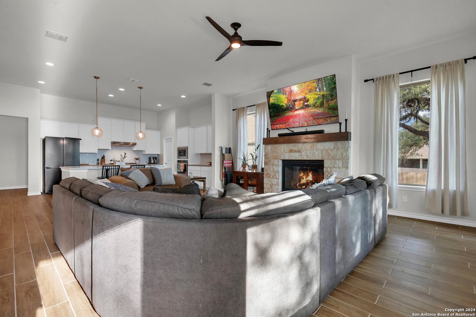 Experience Luxury Hill Country Living! Located in the prestigious Elkhorn Ridge community of Fair Oaks Ranch and Boerne, Texas, this beautiful residence, built by Monticello Homes, offers an exquisite blend of elegance and comfort. Step inside this 3 bedroom, 2.5 bath, 2351 sqft home sitting on a large .35 acre lot in a cul-de-sac. As you walk inside, be greeted by high ceilings and an open floor plan that seamlessly connects the living spaces. The heart of the home is the stunning living area, featuring a magnificent stone fireplace that adds warmth and character. The gourmet kitchen is a chef's delight, boasting granite countertops with a large island, stainless steel appliances, and plenty of counter space and cabinetry for all your culinary needs. The primary bedroom is a private retreat featuring bay windows. Enjoy the luxurious bathroom and large walk-in closet. A dedicated study offers the perfect space for a home office, library, or 4th bedroom. Outside, the covered patio, with tongue & groove ceiling, is ideal for entertaining or simply enjoying the serene surroundings. The expansive yard, adorned with mature trees, provides a peaceful oasis for relaxation and outdoor activities. The home also features a long driveway and a 2.5-car garage. Elkhorn Ridge is a community known for its upscale living and convenient location. Easily drive your golf cart to the Fair Oaks Ranch Golf & Country Club. HEB and the new Lemon Creek development are within 1.5 miles. Enjoy easy access to nearby attractions and parks with trails for jogging and biking, shopping, and dining options in both Fair Oaks Ranch, Boerne, and San Antonio. This home was built with plenty of upgrades, don't miss the opportunity to make this your forever home!