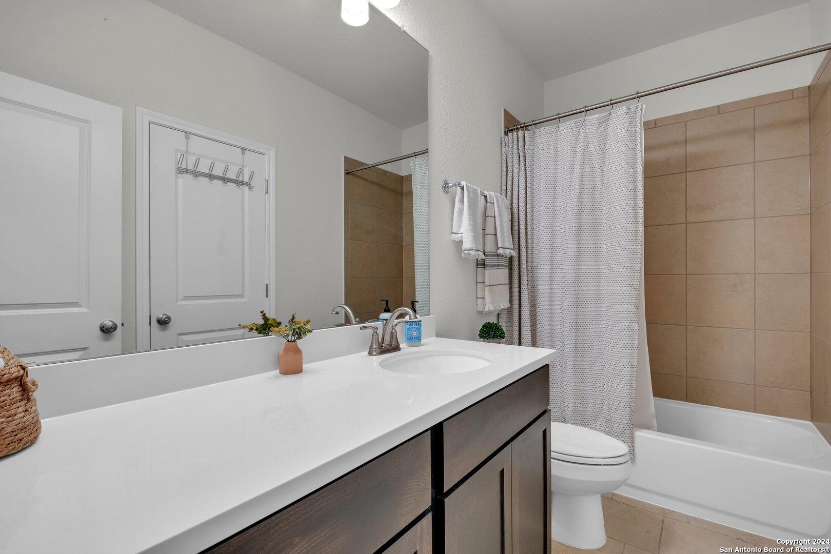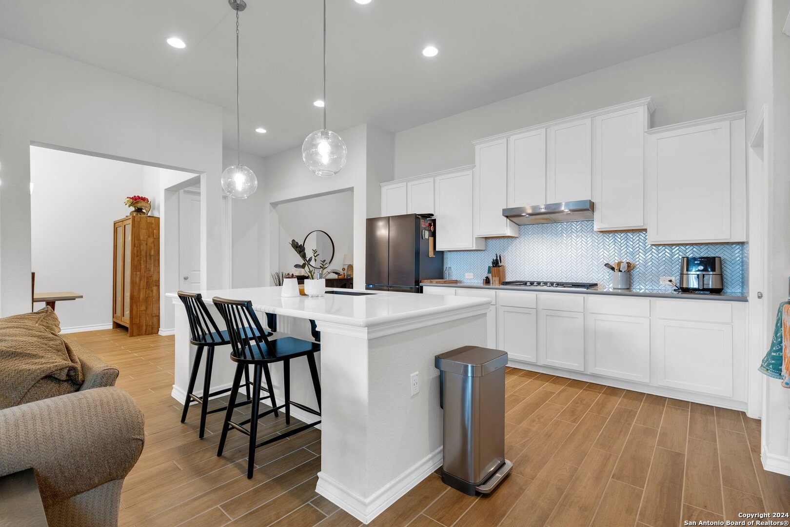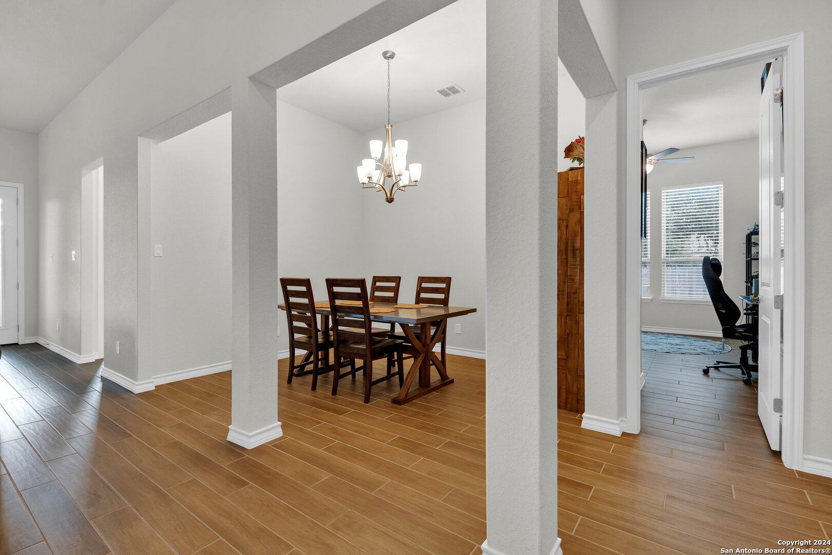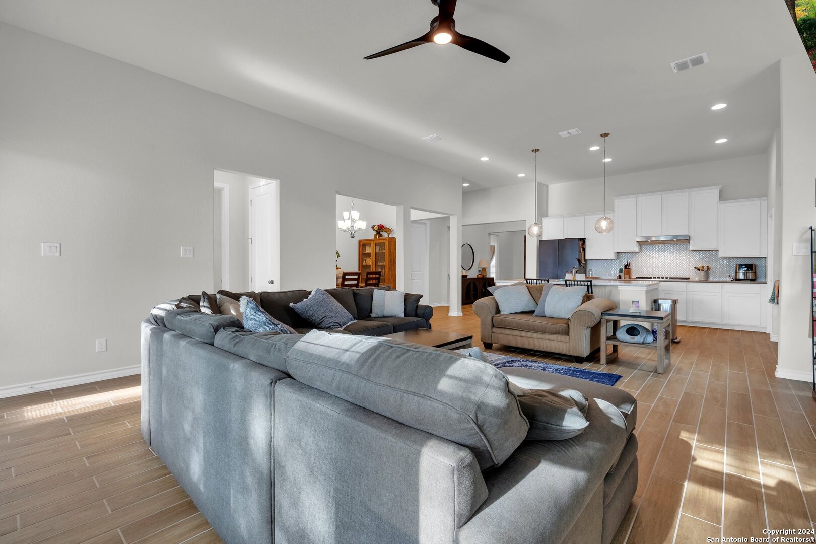 Experience Luxury Hill Country Living! Located in the prestigious Elkhorn Ridge community of Fair Oaks Ranch and Boerne, Texas, this beautiful residence, built by Monticello Homes, offers an exquisite blend of elegance and comfort. Step inside this 3 bedroom, 2.5 bath, 2351 sqft home sitting on a large .35 acre lot in a cul-de-sac. As you walk inside, be greeted by high ceilings and an open floor plan that seamlessly connects the living spaces. The heart of the home is the stunning living area, featuring a magnificent stone fireplace that adds warmth and character. The gourmet kitchen is a chef's delight, boasting granite countertops with a large island, stainless steel appliances, and plenty of counter space and cabinetry for all your culinary needs. The primary bedroom is a private retreat featuring bay windows. Enjoy the luxurious bathroom and large walk-in closet. A dedicated study offers the perfect space for a home office, library, or 4th bedroom. Outside, the covered patio, with tongue & groove ceiling, is ideal for entertaining or simply enjoying the serene surroundings. The expansive yard, adorned with mature trees, provides a peaceful oasis for relaxation and outdoor activities. The home also features a long driveway and a 2.5-car garage. Elkhorn Ridge is a community known for its upscale living and convenient location. Easily drive your golf cart to the Fair Oaks Ranch Golf & Country Club. HEB and the new Lemon Creek development are within 1.5 miles. Enjoy easy access to nearby attractions and parks with trails for jogging and biking, shopping, and dining options in both Fair Oaks Ranch, Boerne, and San Antonio. This home was built with plenty of upgrades, don't miss the opportunity to make this your forever home!