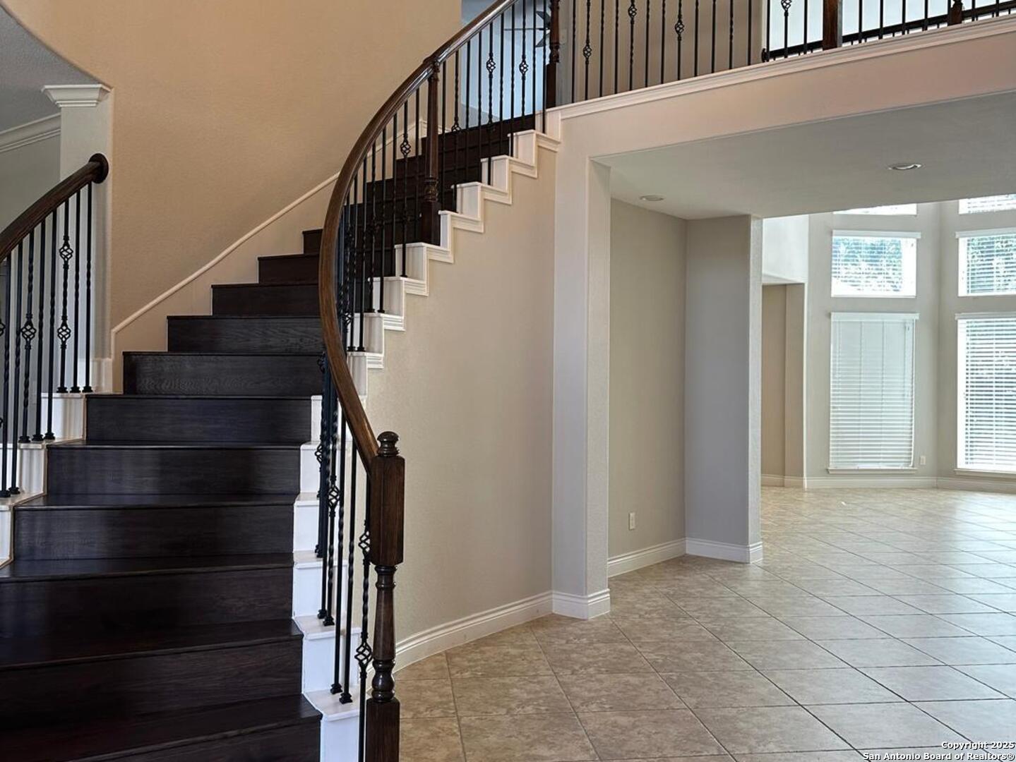 Welcome to this stunning, well maintained 5 bedrooms, 4.5 bath home with a 3-car garage tandem, perfectly situated on serene greenbelt lot with no neighbors on one side, and back for added privacy. Designed for comfort and entertaining, this home features an open layout, high cathedral ceilings, elegant finishes, abundant natural light. Master bedroom, and guess room downstairs, office designated space down, game room and 3 bedrooms upstairs, plus bonus room that can be second office, media room, craft room etc. Enjoy a peaceful and gated neighborhood with resort style swimming pools, gym, kids' playground, just minutes from La Cantera mall and the RIM. Close to shopping, restaurants, movie theater, golf course, and Top-rated schools. This home is the perfect blend of luxury and convenience, RARE TO FIND is going to sell fast!