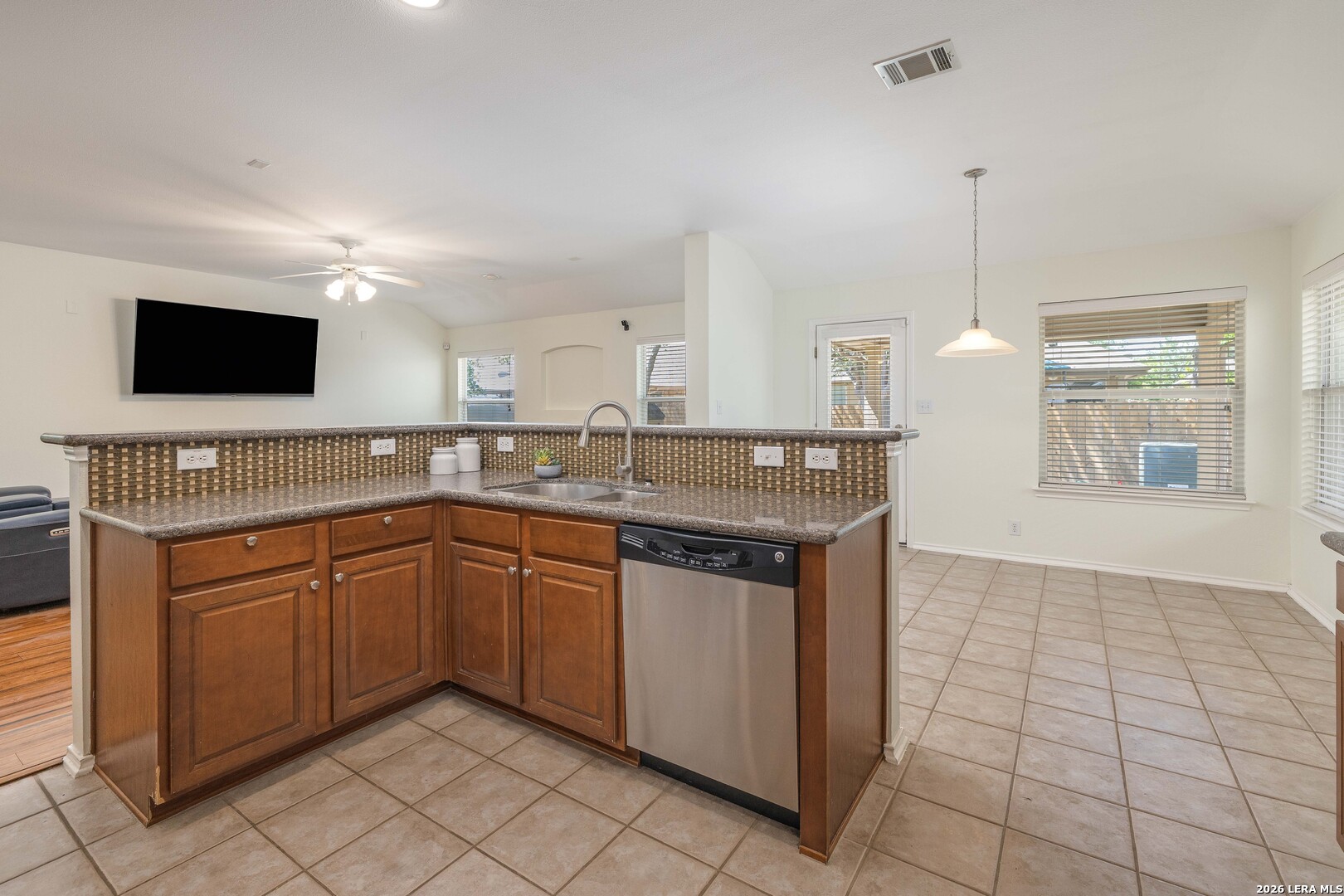 Located in the sought-after Miramar community of Converse, this move-in ready home offers four bedrooms, two bathrooms, and a layout designed for both comfort and functionality. With thoughtful updates throughout and a well-planned design that provides separation and flexibility, this home is ideal for a variety of lifestyles. The main living area is bright and inviting, centered around a cozy fireplace and connected seamlessly to the kitchen and breakfast area. The kitchen features granite countertops, ample cabinet space, and a pantry for added storage. Hard surface flooring runs throughout the main areas, while the bedrooms are finished with carpet for added comfort. A separate dining room provides a dedicated space for gatherings, and one of the secondary bedrooms with French doors offers the perfect option for a home office, study, or flex space. The primary suite is situated on its own private wing, offering added privacy. It includes a walk in closet and an ensuite bath with dual vanities and a shower and tub combination. Recent updates such as fresh interior paint, a newer HVAC system, and a roof that is approximately two years old add value and peace of mind. Enjoy outdoor living under the covered back patio, with a spacious backyard that provides plenty of room for relaxing, entertaining, or future customization. Conveniently located near San Antonio with easy access to major highways, shopping, dining, and just minutes from Randolph Air Force Base, this home offers both comfort and convenience in a growing area!