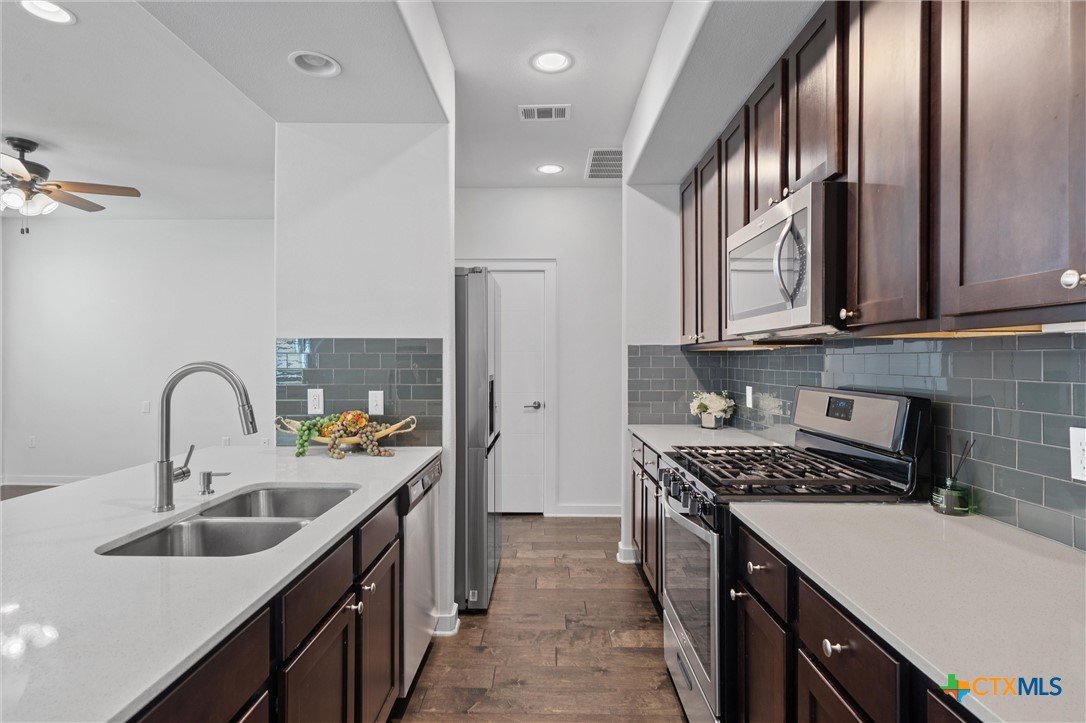 Discover your ideal sanctuary in this beautifully maintained 3-bedroom, 2.5-bathroom home, perfectly situated in a desirable neighborhood. Designed for easy living, this property is a lock-and-leave gem that offers both comfort and convenience. Step inside to discover an inviting, open floor plan featuring engineered wood flooring throughout the main living areas, which provides a modern touch and seamless flow. Say goodbye to carpet and enjoy the practicality of easy-to-clean surfaces, except the stylish bathrooms. The well-appointed kitchen seamlessly connects to the living and dining areas, making it perfect for entertaining family and friends. Enjoy the spacious bedrooms, which offer plenty of natural light and provide cozy retreats after a long day. Parking is a breeze with a generous 2-car garage, providing ample space for vehicles and additional storage. Location is key, and this home is nestled in a friendly community known for its access to parks and shopping, all within a short distance. Whether you're looking to downsize, seek a low-maintenance lifestyle, or find a move-in-ready home, this property checks all the boxes. Don't miss out on this fantastic opportunity- schedule your tour today!