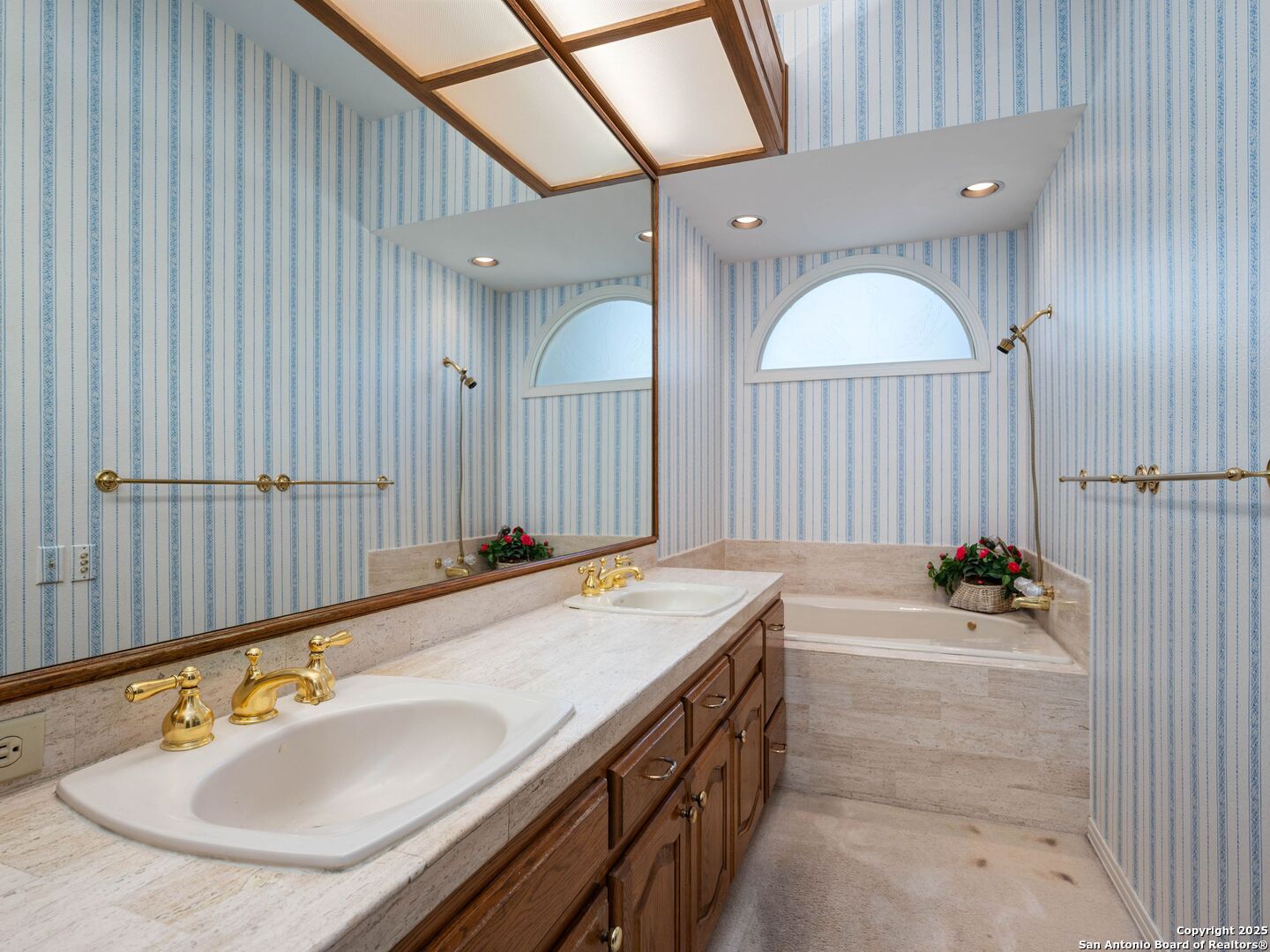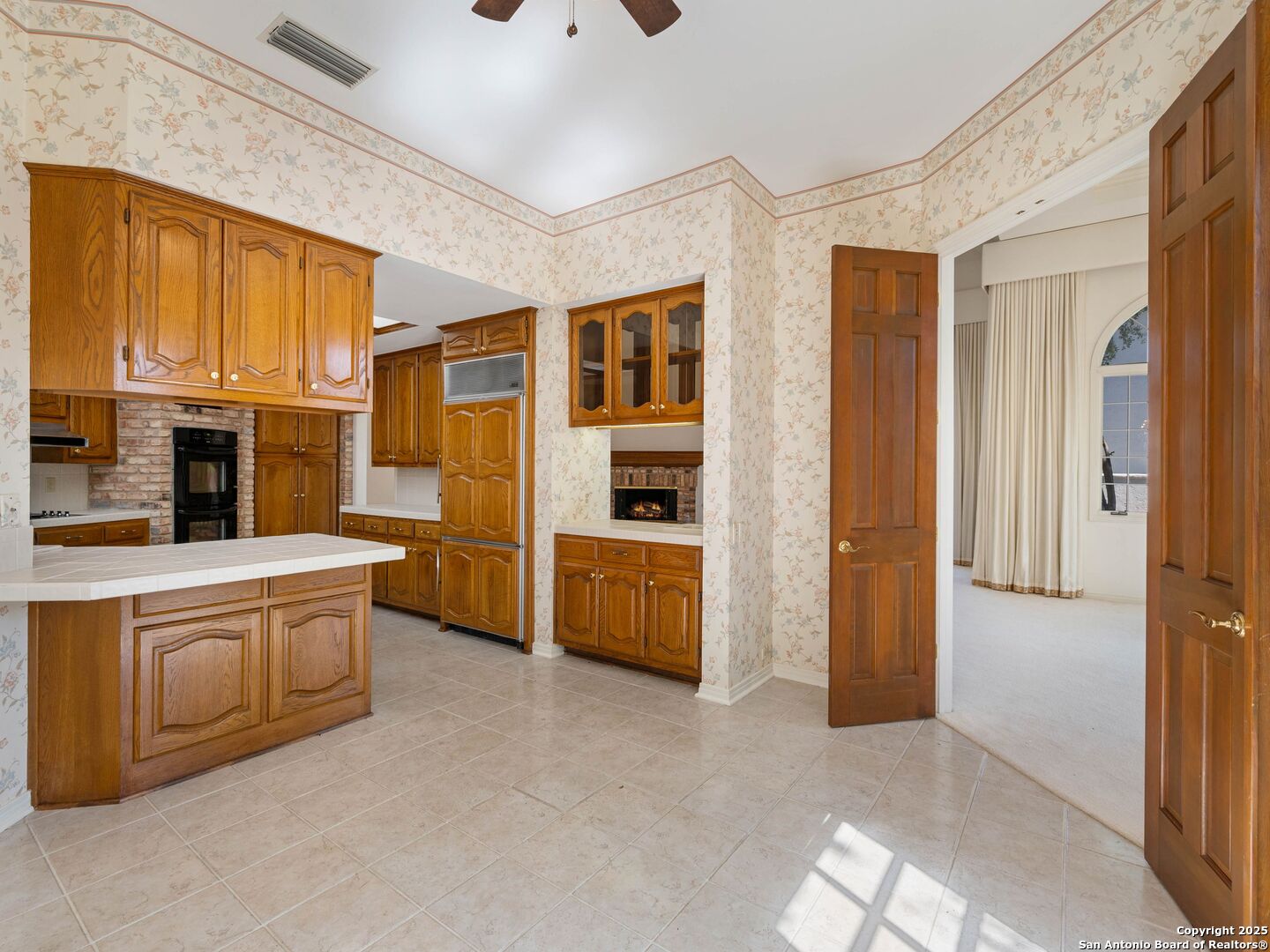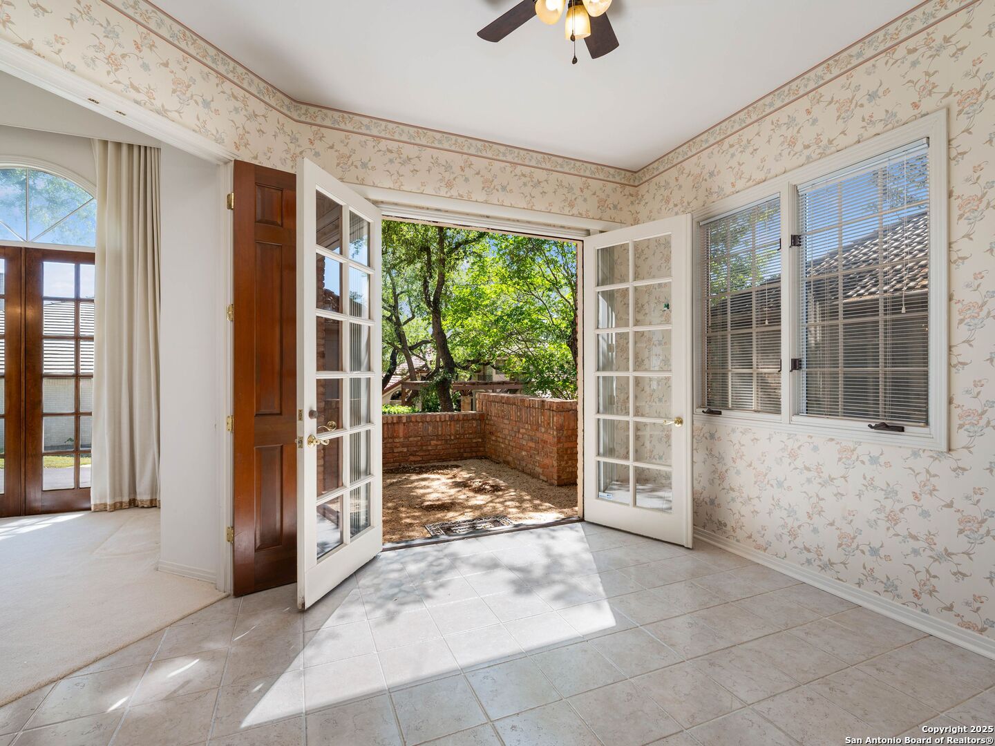 Nestled within the prestigious gated community of The Dominion, this cottage-style garden home offers a rare opportunity for buyers to personalize a home to their taste within one of San Antonio's most sought-after neighborhoods. Built with solid brick construction and featuring a newly replaced roof, the residence provides a strong foundation for future updates. An open floor plan and expansive grand windows fill the interior with natural light, creating a bright and inviting atmosphere throughout. Whether enhancing its original charm or introducing modern touches, the layout serves as an ideal canvas for a customized vision. Homes within The Dominion Cottages are rarely available, where privacy, prestige, and convenience come together in a coveted setting.