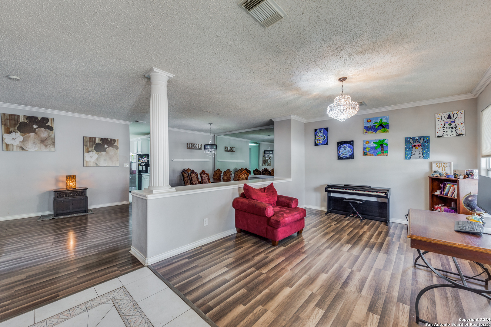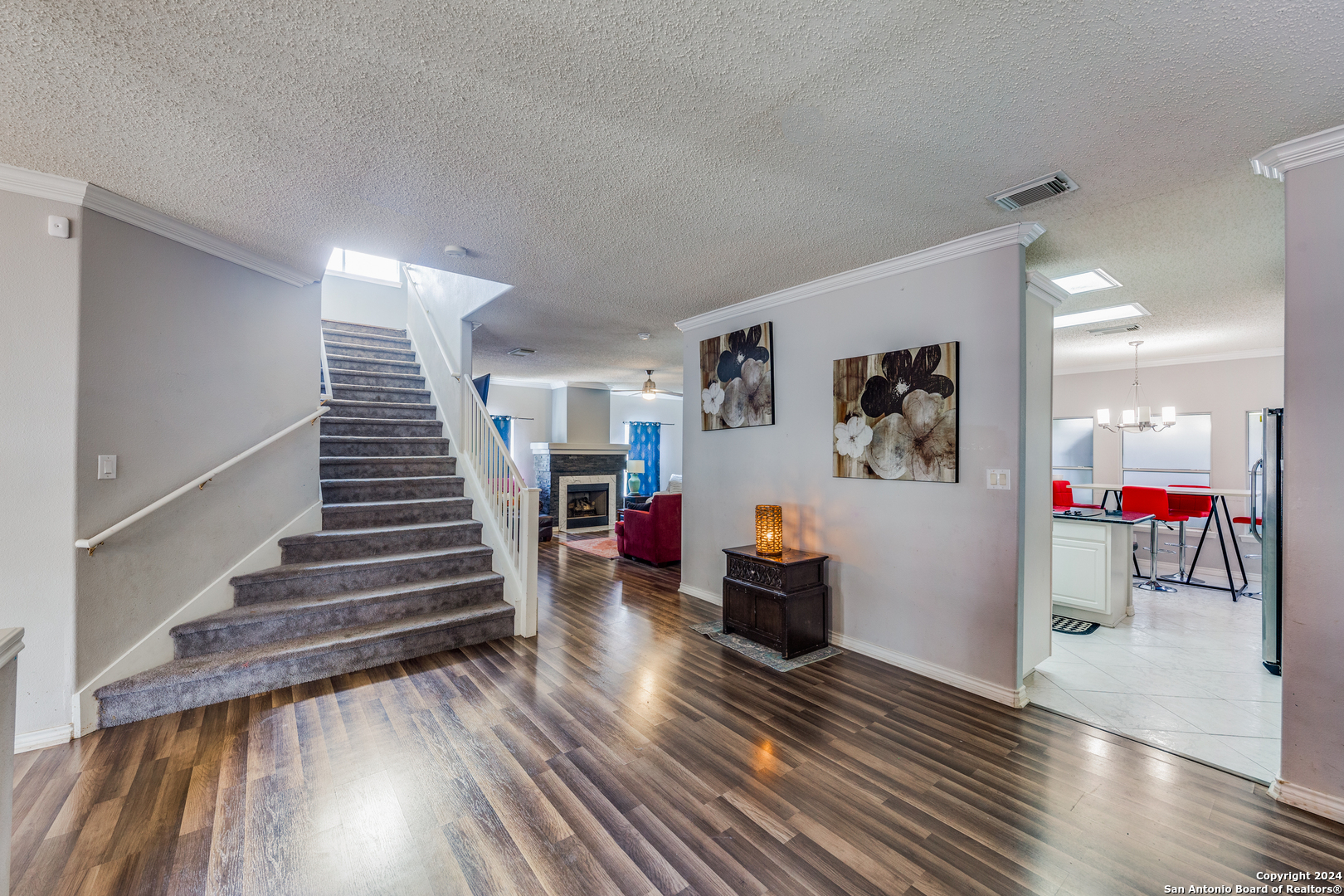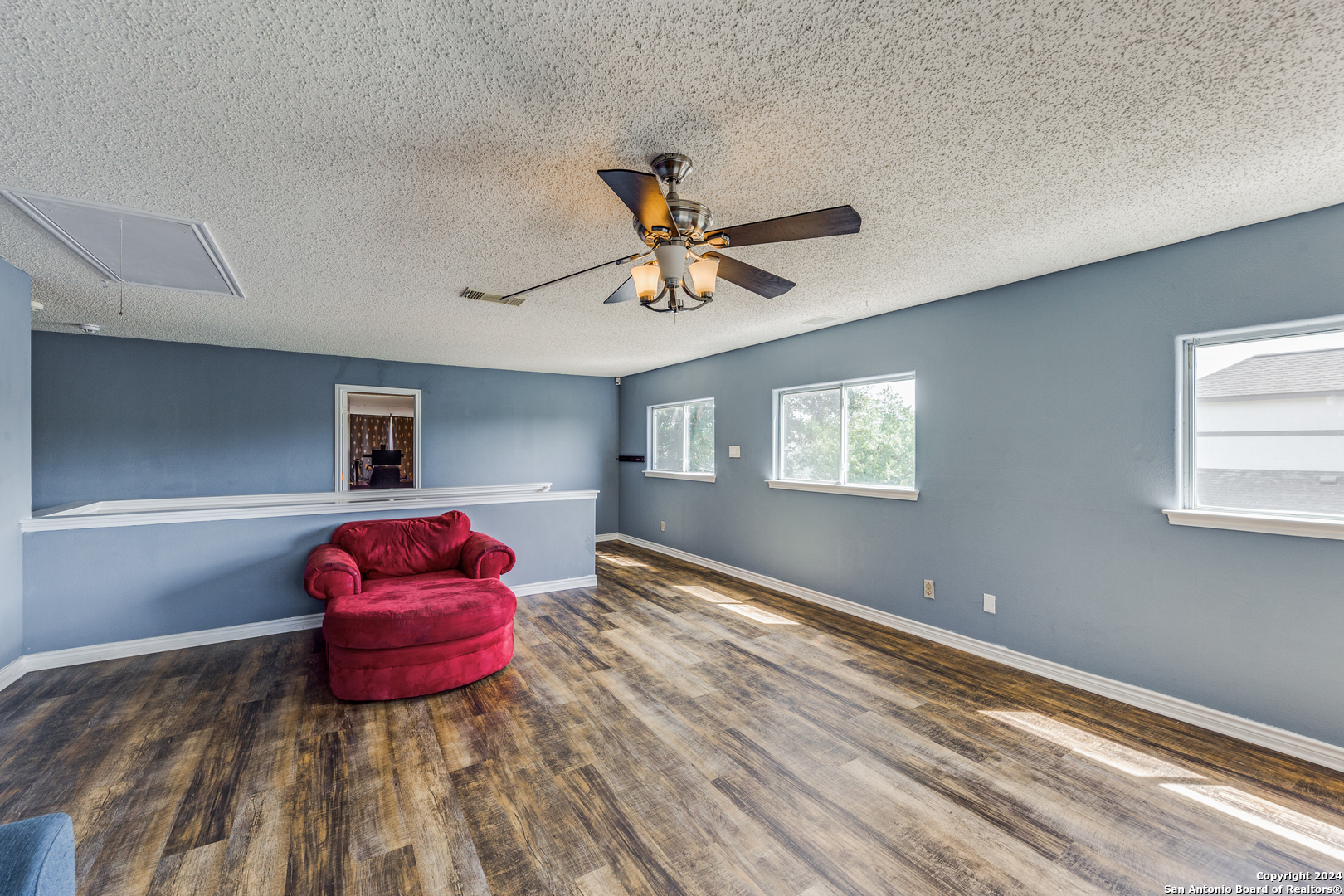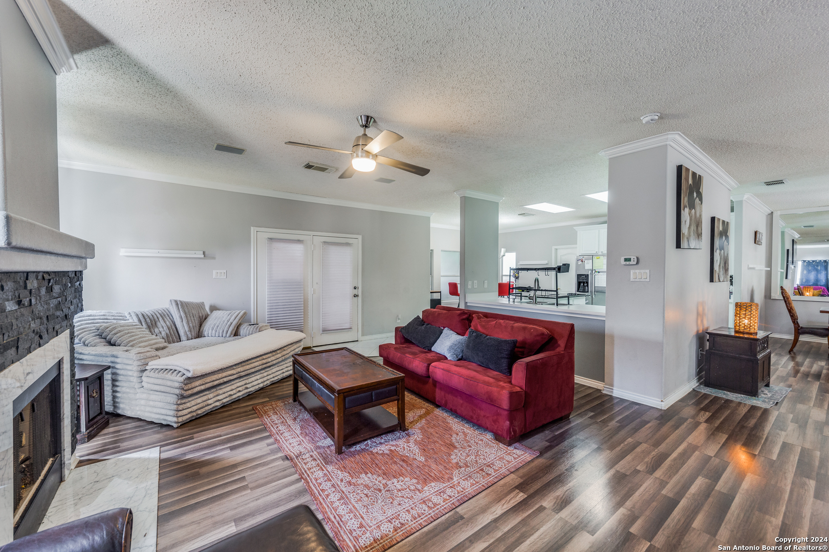 Open House Saturday, 10/19 from 1PM-3PM. Step a spacious 4-bedroom, 2.5-bath home in a gated community! Featuring three living areas. Includes a gas fireplace, this home offers comfort and convenience. Recent upgrades include new gutters, replaced windows, and a 3-year-old AC unit, serviced annually. Home offer a bonus space which for now is being used as a studio space. The property includes sprinklers, and ceiling fans.