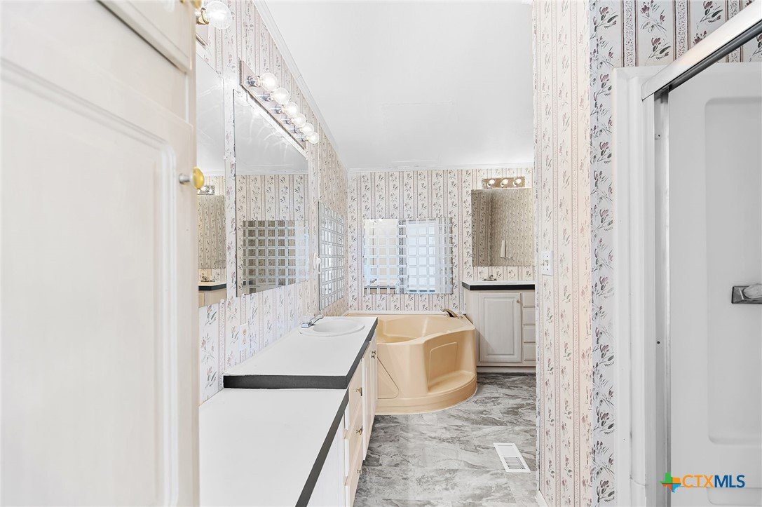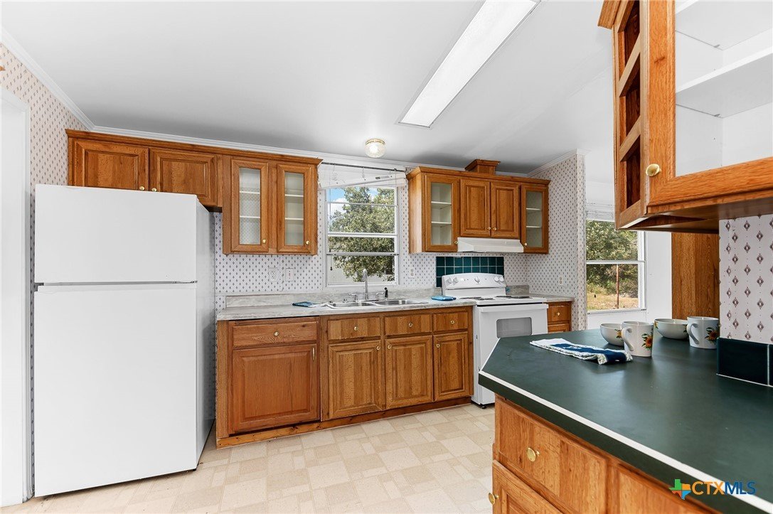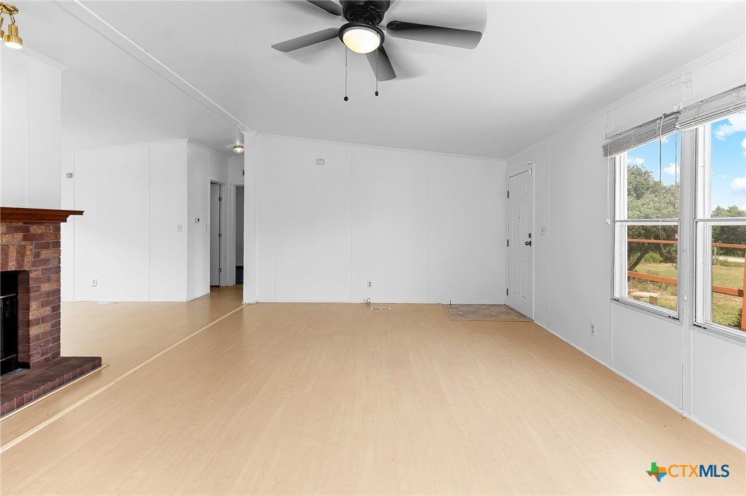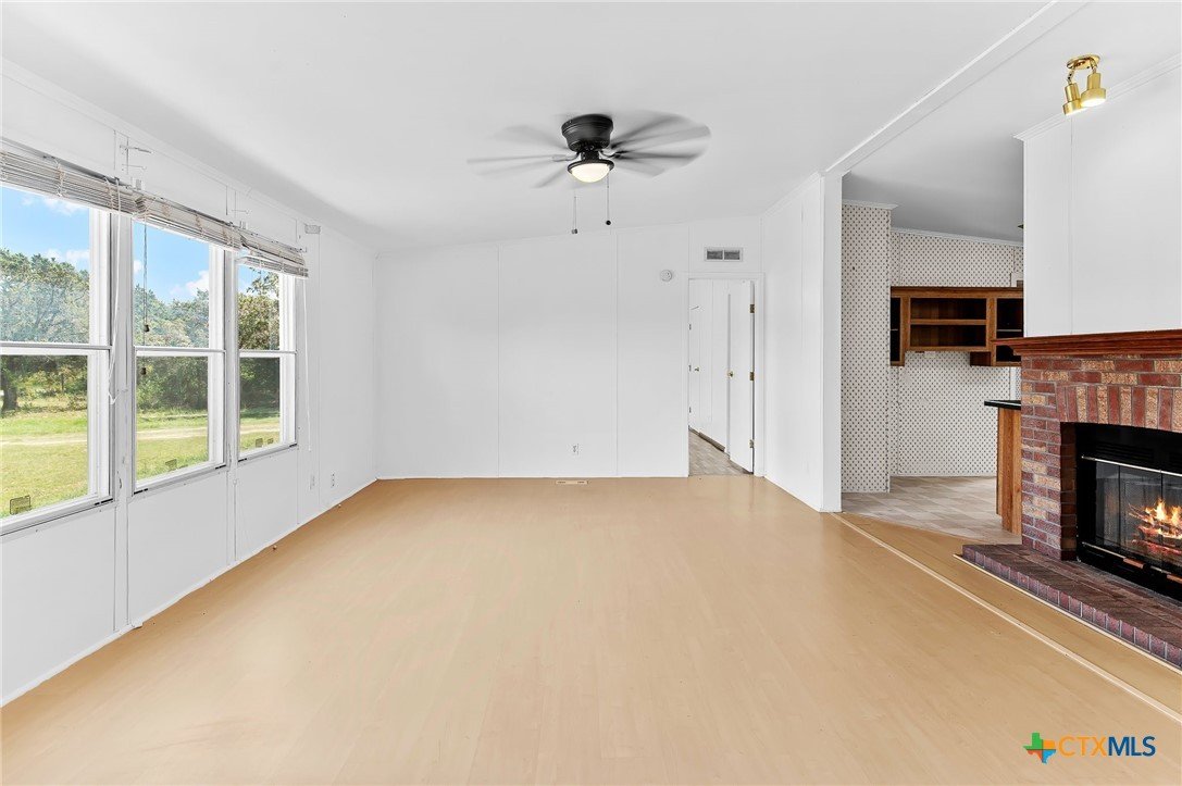 Nearly 5 acres of peaceful Texas countryside featuring beautiful mature oak and peach trees. This well-maintained manufactured home offers 3 bedrooms, 2 bathrooms, and an open-concept floor plan. Recent updates include fresh interior and exterior paint, a newer roof, and an updated HVAC system. The property is equipped with two septic systems, two electric meters, and a private water well. No HOA and no restrictions, providing endless possibilities for residential, agricultural, or multi-use living.