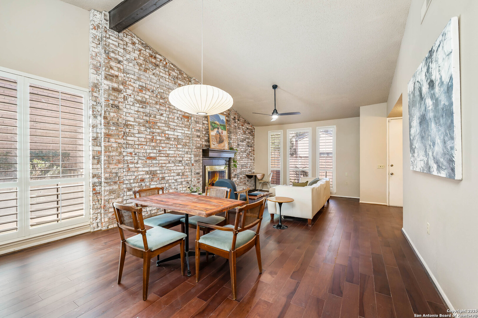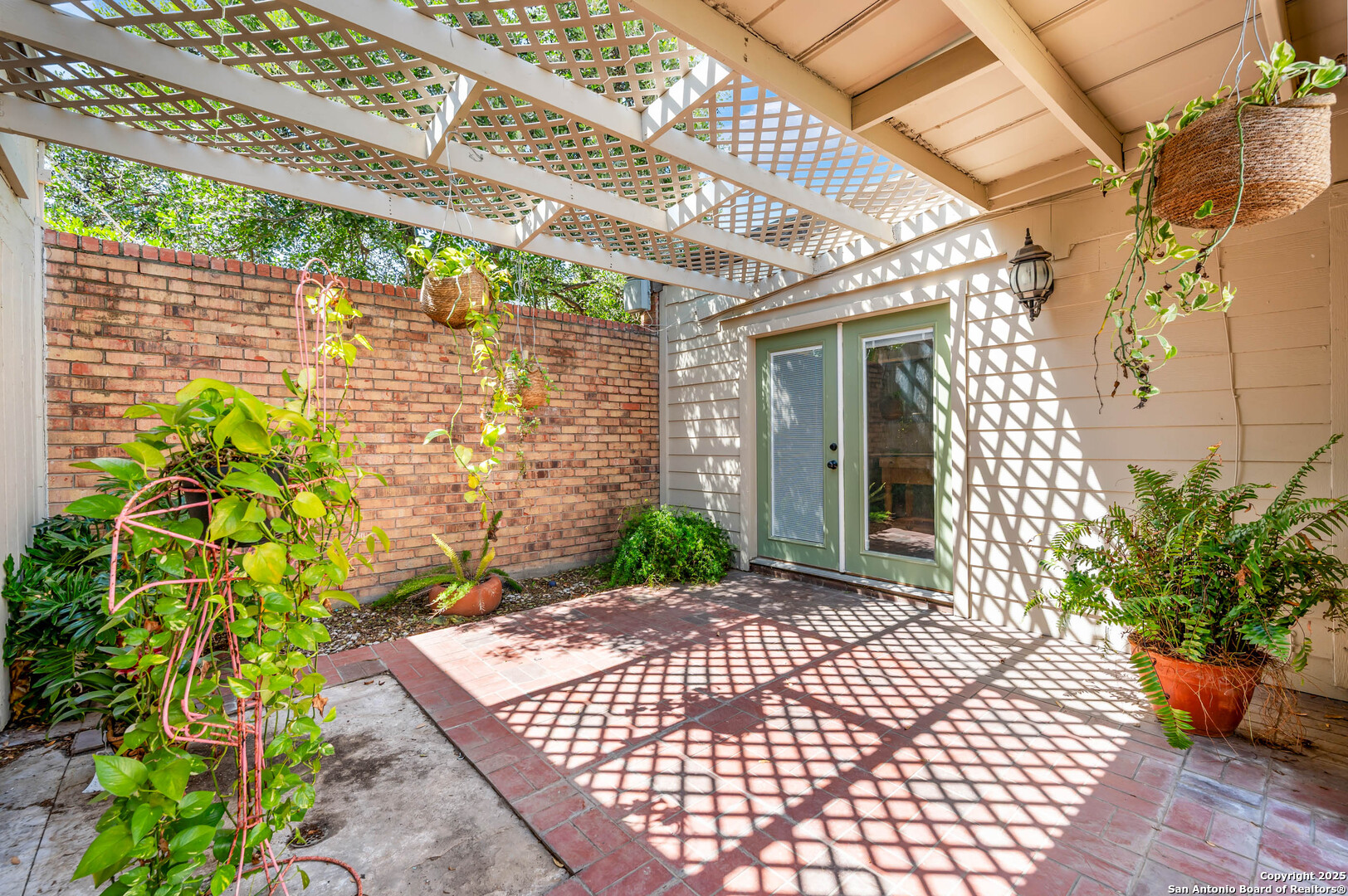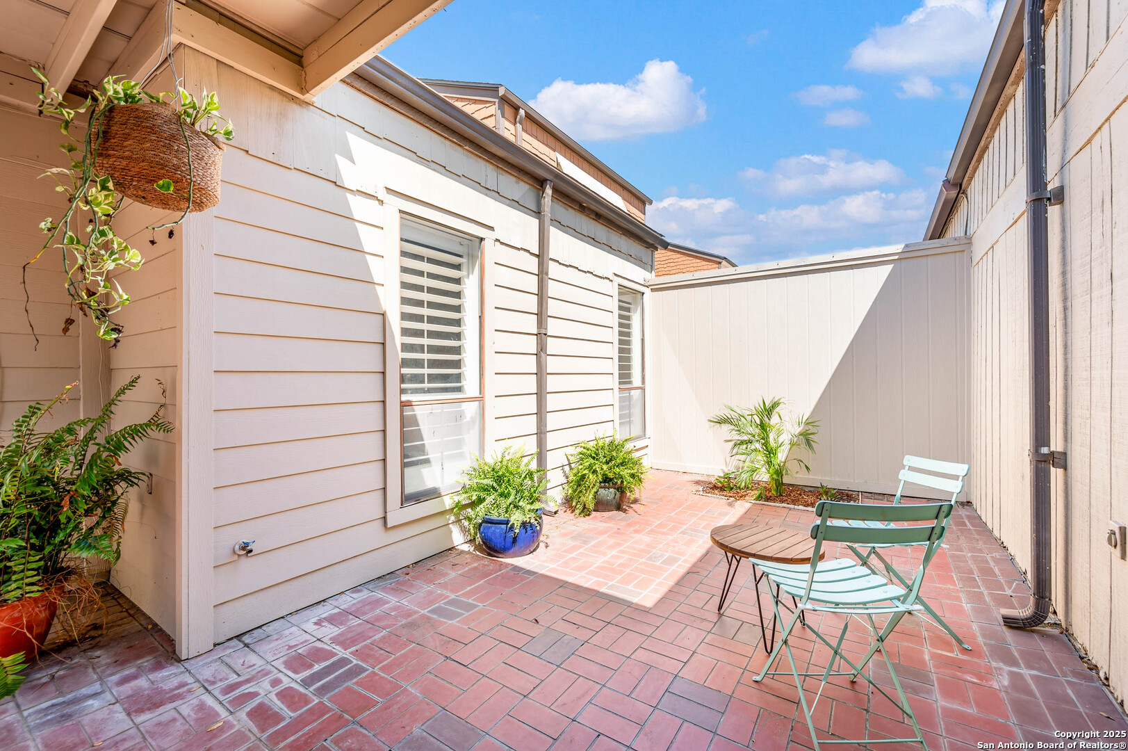 Freshly updated in Brentwood Commons * No steps throughout * Modern makeover with fresh paint & new flooring * Updated kitchen & bathrooms * New lighting fixtures throughout * Soaring 20-ft ceilings * Tall windows with custom shutters * Cozy brick fireplace * Kitchen opens to large tiled patio * Private courtyard for entertaining or relaxing * Light-filled, spacious primary suite * Private gated entry * Welcoming front courtyard * Oversized 2-car garage HOA includes: Water * Trash pick-up * Exterior maintenance (including roof) * Landscaping * Pest control * Pool & clubhouse access * Private security patrol Prime location: Near North Star Mall * Close to the airport * Easy access to 410 & I-35. Short drive to Fort Sam!