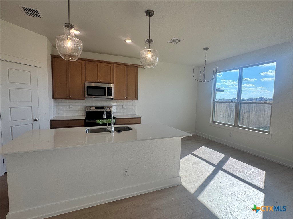 Located in the desirable Preserve at Thousand Oaks subdivision this home features 3 bedrooms, 2 bathrooms & a 2 car garage. The Blanco floor plan offers an amazing OPEN FLOOR PLAN with 1,360 spacious square feet. The kitchen has boasts STAINLESS STEEL APPLIANCES, GRANITE COUNTERTOPS, and a walk in PANTRY. All of the bedrooms are spacious with carpet, while all main living areas feature a luxury vinyl plank. Both bathrooms include GRANITE COUNTERTOPS, the primary bathroom features a walk-in shower, & a double vanity. Enjoy a COVERED PATIO, full yard sod & irrigation with a 6' privacy fence. This home offers a great floor plan for everyday living. Fresh Start, Fall Savings! Now offering interest rates as low as 2.99% with a 2/1 Buydown (6.23% APR) (VA LOANS ONLY)* — a great deal to kick off your buyer's home search. Don’t miss this limited-time opportunity! Incentives are available only on select homes and may vary by community and homesite. Restrictions apply. Please contact our sales team for complete details.