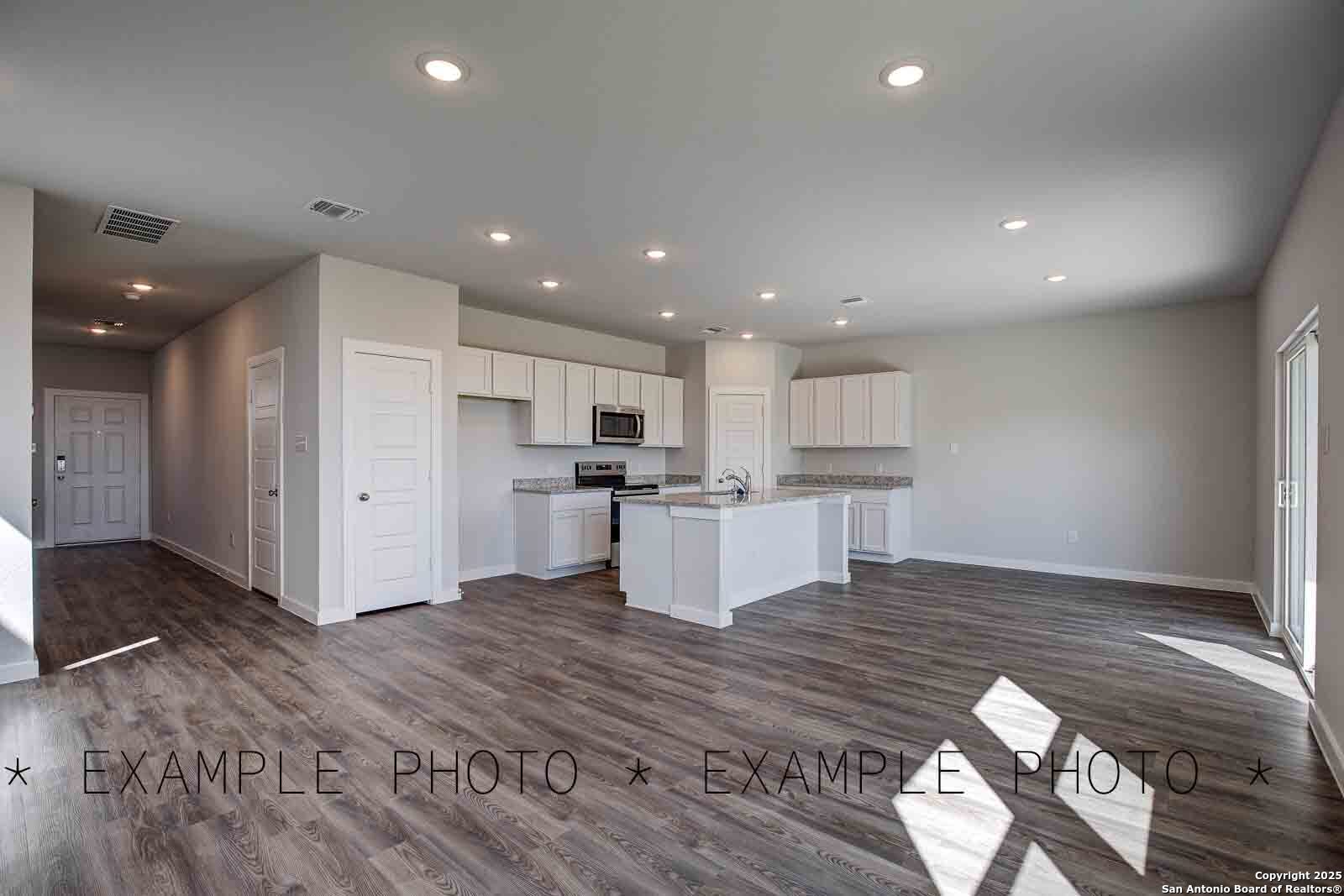 The Rudy at Agave is of well-designed living space. The first level features an open-concept great room seamlessly connected to the dining area and kitchen equipped with a corner walk-in pantry and a center island. Additionally, a convenient powder room can be found on the main level. Upstairs, a spacious primary suite's en-suite bathroom offers privacy and functionality with a dual-sink vanity and an expansive walk-in closet. Three secondary bedrooms, also located on the second floor, share a full bathroom. A full laundry room and 2-bay garage complete the space. Additional home highlights and upgrades: 36"" kitchen cabinets, quartz countertops and backsplash Luxury wood-look vinyl plank flooring in common areas Stainless-steel appliance package with gas range oven Recessed lighting throughout home Cultured marble countertops and modern rectangular sinks in bathrooms Landscape package with full sprinkler system Garage door opener with two remotes Exceptional included features, such as our Century Home Connect smart home package and more!