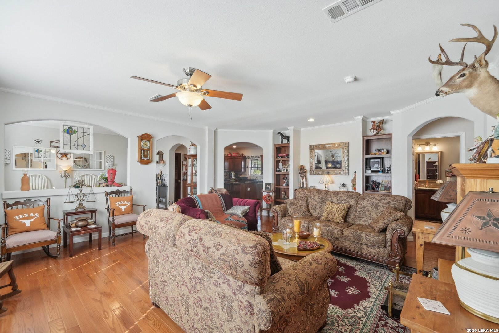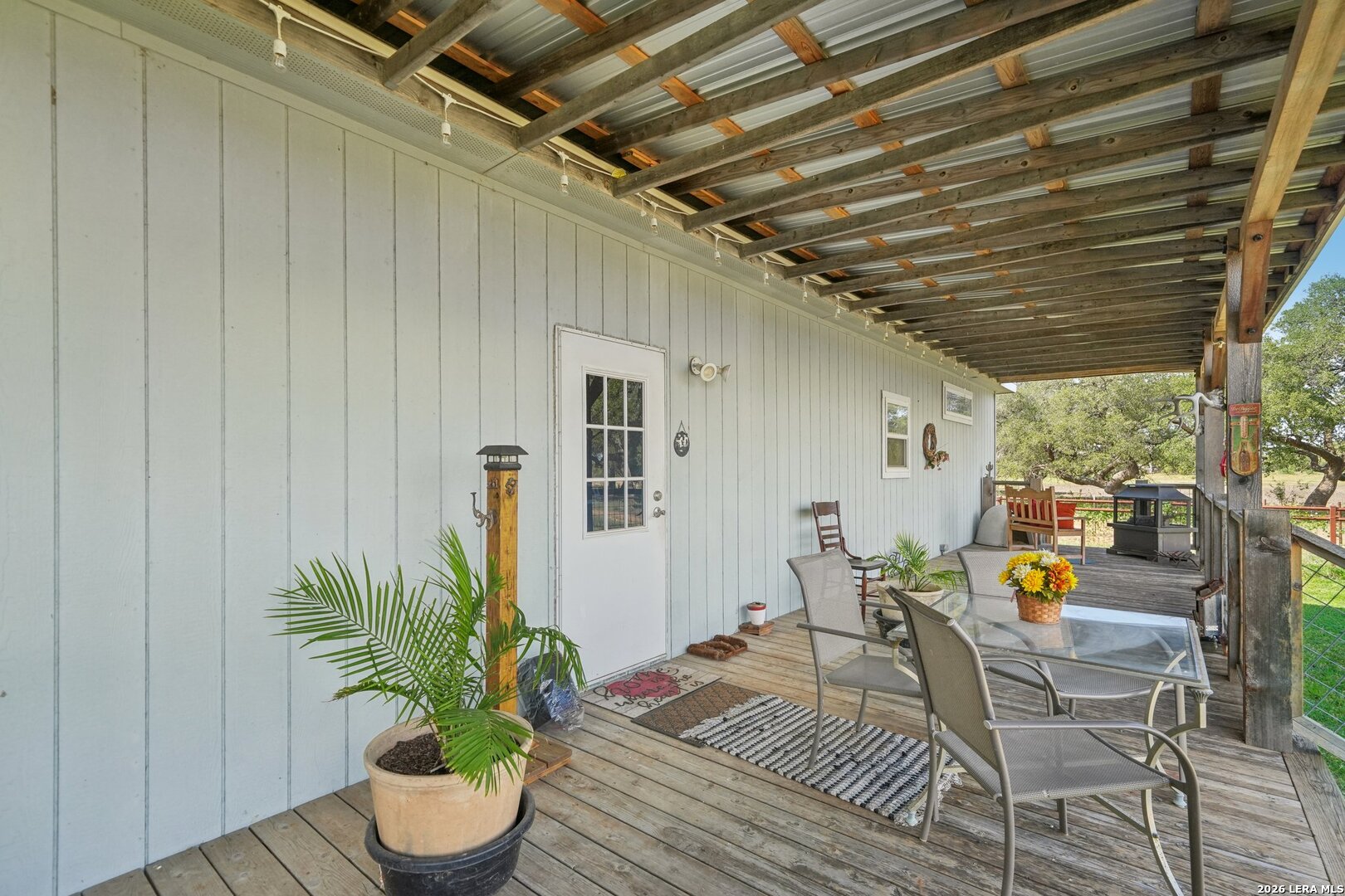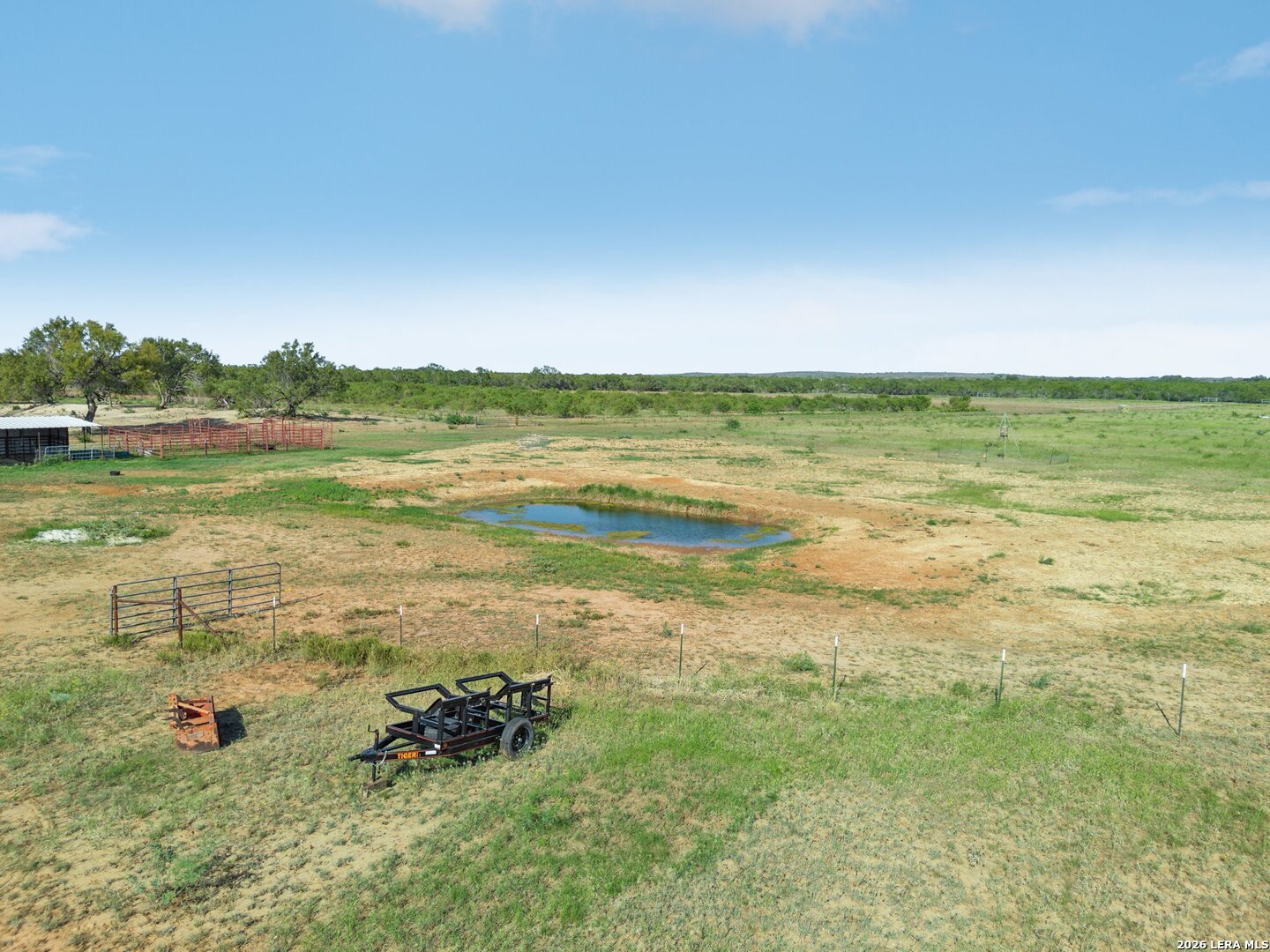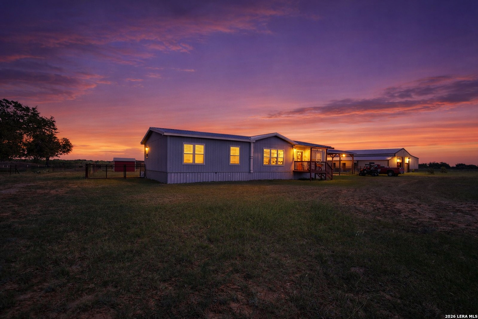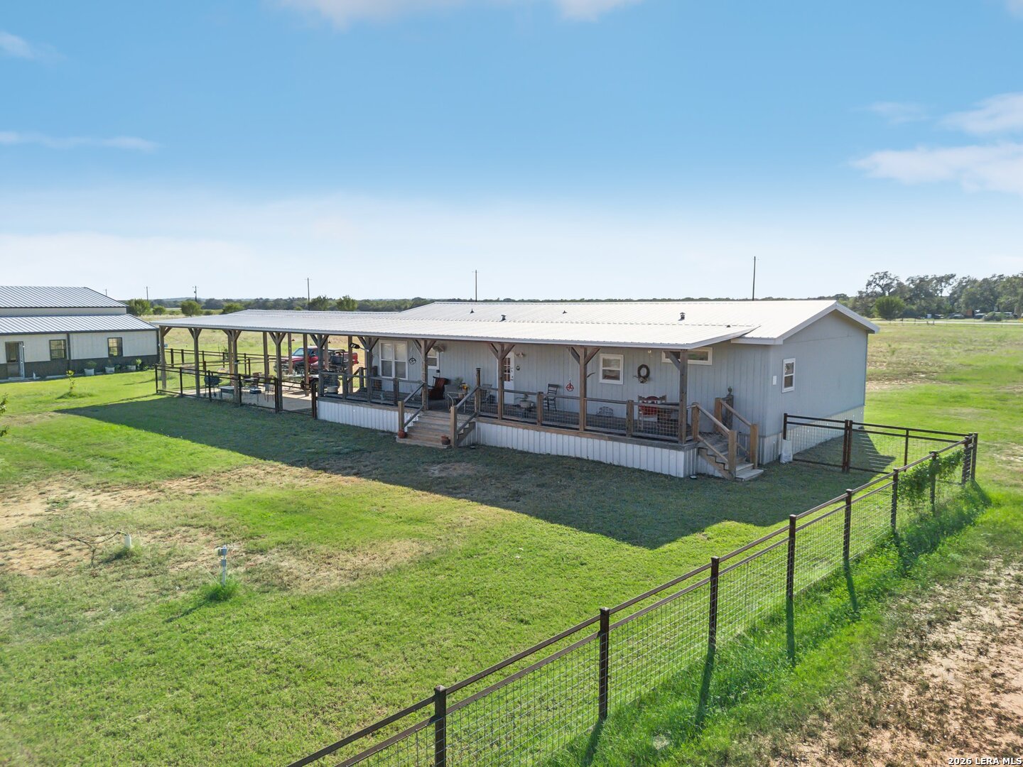 27.3 ag-exempt acres just south of Hondo - turnkey for ranching, hunting, or your long-term dream build. The ag-exempt status is already in place, keeping taxes low from day one. You're one hour to San Antonio, 15 minutes to Hondo, 20 to Devine, 30 to Castroville. The ranch infrastructure is done: two newly-dug 120-ft wells pumping 10 GPM each, a stock tank, electric gate, full perimeter and cross-fencing, cattle pens, covered stalls, multiple water troughs, and a partially-wooded back acreage with hunting rights. The 2,800+ sqft Mueller barn has four roll-up doors, two man doors, flex space, water and electricity, plus a 60x20 awning - this alone would cost $150K+ to build today. The 1,800 sqft Clayton home (2013, new A/C in 2024) gives you a comfortable place to live while you work the land or plan your build. Three bedrooms down, open floor plan, hardwood floors, granite island kitchen, arched doorways, primary with whirlpool tub + double vanity, and a back porch made for sunsets. Fully cross-fenced for livestock. Backyard fenced for pets. High fencing along the back for deer. Move in and start living the ranch life today.