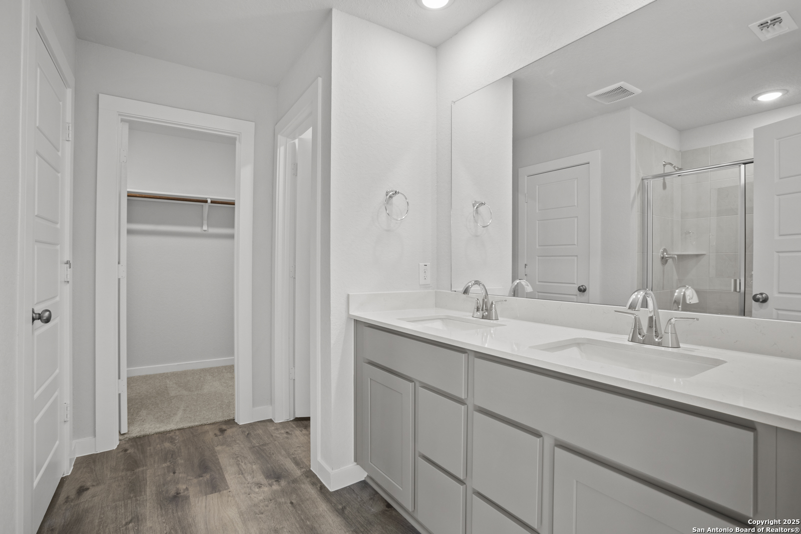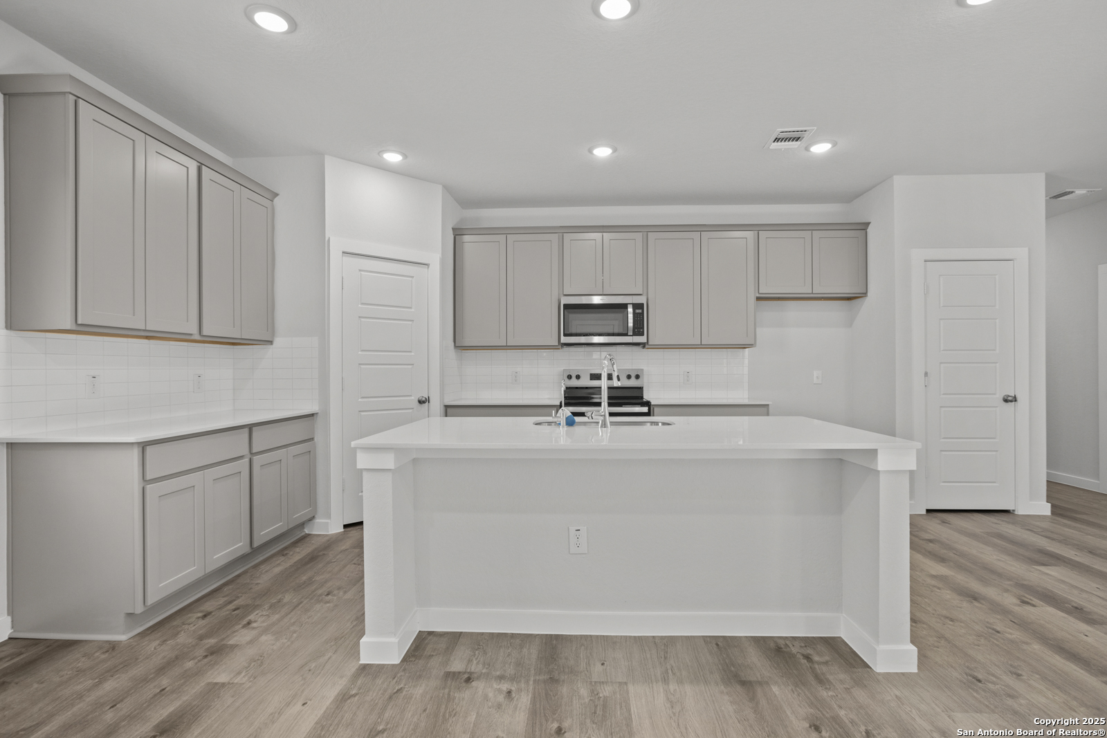 The Harper at Rosemont Hill showcases a meticulously crafted two-story design. The main level greets you with a welcoming open-concept great room, dining area, and a chef-friendly kitchen featuring a corner walk-in pantry and a versatile center island. A convenient powder room can also be found on the first floor. Upstairs, a spacious loft, great for entertaining, connects the home's three bedrooms, secondary full bathroom, and laundry room. The private primary suite stands out with an en-suite bathroom, highlighted by a dual-sink vanity, a large walk-in closet, and a private water closet. Throughout the floor plan, several spare closets offer optimal storage space. Additional home highlights and upgrades: 42"" gray kitchen cabinets, quartz countertops and backsplash Luxury wood-look vinyl plank flooring in common areas Stainless-steel appliances and gas range oven Additional recessed lighting throughout home Cultured marble countertops and modern rectangular sinks in bathrooms Landscape package with sprinkler system Garage door opener with two remotes Covered patio Soft water loop Exceptional included features, such as our Century Home Connect smart home package and more!