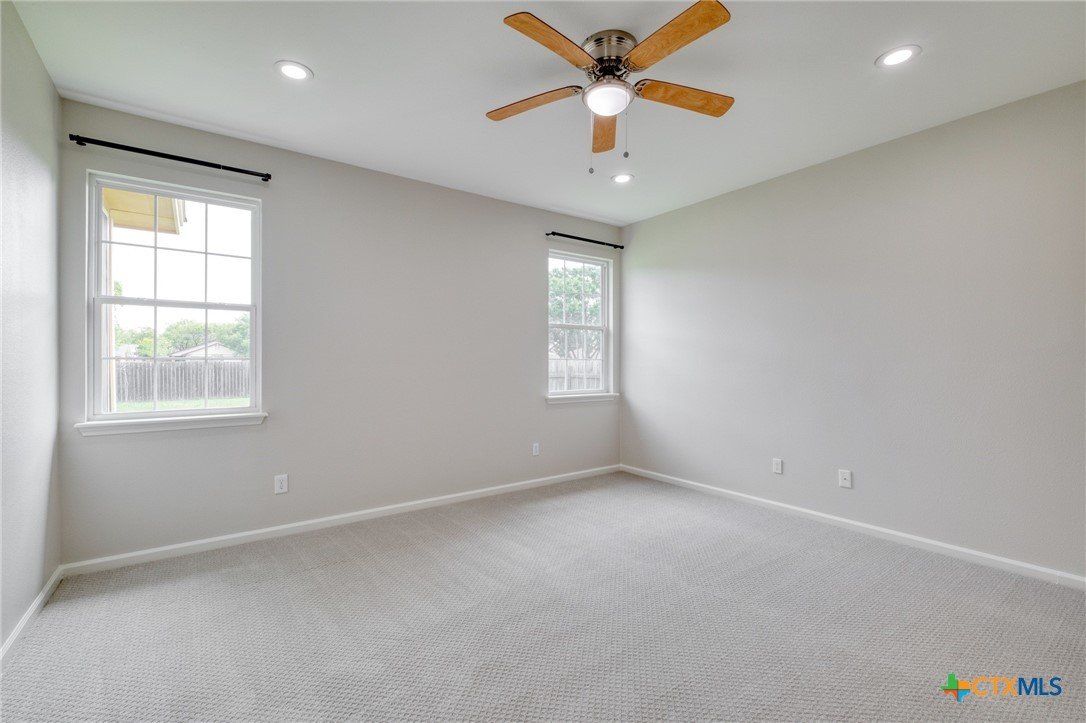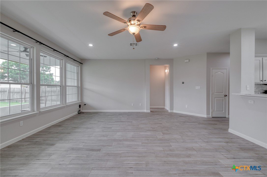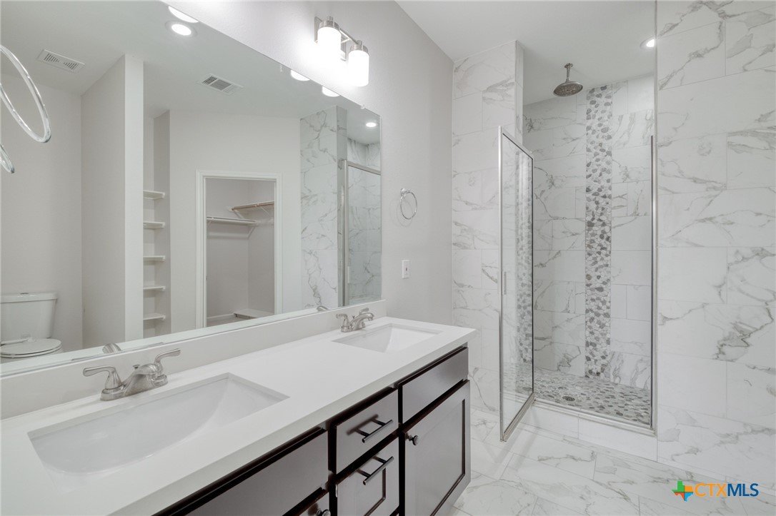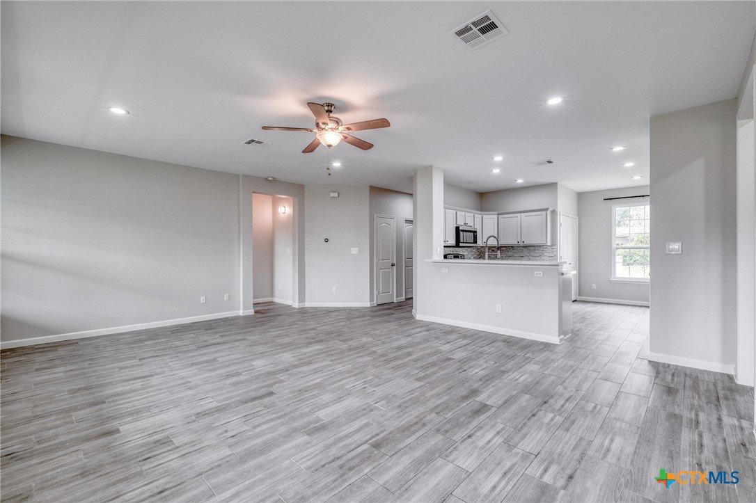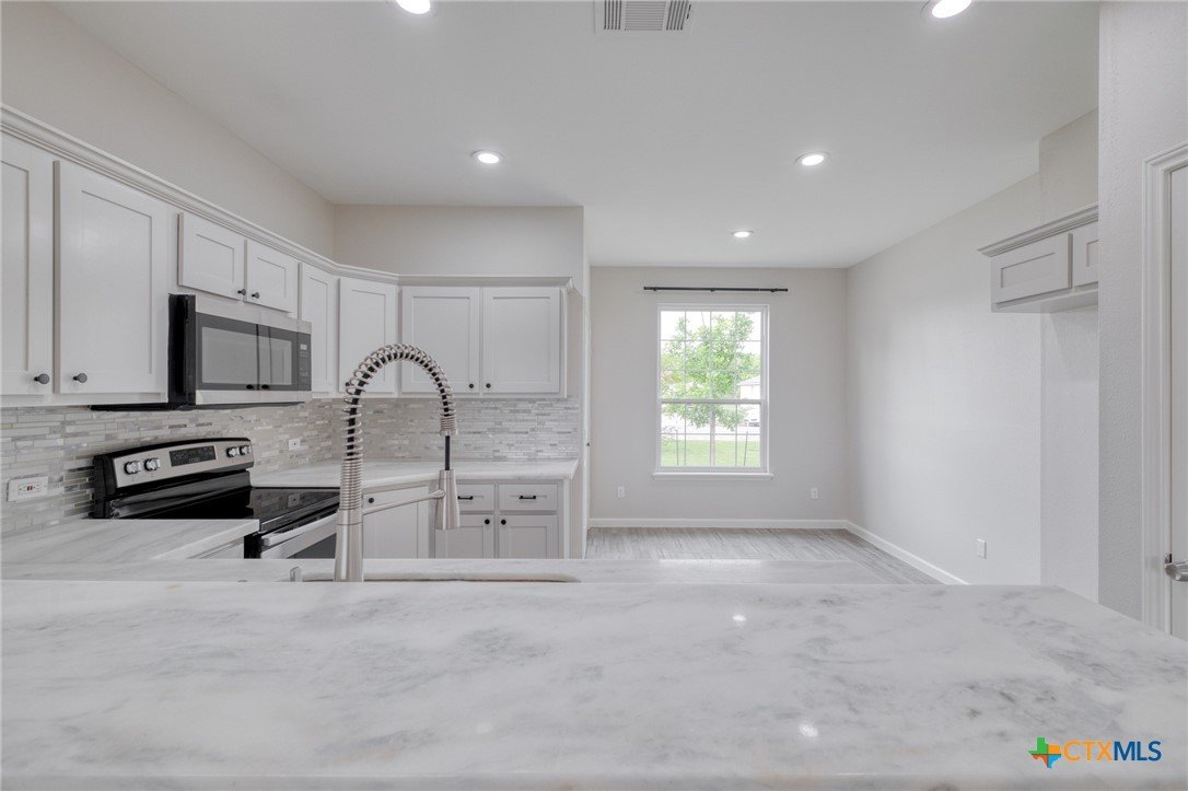 Welcome to 902 Fannin Street in the heart of Lockhart — where small-town charm meets modern comfort and an unbeatable location puts Austin, Kyle, and Buda all within easy reach. This beautifully updated one-story home offers three bedrooms, two bathrooms, and a thoughtfully designed open floor plan with soaring high ceilings and wood-look tile flooring throughout the main living areas. Fresh paint throughout gives the home a crisp, clean feel that is truly move-in ready. The kitchen has been freshly refreshed with neutral painted cabinets, marble countertops, and a classic tile backsplash, opening seamlessly to the living and dining spaces — perfect for everyday living and entertaining alike. The split floor plan places the primary suite privately on one side of the home, featuring an en suite bath with a walk-in shower and a generous walk-in closet. Two spacious secondary bedrooms share a well-appointed hall bathroom on the opposite side. Brand new carpet in all bedrooms completes the pristine, move-in ready feel you will notice the moment you walk through the door. Step outside to a screened-in covered porch and a privacy-fenced backyard, ideal for relaxing or letting pets roam freely. The stone and stucco exterior gives the home standout curb appeal, and a two-car garage adds everyday convenience. With no HOA restrictions and Lockhart's growing dining scene, local character, and quick access to major corridors, this home is the perfect blend of value, lifestyle, and location.