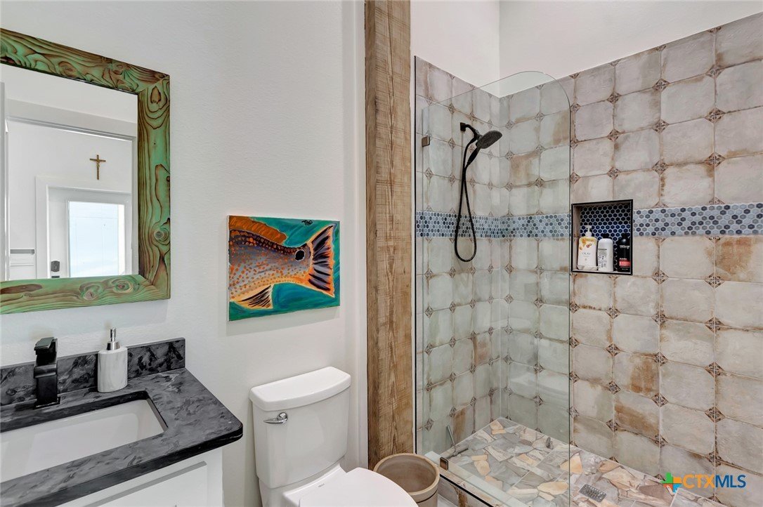 Experience the ultimate coastal living in this stunning waterfront home with breathtaking views of Matagorda Bay. This custom-built residence is a true masterpiece, featuring an open-concept design and exquisite designer finishes that could grace the pages of any home magazine. Step inside and be welcomed by the elegant board and batten accents that enhance the home's charm. The chef's kitchen is a culinary dream, complete with a spacious butler's pantry, perfect for entertaining guests and hosting gatherings. Enjoy seamless access to multiple lounging areas and decks, all offering spectacular water views—an entertainer's paradise! The primary suite, conveniently located on the main floor, boasts dual vanities and exquisite design elements, creating a serene retreat. A stylish powder room adds to the convenience for both residents and guests. An elevator provides easy access to all floors, ensuring comfort and accessibility for everyone. Venture to the top floor, where you'll find two additional bedrooms and two bathrooms, complemented by a secondary living area and a private deck with stunning water views. The street-level suite is a perfect guest retreat, featuring two queen beds and two twin bunk beds, a private bathroom, and its own seating area, completely separate from the main living spaces, yet still enjoying elevator access. With multiple decks and lounging areas overlooking the water, this property is a fisherman’s paradise, offering the perfect blend of luxury and leisure. Don’t miss your chance to own this exceptional piece of waterfront real estate in Port O’Connor—schedule your private showing today!