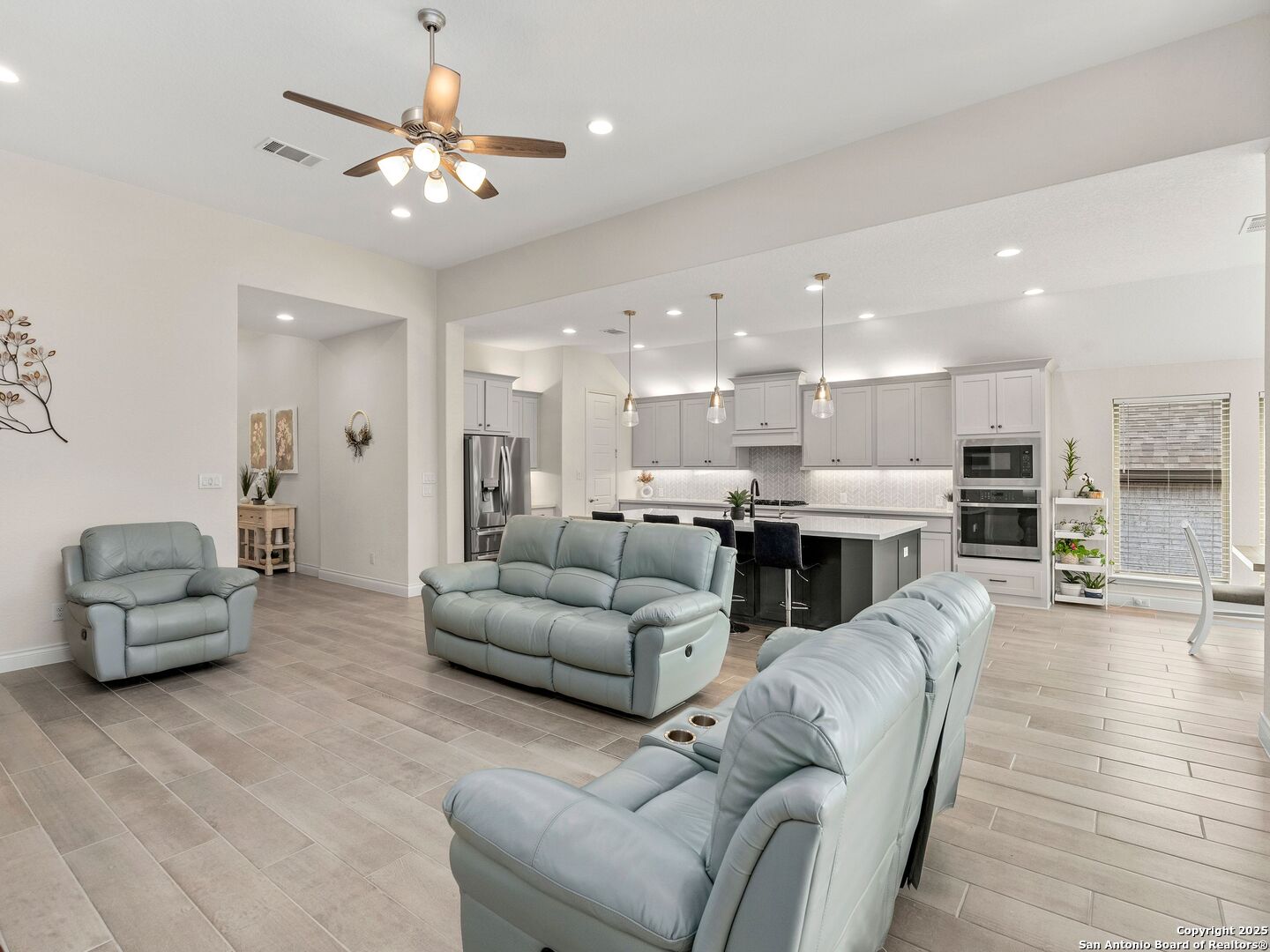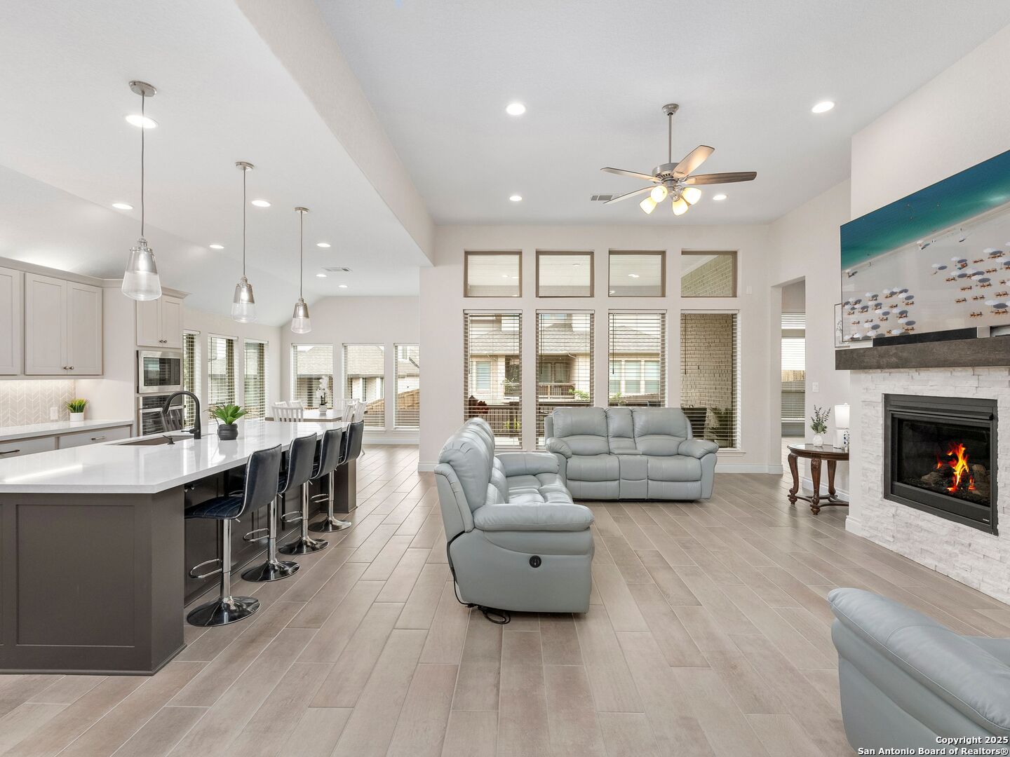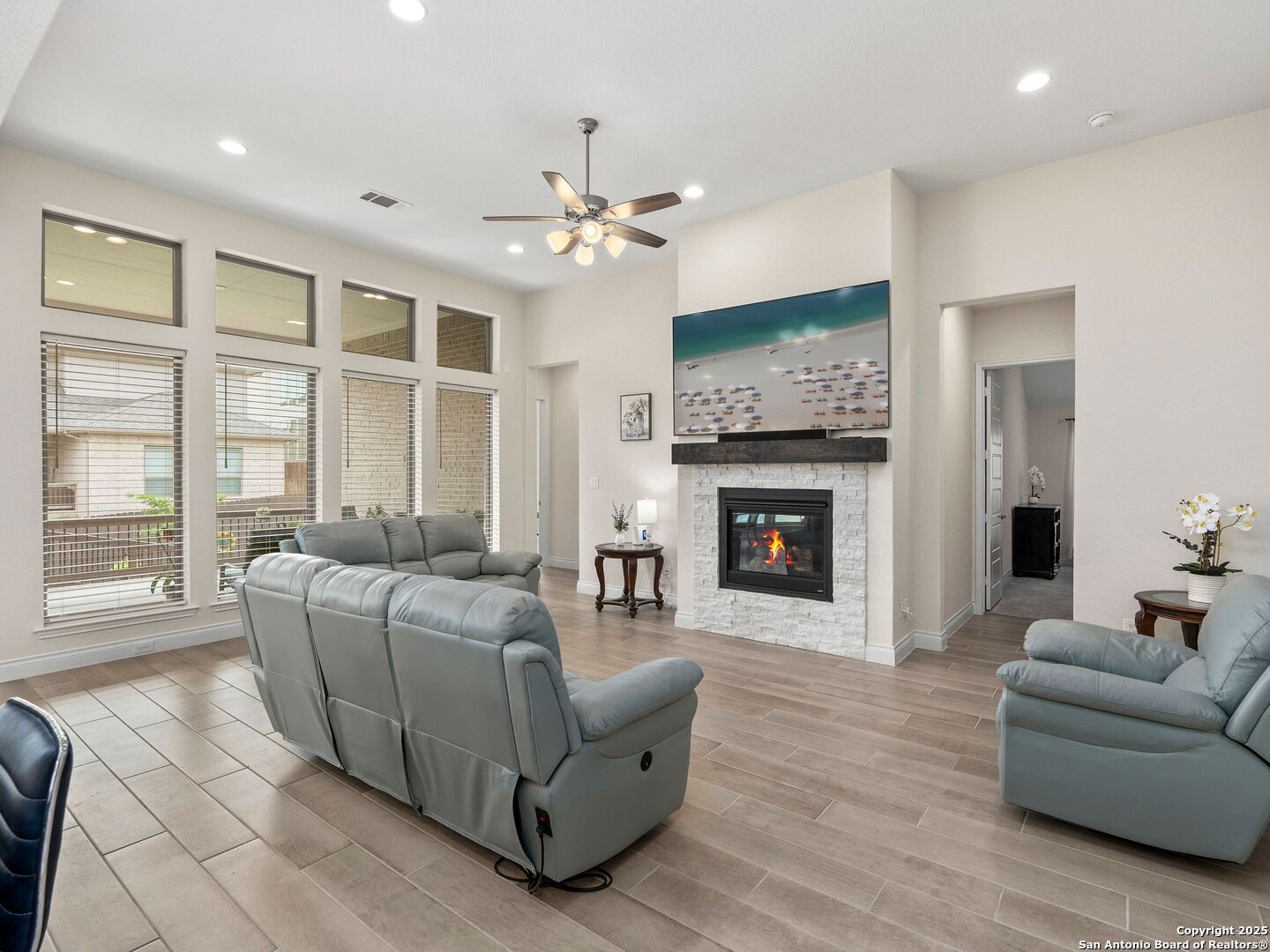 Step into luxury with this stunning Perry Home built in 2022, offering 4 bedrooms, 3.5 bathrooms, and 2,987 square feet of thoughtfully designed living space - all on one level. Flooded with natural light, the open-concept layout showcases a spacious living area and a large kitchen with ample counter space, perfect for entertaining. A versatile game room adds extra flexibility for leisure or work-from-home needs. The generously sized primary suite features a private en-suite bathroom with double vanities, a soaking tub, and a separate shower. Three additional bedrooms provide plenty of space for family or guests. Located in the sought-after River Rock Ranch community, residents enjoy easy access to top-tier shopping and dining. The Shops at La Cantera, The Rim, and Leon Springs offer a variety of retail, dining, and entertainment options just minutes away. Convenient access to I-10 ensures a quick commute to major employers and downtown San Antonio. Experience the perfect blend of elegance and convenience - schedule your private showing today!
