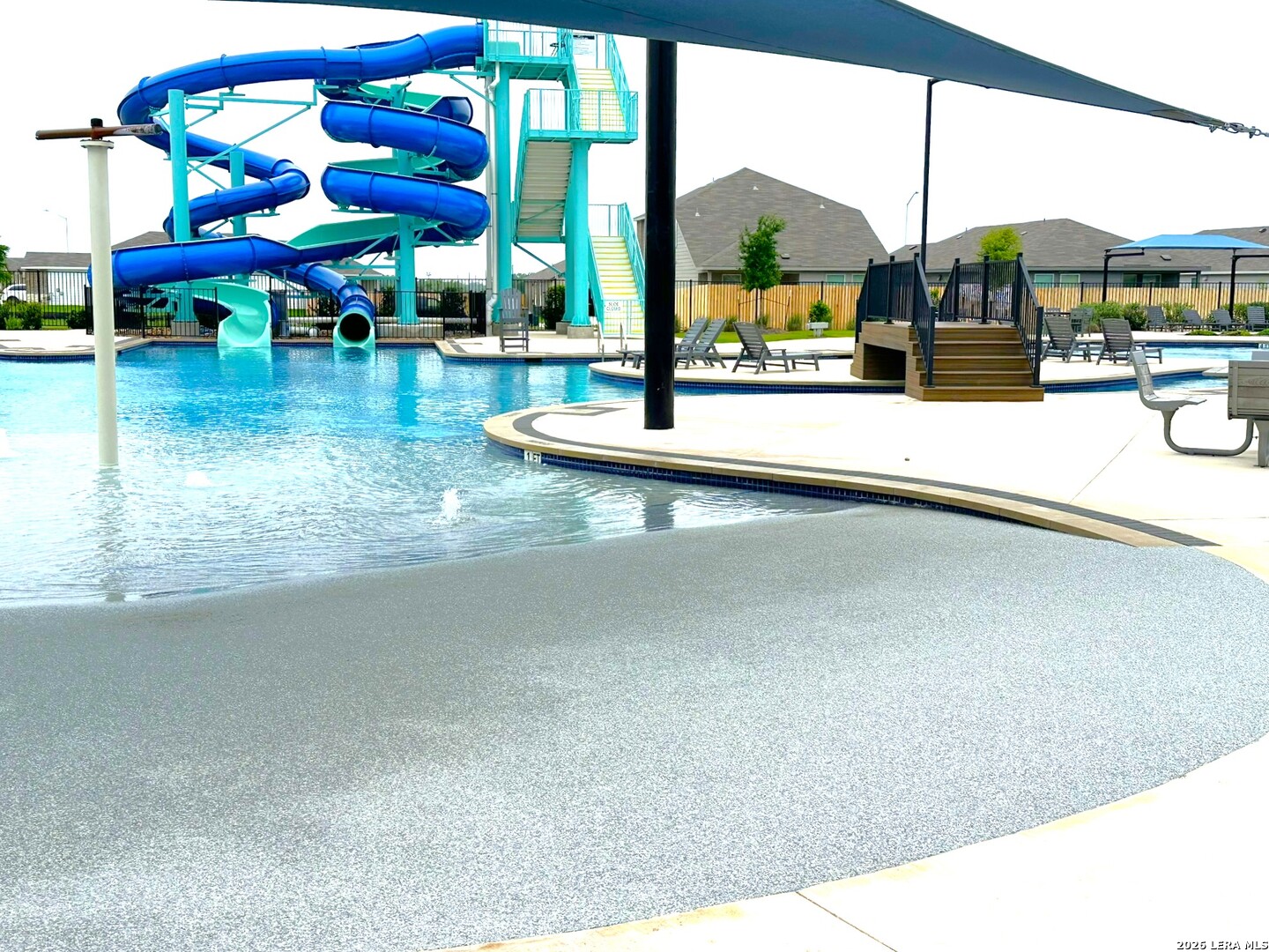Nearly new home in Navarro Ranch. Open floor plan. Stainless appliances. Breakfast bar. Faux wood flooring in the living area, dining, and kitchen. Fresh paint. Fantastic neighborhood amenities including resort style pool with water slides, Olympic-sized lap pool, splash pad, community building with a 24/7 fitness center, park and playground, outdoor amphitheater, and a walking trail.