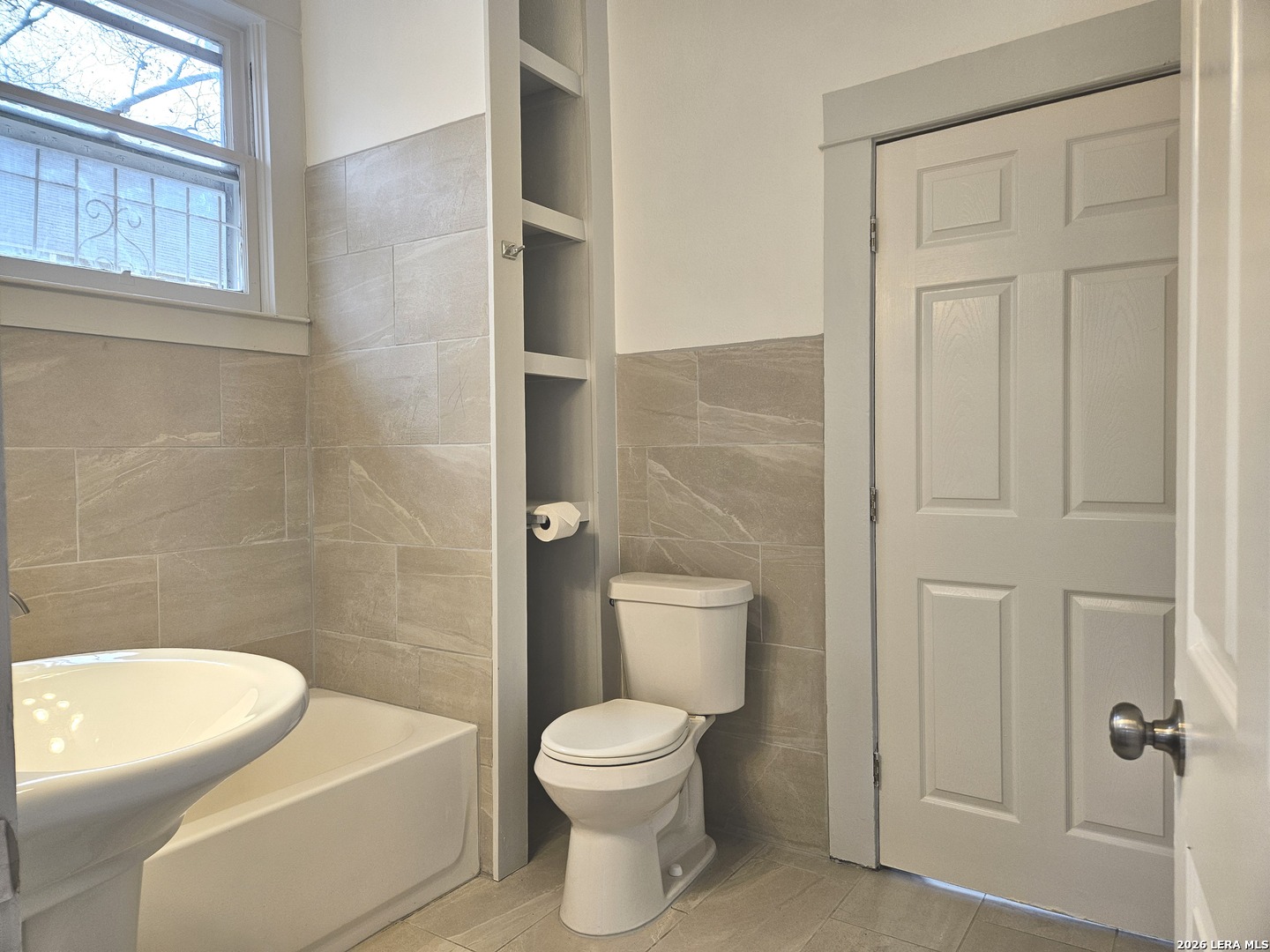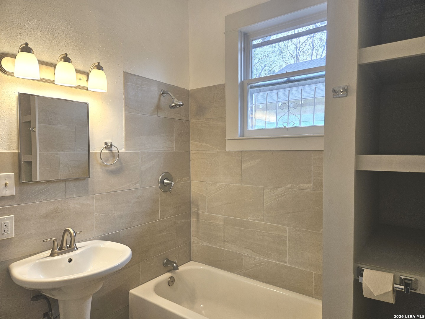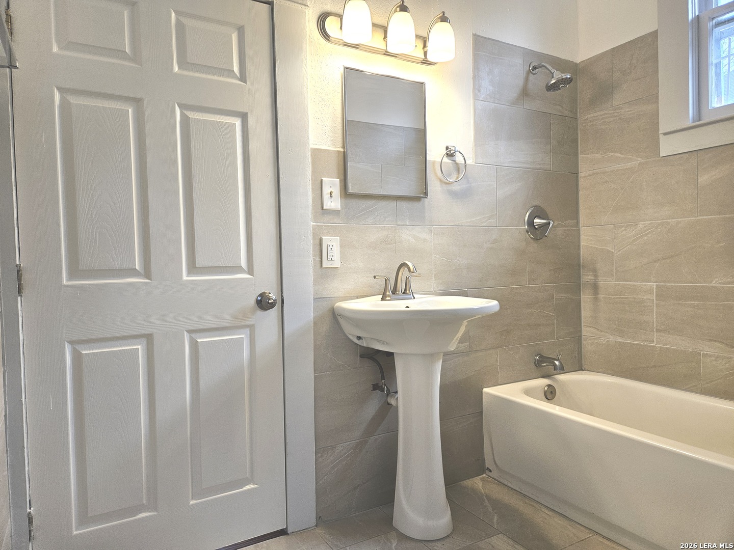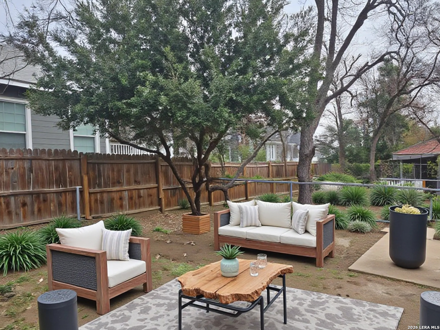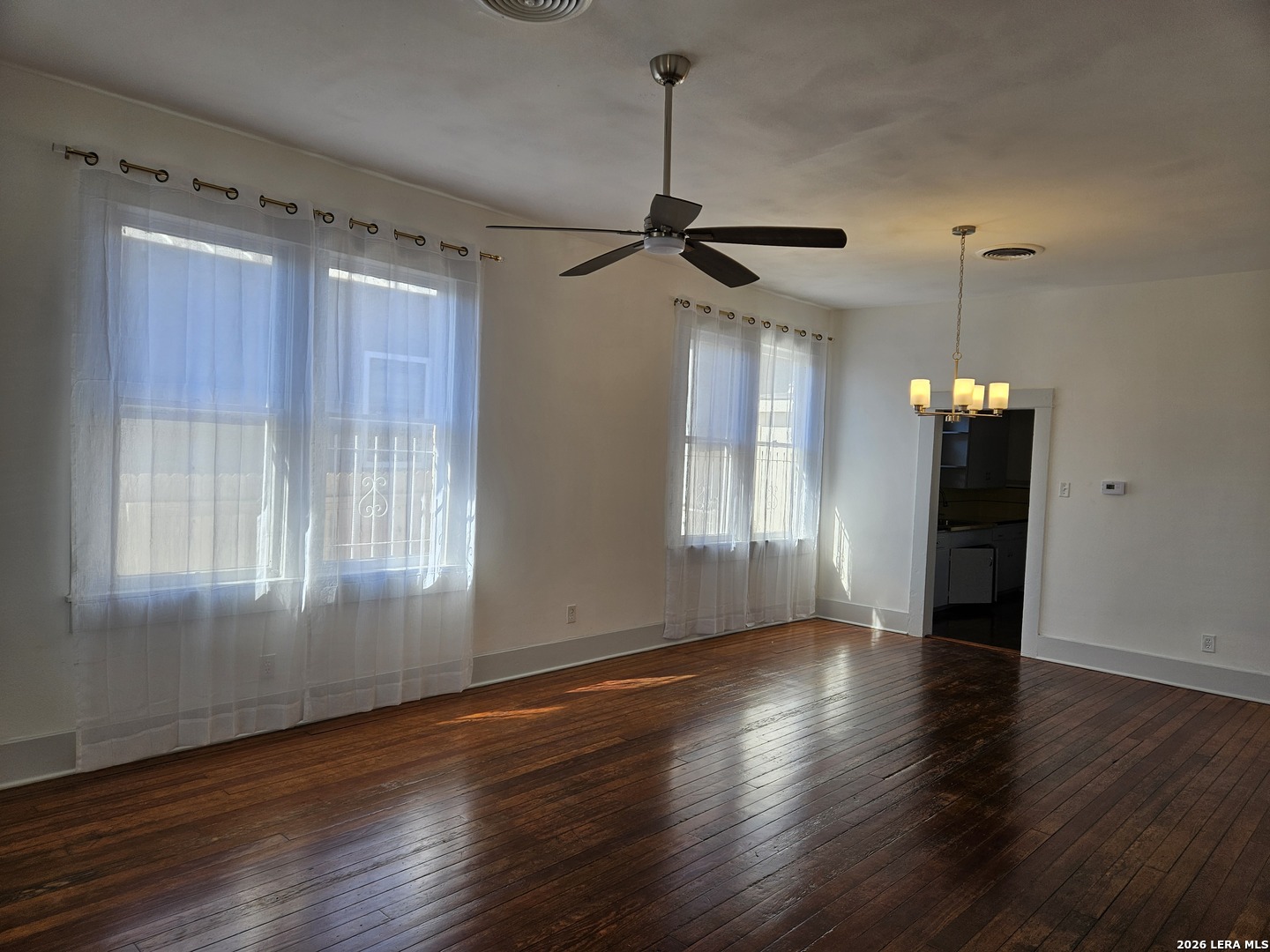 Lovely home has been refreshed and landscaped. Enter into living/dining area with lots of windows, high ceilings and gleaming wood floors. Kitchen has original features with beautiful tile counters and double sink with hardwood cutting board surround. Home features two nice sized bedrooms with connecting bath. Bathroom has a tub/shower combination, single vanity and lots of storage cabinets and linen shelves. There are hardwood floors throughout, a covered front porch and tiered landscaped front yard with easy care crushed granite and rock design. Eastside of downtown San Antonio-the Alamo Dome side.