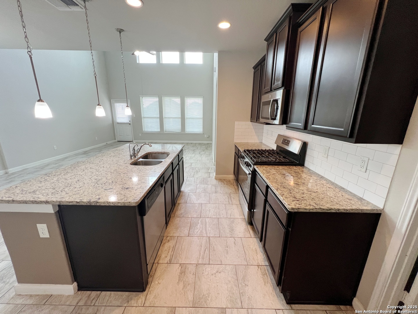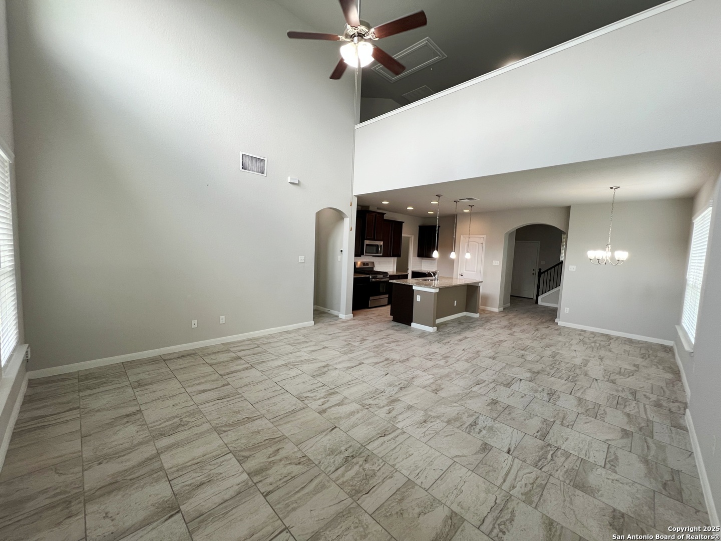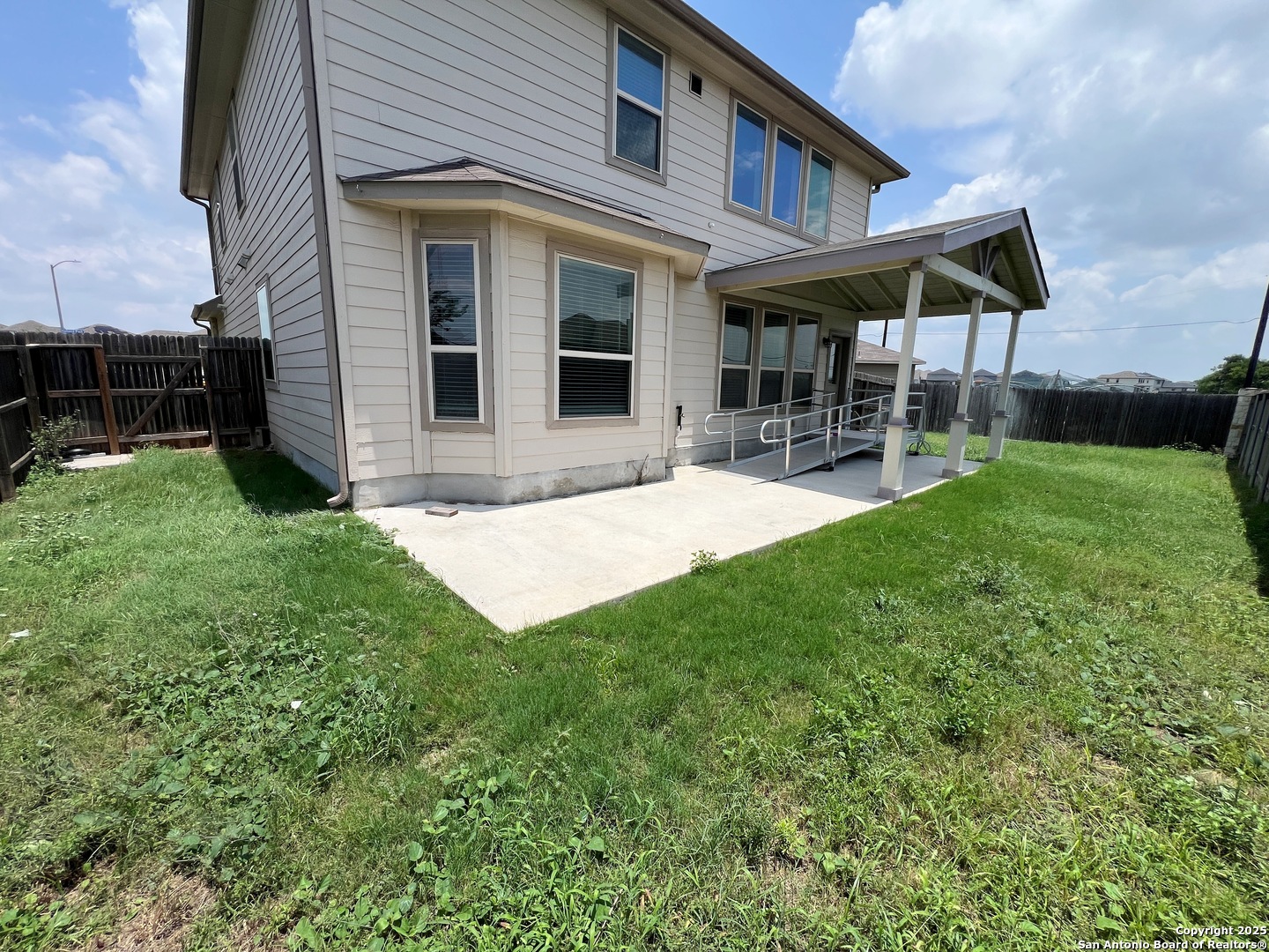 4 Bed, 2.5 Bath 2267 sq ft Home. All Tile floors downstairs with Luxury Vinyl Plank in the Primary Bedroom. Open Kitchen with Granite Counters, Breakfast Bar. Gas Stove, Microwave, Dishwasher. Living/Dining Combo. Living Room with lots of windows, high ceiling. Primary Bedroom downstairs with Bay Window. Primary Bathroom with Wheelchair accessible shower, Dual Sinks, Large closet. Upstairs is a Large Game Room, Full Bath, and 3 additional bedrooms. Fenced yard with Covered Patio and wheelchair ramp. 2 Car Garage with Opener. Community Pool and Park. Close to Randolph AFB, IH-10, Loop 1604, Shopping.