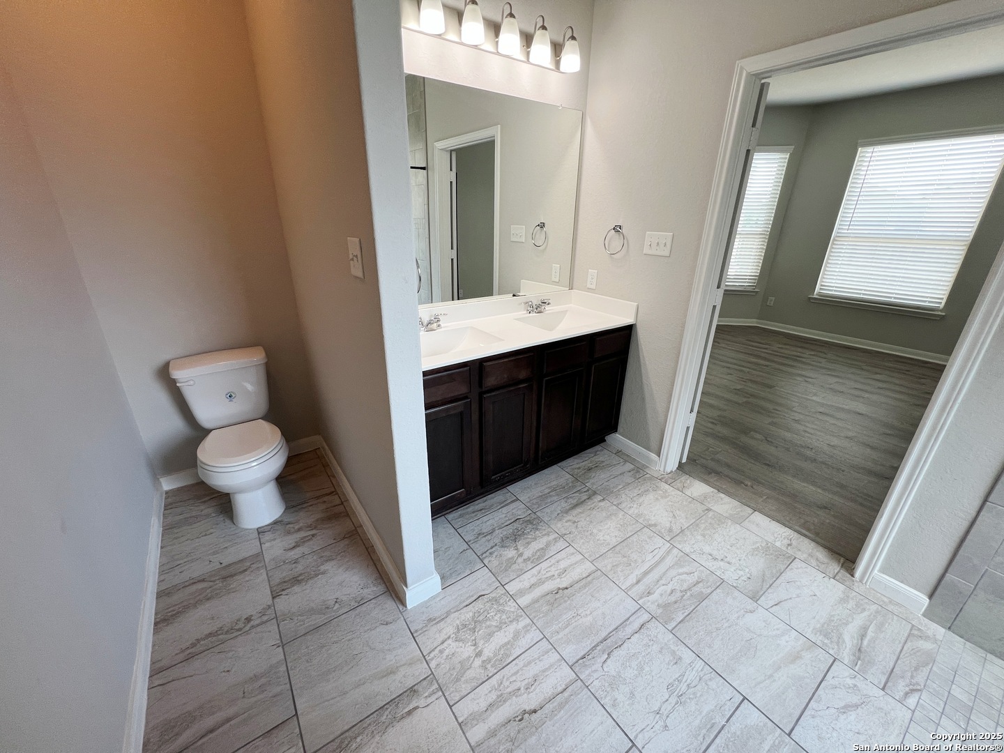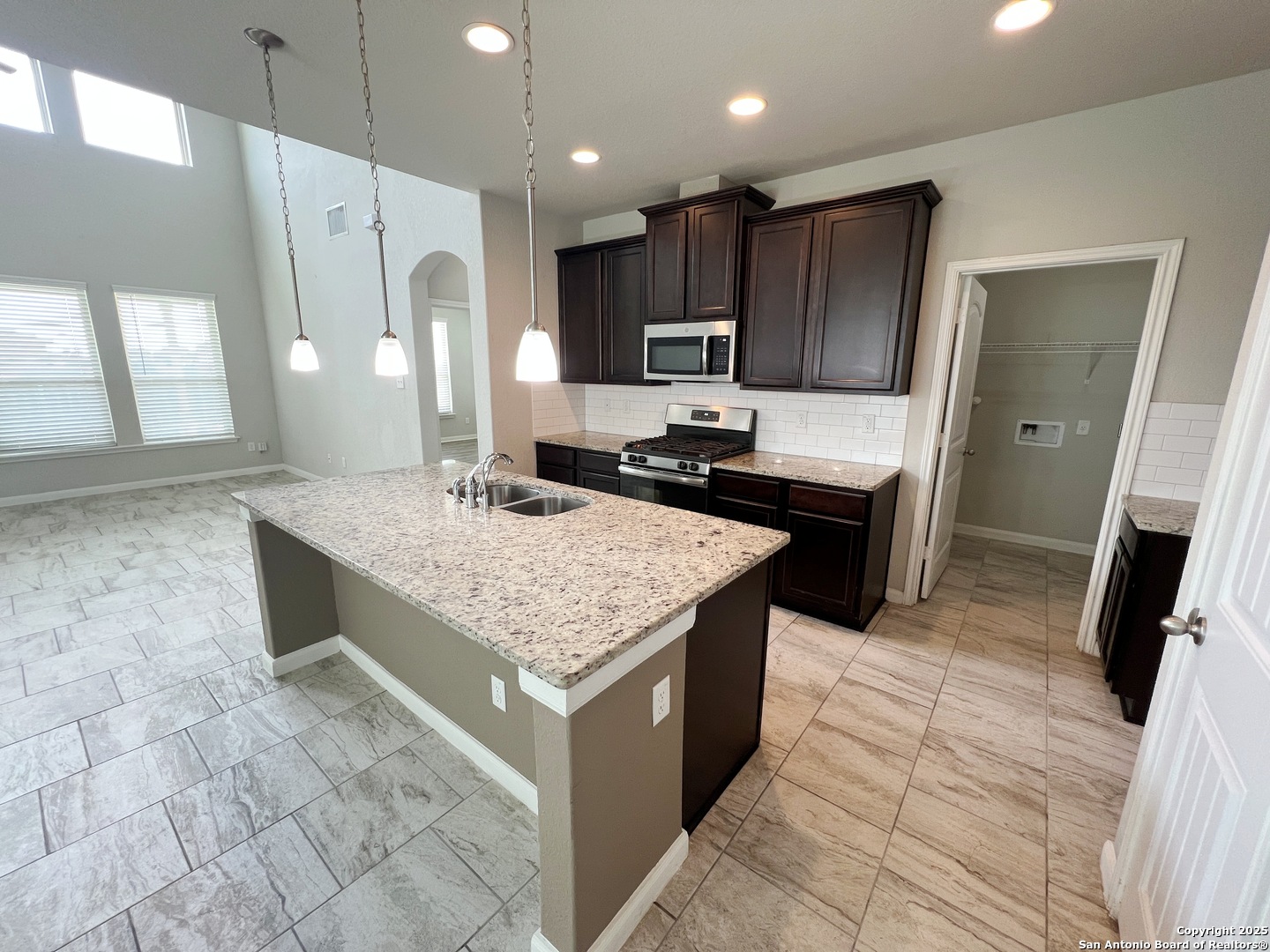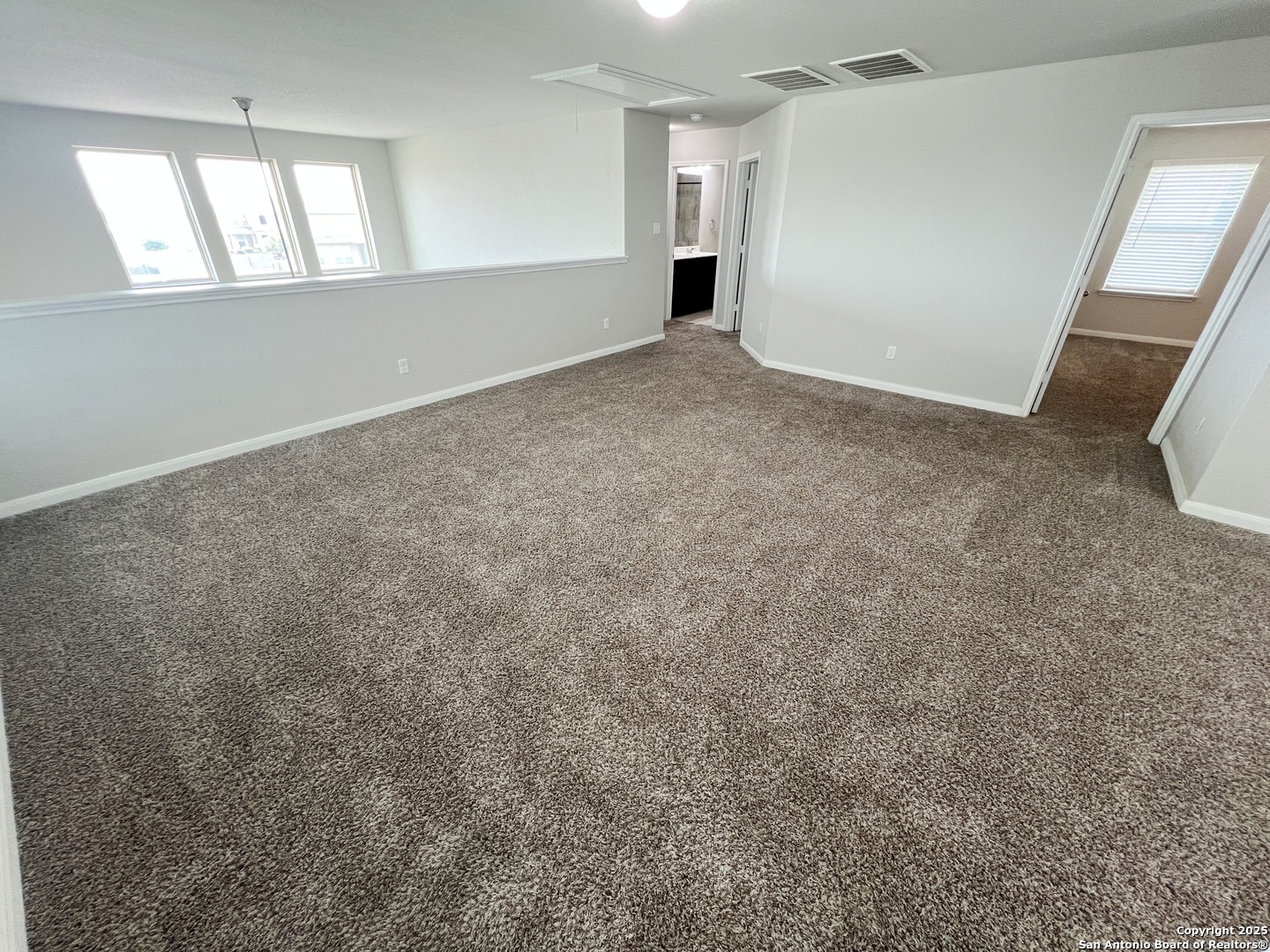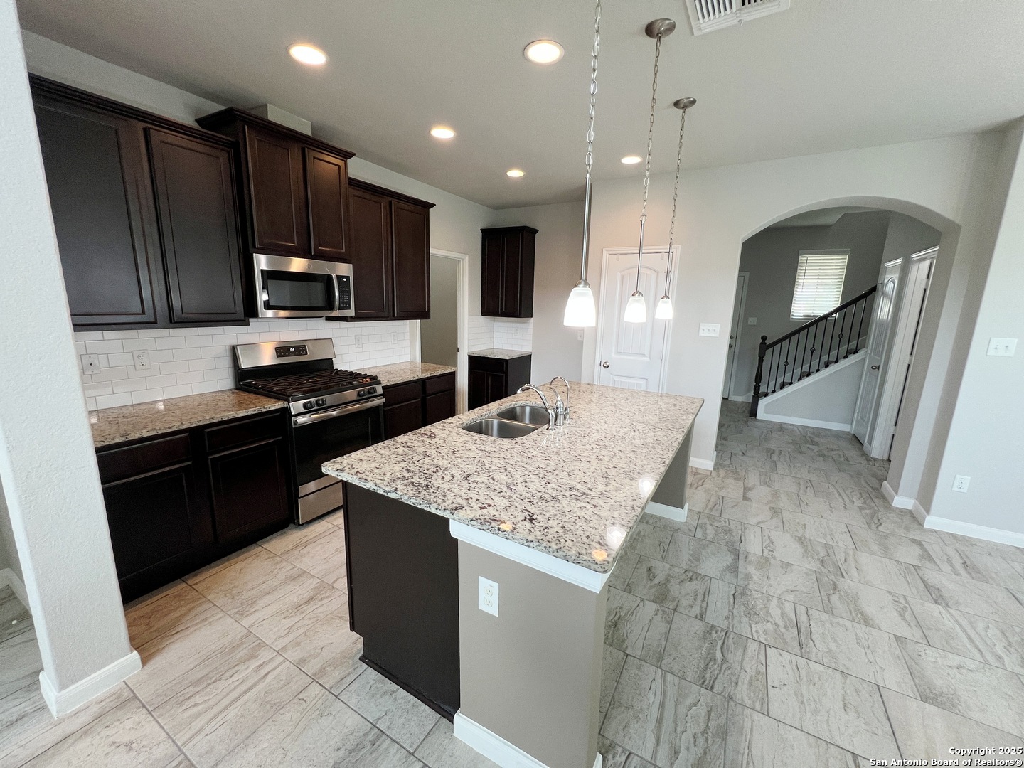 4 Bed, 2.5 Bath 2267 sq ft Home. All Tile floors downstairs with Luxury Vinyl Plank in the Primary Bedroom. Open Kitchen with Granite Counters, Breakfast Bar. Gas Stove, Microwave, Dishwasher. Living/Dining Combo. Living Room with lots of windows, high ceiling. Primary Bedroom downstairs with Bay Window. Primary Bathroom with Wheelchair accessible shower, Dual Sinks, Large closet. Upstairs is a Large Game Room, Full Bath, and 3 additional bedrooms. Fenced yard with Covered Patio and wheelchair ramp. 2 Car Garage with Opener. Community Pool and Park. Close to Randolph AFB, IH-10, Loop 1604, Shopping.