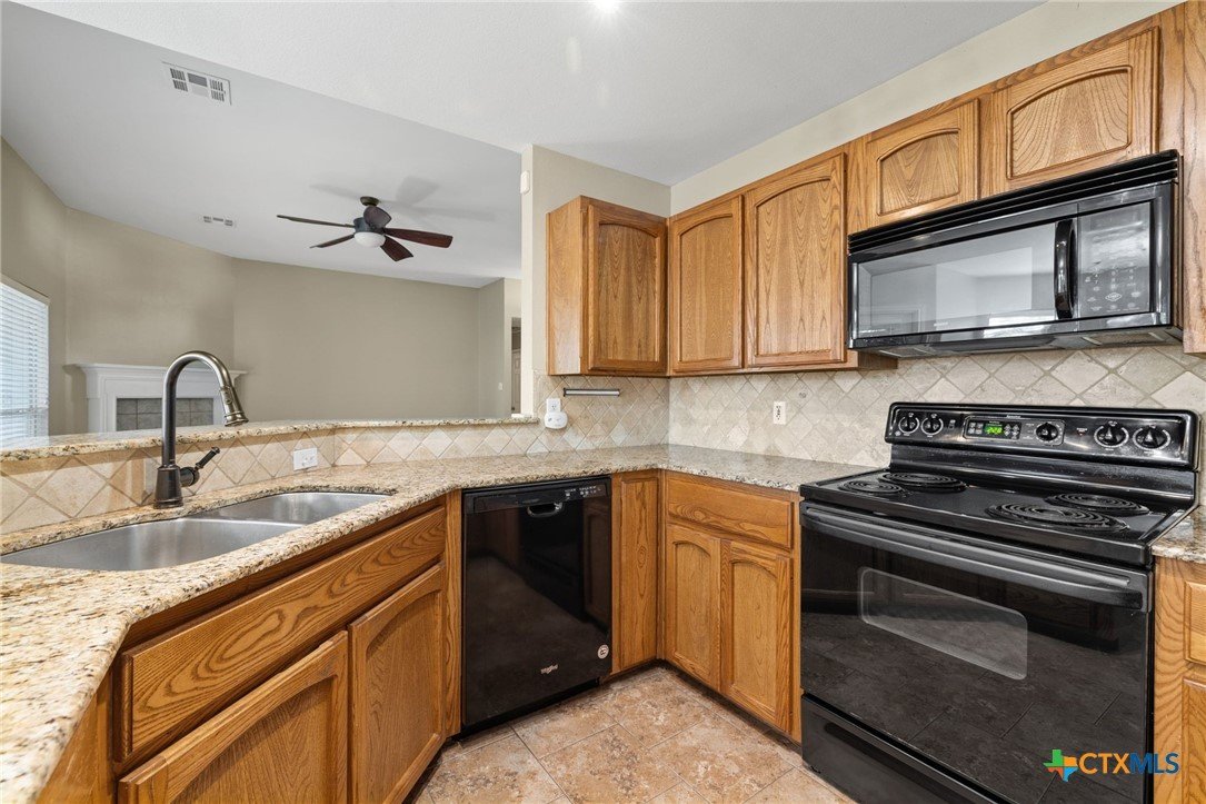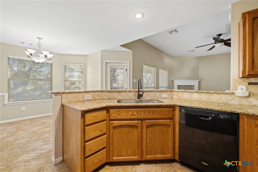 This beautiful move in ready one story home is located in the gated Westwood community. Very open floor plan. Tile throughout. New interior paint. Granite countertops in the kitchen. Ceiling fans in all rooms. Wood burning fireplace in the living room. The primary bedroom has a tub and a separate shower. Spacious covered patio in the back. Lots of mature trees.