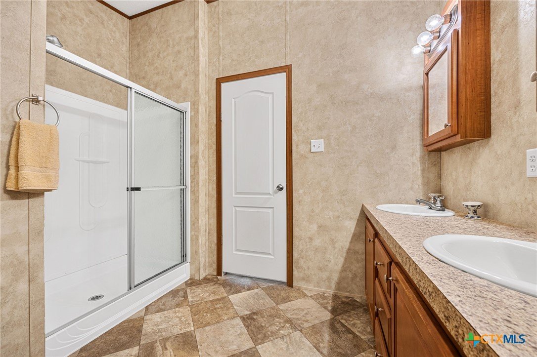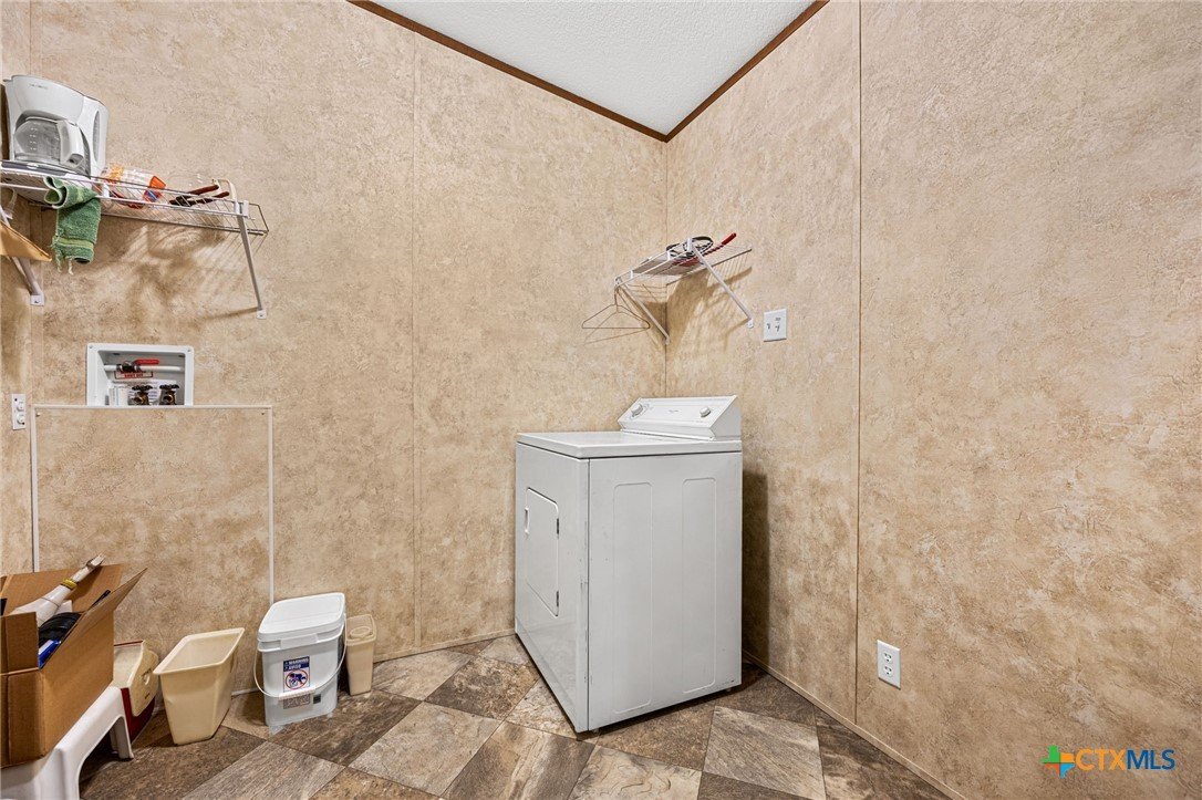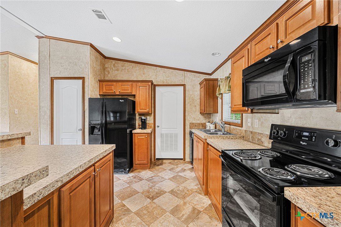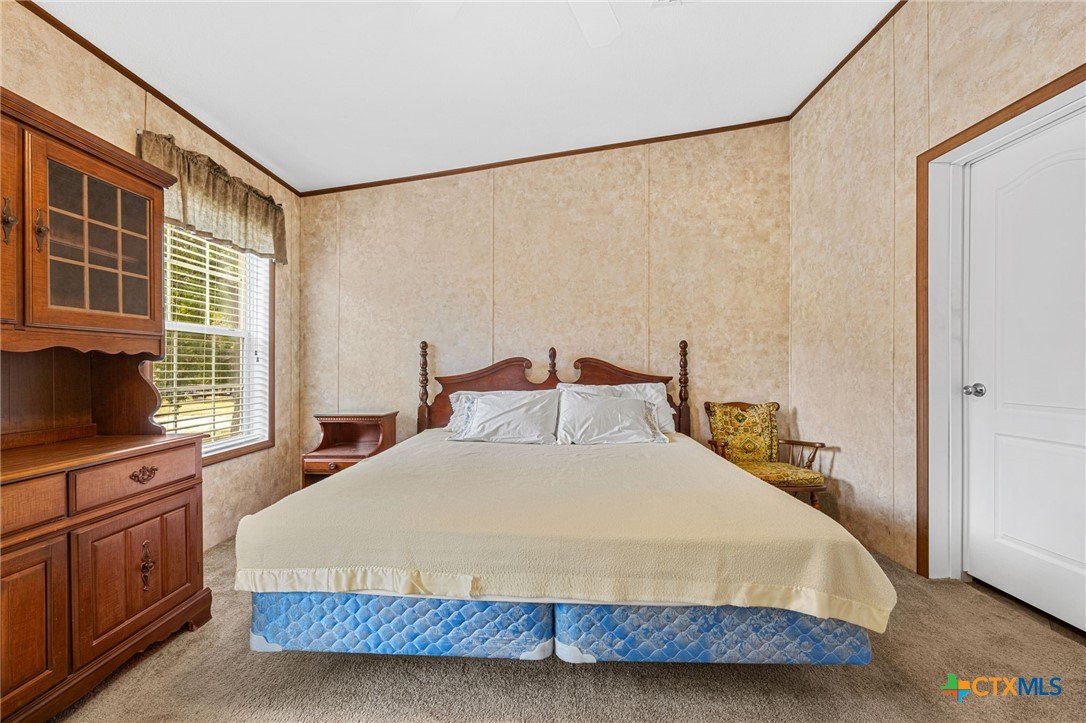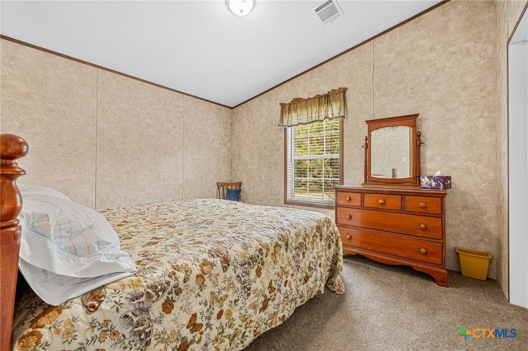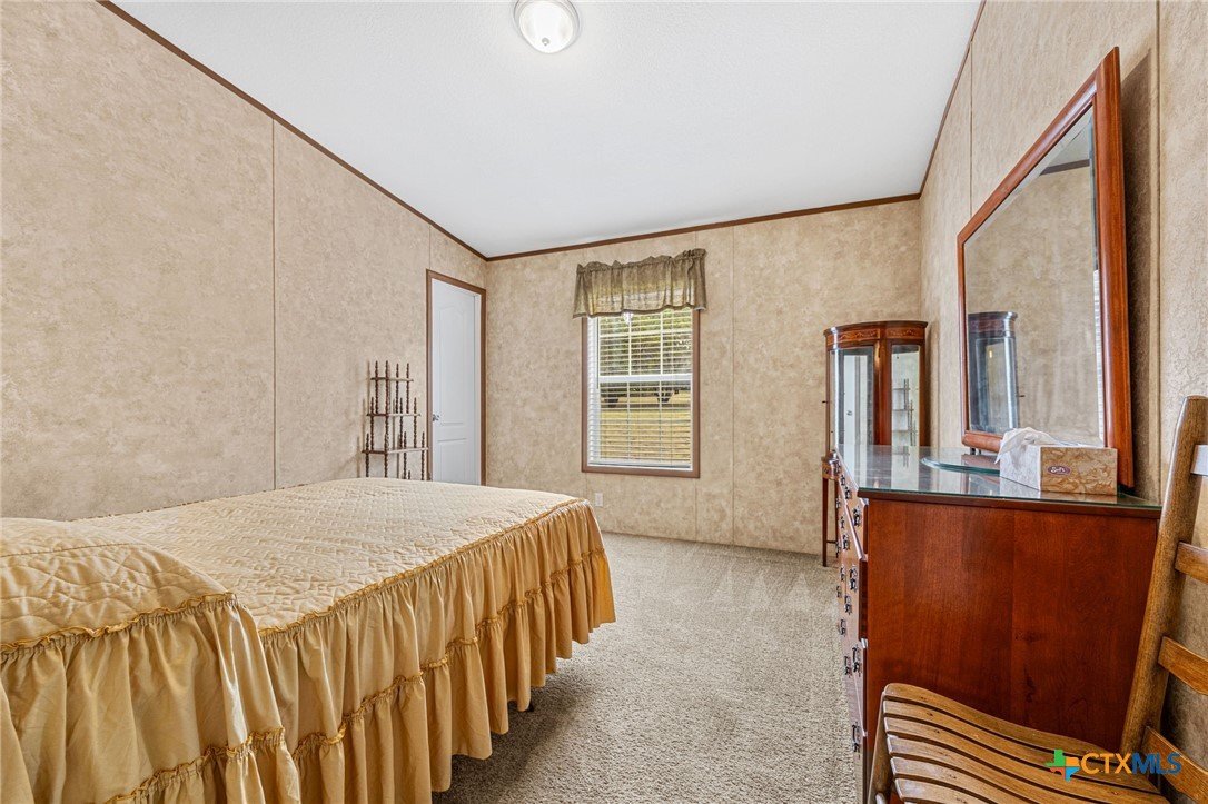 Escape to the peace and privacy of country living on nearly 25 beautifully maintained acres in the Horse Creek Subdivision, located in Coryell County and within the Moody School District. This property offers the perfect blend of space, functionality, and scenic surroundings. The well-kept double wide home features a durable metal roof and Hardiboard exterior, giving it the appearance and feel of a traditional single-family residence. Inside, you’ll find a thoughtfully designed 3-bedroom, 2-bath layout with a split floor plan for added privacy. The kitchen opens seamlessly to the living and dining areas, creating a welcoming, open-concept space ideal for everyday living and entertaining. The kitchen is equipped with a center island with electric outlets, walk-in pantry, dishwasher, built-in microwave, abundant cabinetry, and a window over the sink that offers peaceful views of the land behind the home. The spacious primary suite with walk-in closet includes a private ensuite bath with dual vanities, a separate shower, a large soaking tub, and two mirrored medicine cabinets. Secondary bedrooms are generously sized and located on the opposite side of the home, sharing a bathroom with a single vanity and shower/tub combination. Additional features include a dedicated utility/laundry room just off the kitchen, double-pane windows, and a long, private gravel driveway leading from a gated entrance to the home and barn. Step outside to enjoy the covered wooden deck, perfect for relaxing and taking in the expansive views of the surrounding acreage and mature trees. The property also includes a large metal barn/storage building with double doors and garage door openers, offering excellent space for equipment or hobby needs. With its peaceful setting, wide-open space, and well-maintained improvements, this property is a rare opportunity to enjoy country living at its finest. Call US today for your private tour and Let US Lead YOU Home.