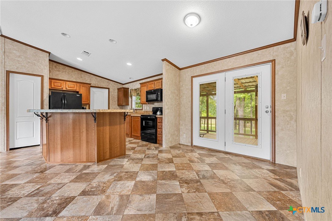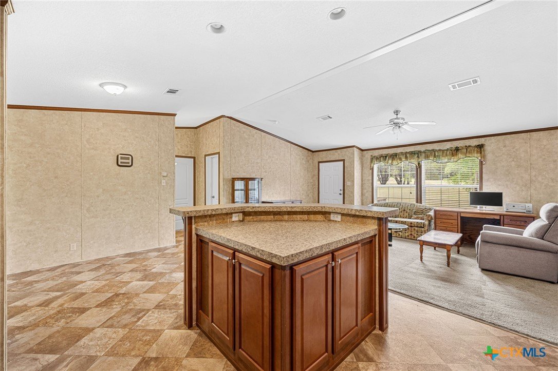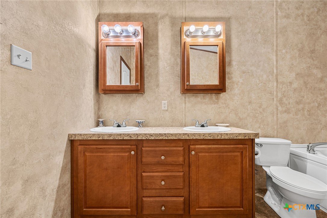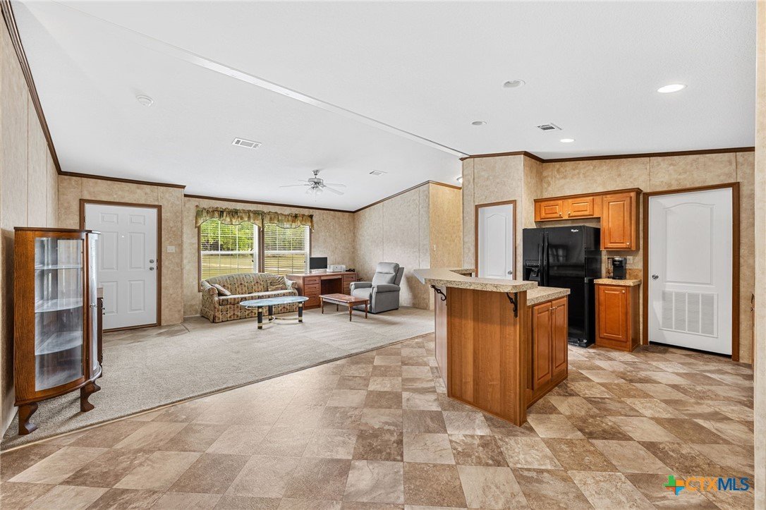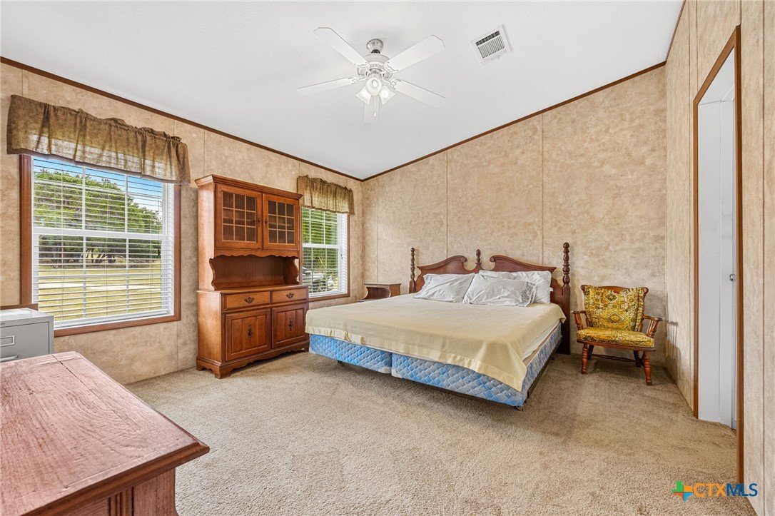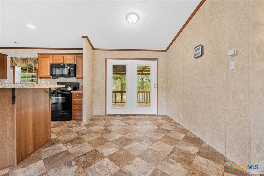 Escape to the peace and privacy of country living on nearly 25 beautifully maintained acres in the Horse Creek Subdivision, located in Coryell County and within the Moody School District. This property offers the perfect blend of space, functionality, and scenic surroundings. The well-kept double wide home features a durable metal roof and Hardiboard exterior, giving it the appearance and feel of a traditional single-family residence. Inside, you’ll find a thoughtfully designed 3-bedroom, 2-bath layout with a split floor plan for added privacy. The kitchen opens seamlessly to the living and dining areas, creating a welcoming, open-concept space ideal for everyday living and entertaining. The kitchen is equipped with a center island with electric outlets, walk-in pantry, dishwasher, built-in microwave, abundant cabinetry, and a window over the sink that offers peaceful views of the land behind the home. The spacious primary suite with walk-in closet includes a private ensuite bath with dual vanities, a separate shower, a large soaking tub, and two mirrored medicine cabinets. Secondary bedrooms are generously sized and located on the opposite side of the home, sharing a bathroom with a single vanity and shower/tub combination. Additional features include a dedicated utility/laundry room just off the kitchen, double-pane windows, and a long, private gravel driveway leading from a gated entrance to the home and barn. Step outside to enjoy the covered wooden deck, perfect for relaxing and taking in the expansive views of the surrounding acreage and mature trees. The property also includes a large metal barn/storage building with double doors and garage door openers, offering excellent space for equipment or hobby needs. With its peaceful setting, wide-open space, and well-maintained improvements, this property is a rare opportunity to enjoy country living at its finest. Call US today for your private tour and Let US Lead YOU Home.