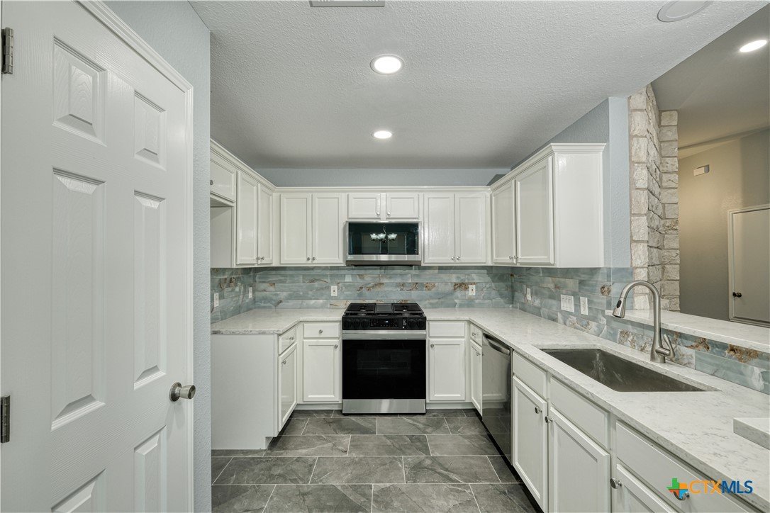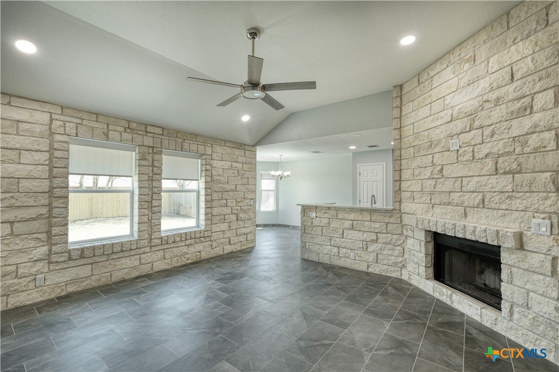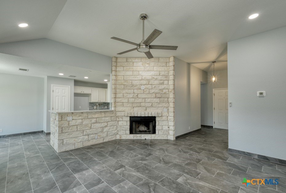 Gorgeous upgraded single-story home in beautifully established Estates North Creek. Open floor plan with high ceilings. Kitchen features recessed lighting, breakfast area, with built in wide sink; beautiful upgraded spacious walk-in showers in both bathrooms; accent lighting that creates a bright and inviting atmosphere throughout; updated limestone wall surrounding a cozy fireplace for gatherings with friends and family. Easy access to HWY 183, parks, nearby shopping, dining and entertainment options. Highly rated school district in Leander ISD. This is a must see! Make your appointment today. Welcome home!