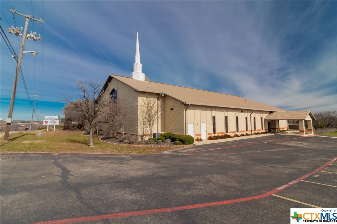 Once in a lifetime property is available today! 5 buildings on approximately 4.611 acres centrally located in Killeen on a double corner lot giving ingress and egress from 3 public roadways, Trimmier Rd, Oakhill Dr. and Sutton Dr. Building 1, main sanctuary and church offices, built in 1994 is equipped on the exterior with brick veneer, a metal roof with gutters, and stained glass windows. Inside you will find 2 restrooms with tiled walls and motion detected lighting, a sanctuary with overflow room, 5 offices and storage room galore. Total square footage of this building is 10,493 which includes an 84 sq. ft. viewing room upstairs. A covered breezeway leads you from building 1 to building 2. Building 2 was constructed in two phases, the first phase being the original one story church building built in 1959 and the second two story addition was completed in 1979. This building offers 8 restrooms, a large classroom with dividers, 12 more classrooms and storage/mechanical closets. A large open room provides a small stage, sound booth and gives access to a full kitchen. Many more amenities are found in this 11,625 sq. ft. building. Building 3 is complete with a gymnasium, dining hall, commercial kitchen, classrooms and 4 restrooms. This building is constructed with brick veneer and insulated pre-engineered metal siding and roofing. The gymnasium offers rubber flooring on the full basketball court and two 10' built in basketball goals, a score board, speaker/sound system, projection system and office/supply room. This building spans 17, 181 sq. ft. Building 4 is a non-insulted pre-engineered metal storage warehouse on concrete and is equipped with gutters and is 915 sq. ft. This property has too many amenities to mention all here. Make your appointment to see it today.