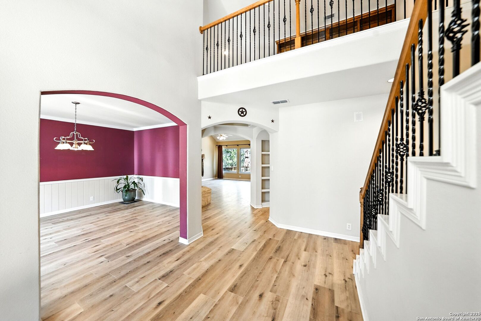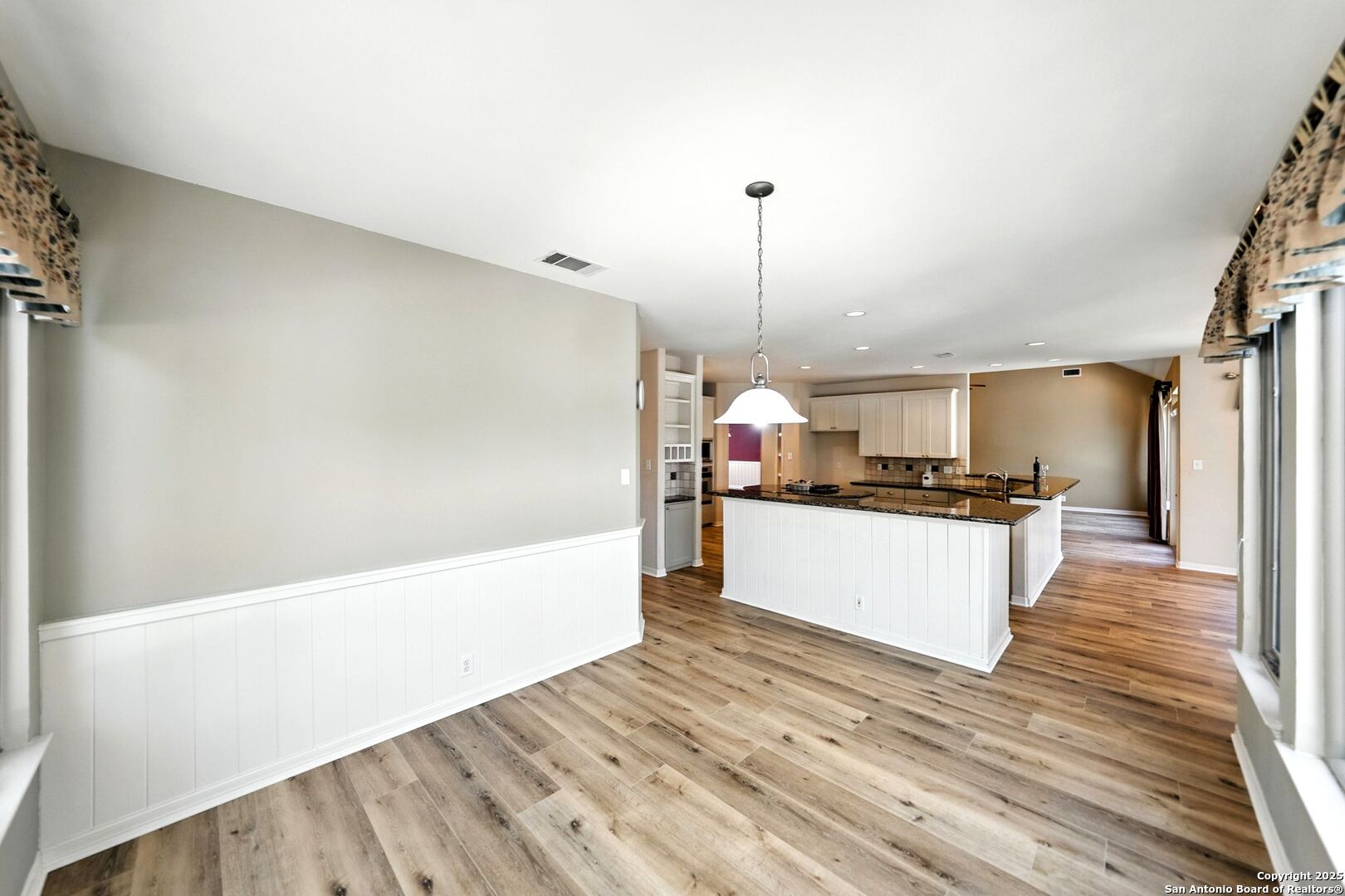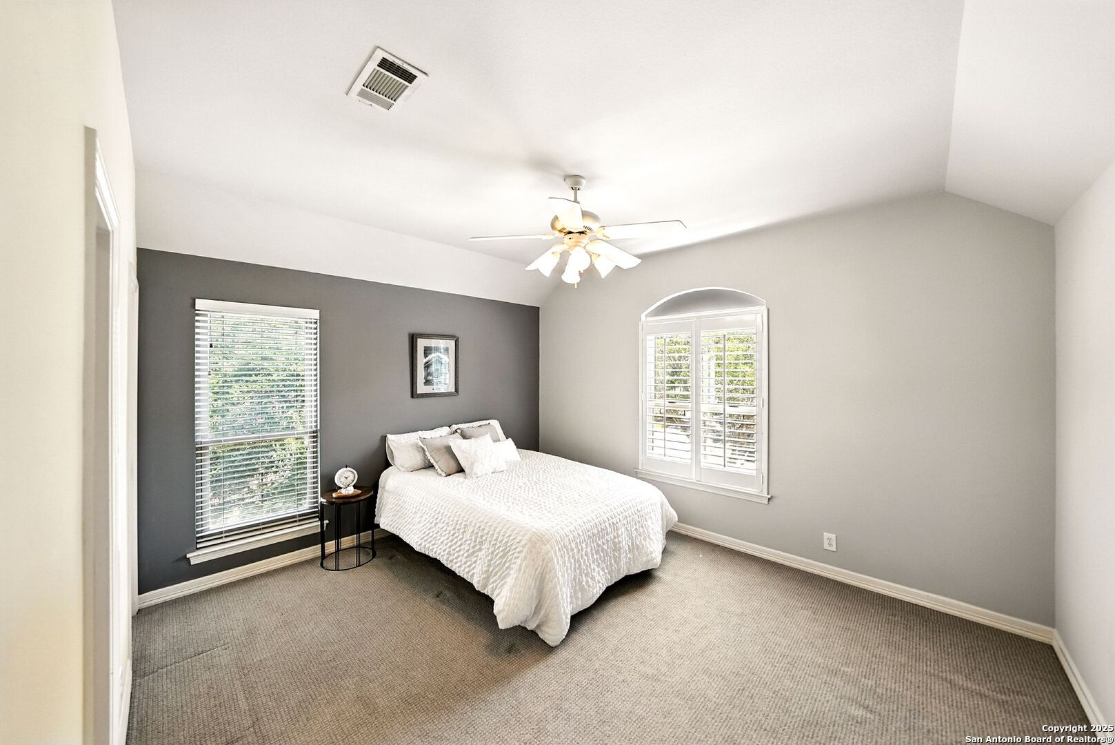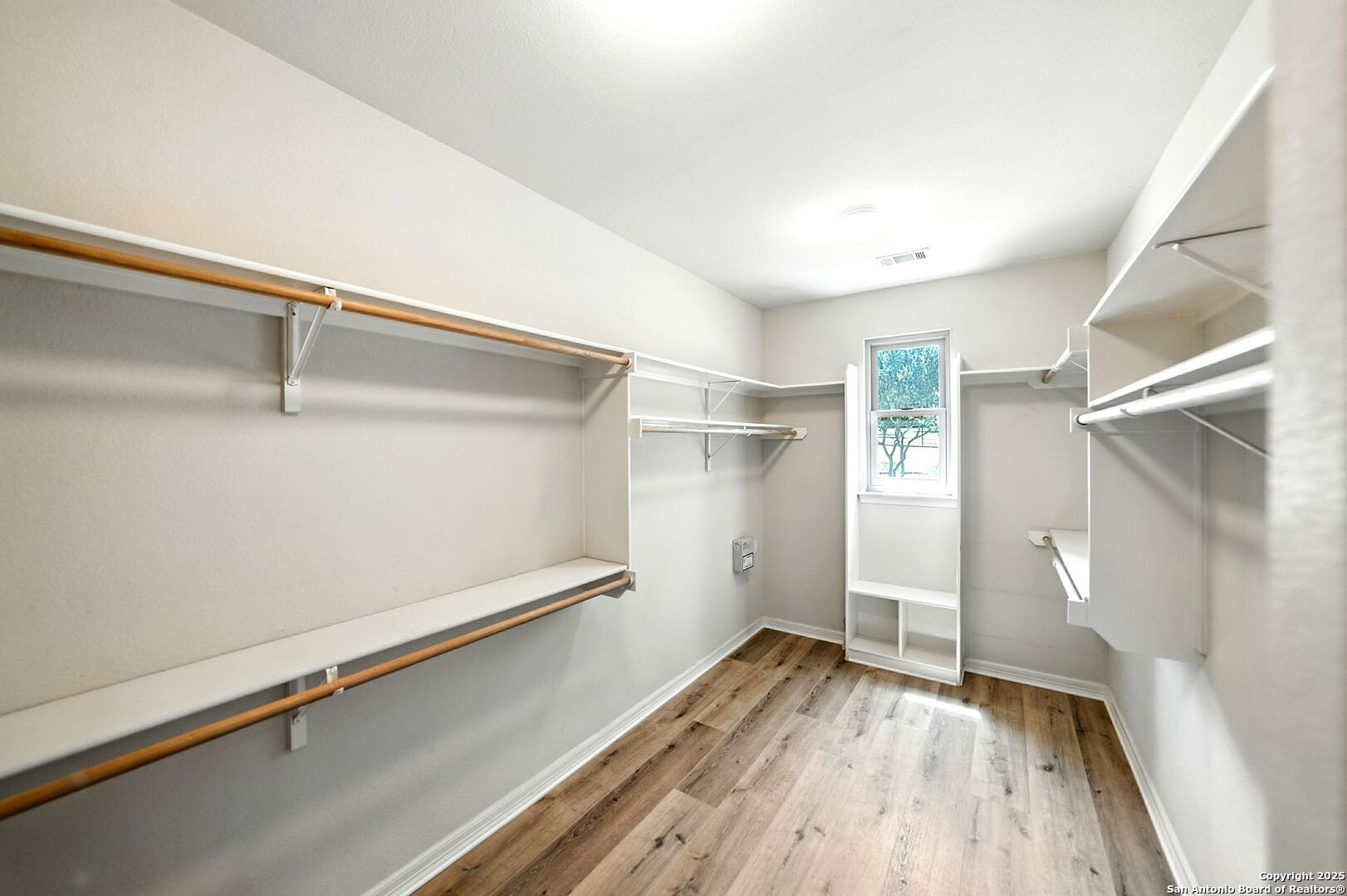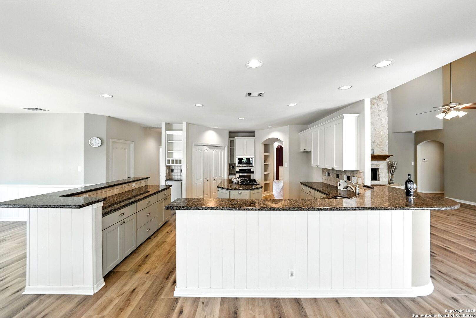 WOW! OPEN HOUSE SUN 11-4. BACK ON MARKET AFTER RENOVATION WITH NEW LUXURY FLOORING WITH NEWER ANDERSON WINDOWS. COME AND SEE AMAZING NEW LUXURY WOOD PLANK FLOORING THROUGHOUT DOWNSTAIRS! STUNNING & TIMELESS! Beautifully updated 4BD/4BA custom home with 3-car garage on a gated .75-acre lot in coveted Georg Ranch. Newly installed luxury vinyl wood planking throughout the downstairs living areas adds a timeless modern Texas Hill Country Style plus durability that is perfect for gatherings and entertaining. Multiple living areas include an open great room floor plan featuring soaring ceilings, floor-to-ceiling stone fireplace, and new Anderson floor to ceiling windows showcasing the beauty of your outdoor deck and the majestic oaks in your private countryside backyard. Chef's kitchen boasts granite counters, custom cabinetry with drawer and pullouts, endless counterspace, large pantry, gas range, and island for gathering. Step into your Spa-like owner's suite offering a coffee bar and amazing views of your mature oaks; And there is a guest ensuite downstairs plus two guest ensuites upstairs, plus an office/media room that could be a 5th bedroom. Lots of storage and walk-in closets in all bedrooms. The oversized garage with workshop provide flexibility & parking for RV/Boat on long driveway, plus ample front parking for guests. And enjoy the private Georg Ranch community park, playground, and sports courts. Minutes to San Antonio, airport, HEB, dining, lakes, wineries and all the Hill Country attractions as well as military bases. Easy Texas Hill Country living is found here today in Georg Ranch in this stunning custom home.