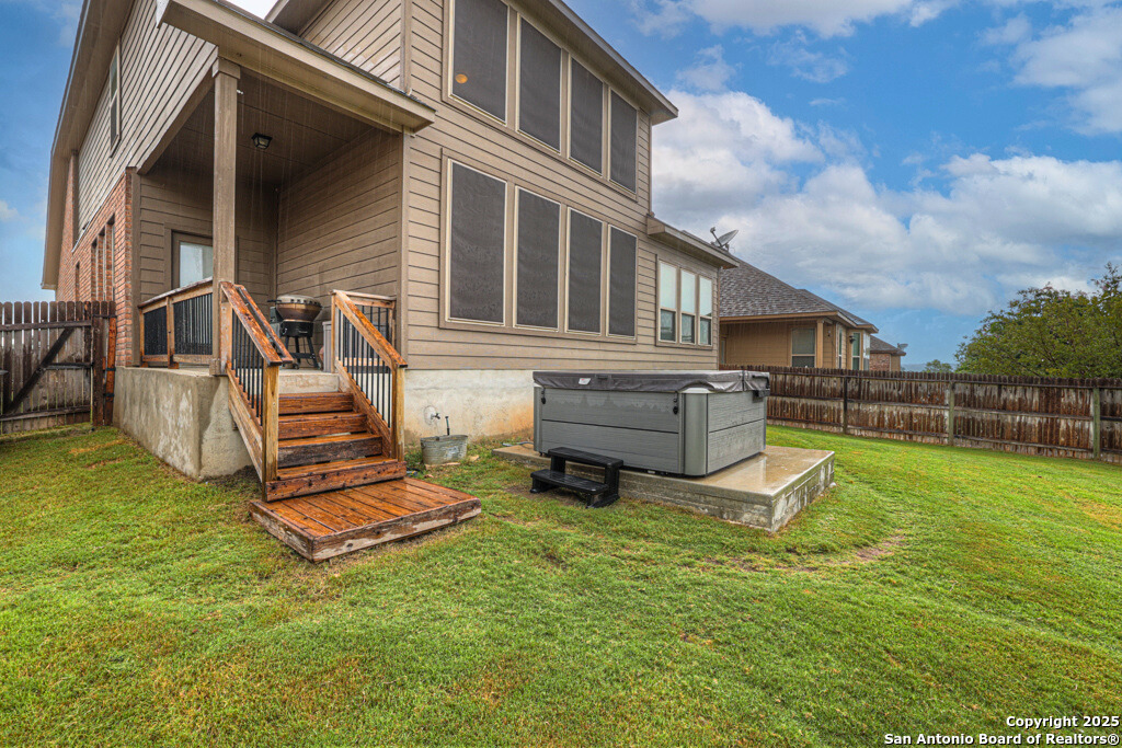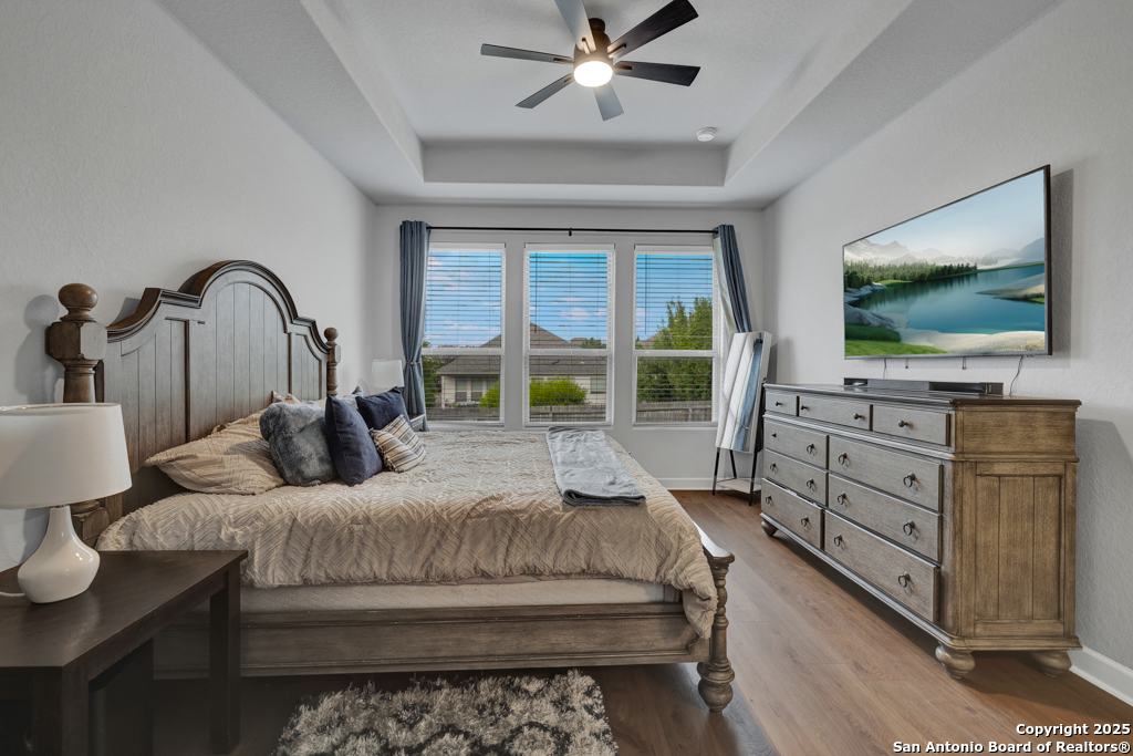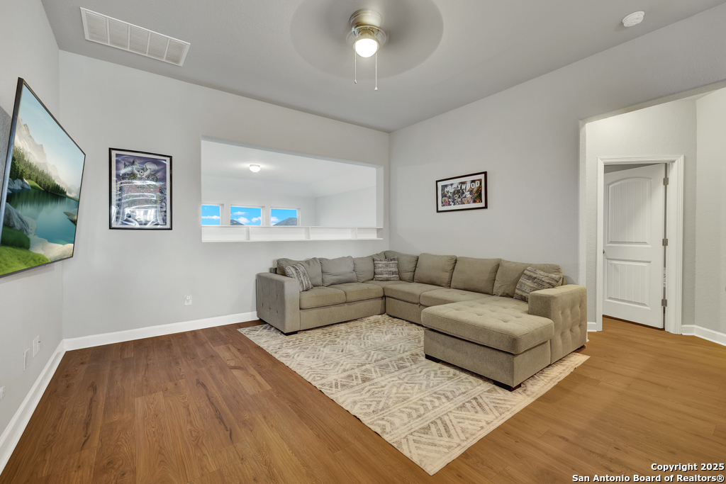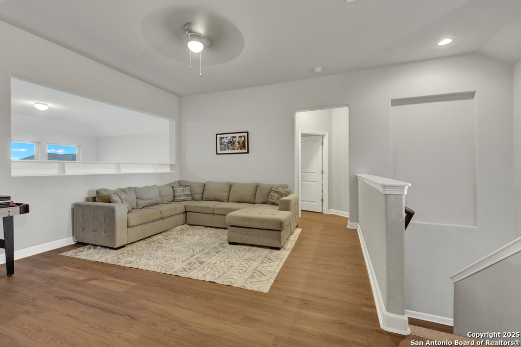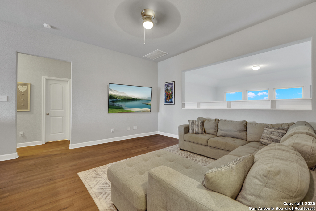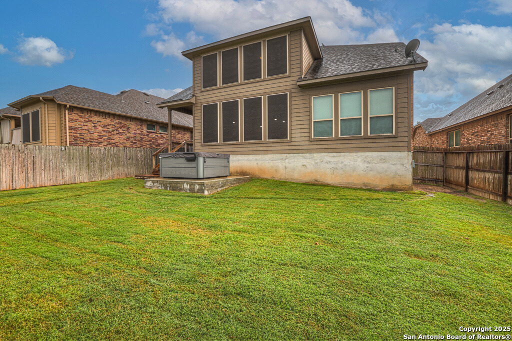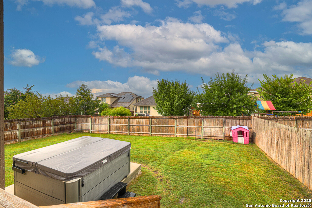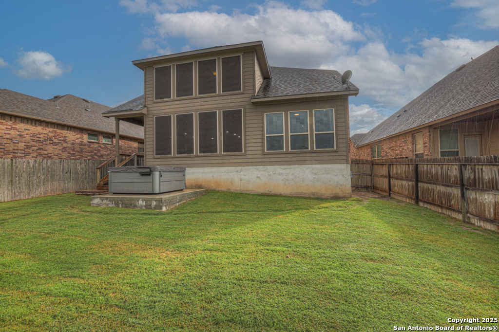Family Home in Highland Grove This well-maintained two-story home in Highland Grove offers a smart layout, plenty of space, and a warm, family-friendly neighborhood with top-notch amenities. Step inside to find an open floor plan with soaring ceilings and a wall of windows that flood the main living area with natural light. The kitchen opens to the living and dining areas, perfect for gatherings and day-to-day living. The primary bedroom with en-suite bath is located on the main floor, offering privacy and easy access. Upstairs, you'll find a second living room/game room and three additional bedrooms, giving everyone their own space. Recessed lighting and clean finishes keep things bright, and the tray ceiling in the primary suite adds a subtle touch of character. The private backyard is spacious, ideal for playtime, pets, or weekend BBQs. Plus Highland Grove residents enjoy access to a community pool, jogging trail, and playscape, making it a great spot for families. Located near great schools, shopping, and restaurants, and just 1.5 miles from I-35, this home keeps you connected. You're only 20-30 minutes from downtown San Antonio and the airport, 20 miles to San Marcos, and 21 miles to Canyon Lake. If you're looking for space, convenience, and a neighborhood that feels tucked away without being out of reach-this is it.