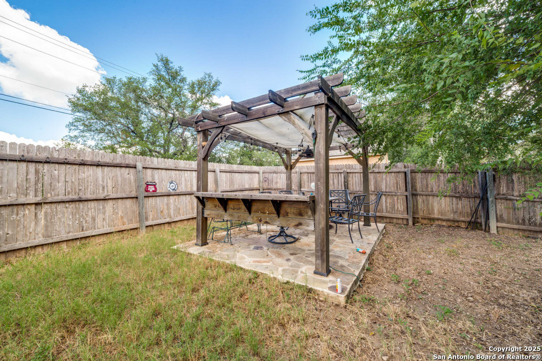 VA assumable loan available! Incredible opportunity to assume an existing low-rate VA loan and save thousands over the life of the mortgage. Buyer must qualify with lender approval.***This 3-bedroom, 2-bath Bella Vista home offers an open floor plan with spacious living and a modern kitchen. The primary suite features a private bath and walk-in closet. Extras include custom garage storage, built-in bunk beds with desks, and a backyard oasis with Tiki bar. !!!!! Pergola with slab and outdoor furniture included! Close to shopping, dining, Lackland AFB, and major highways.