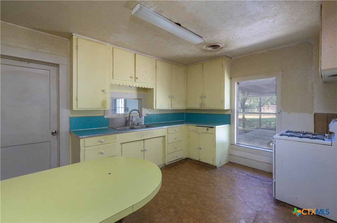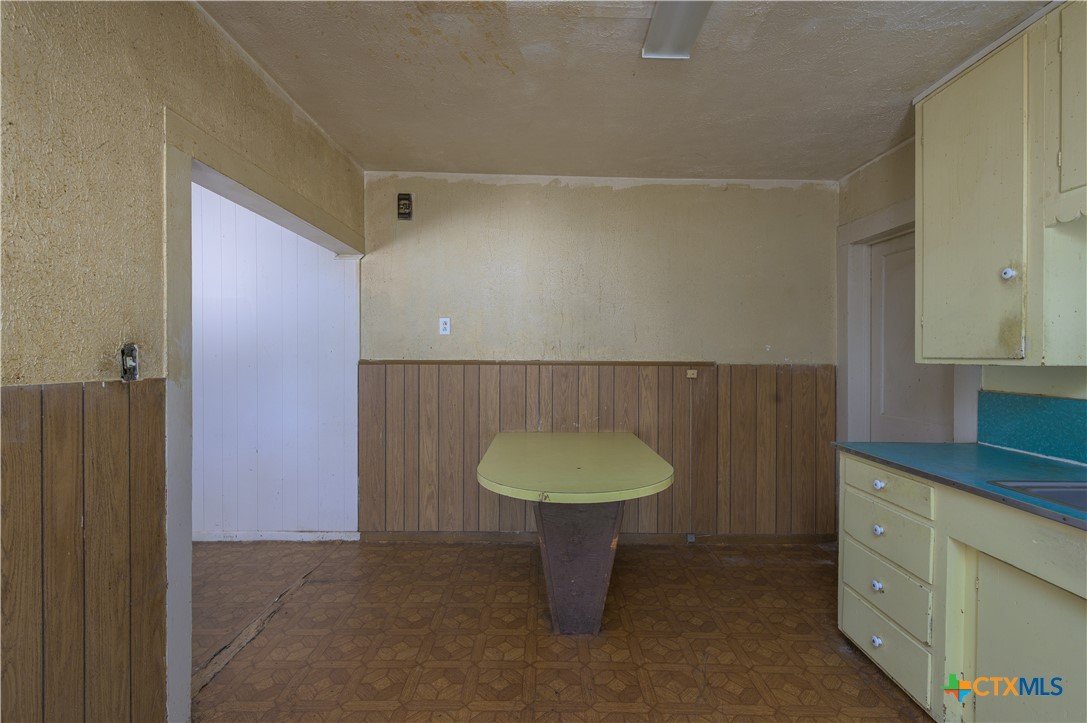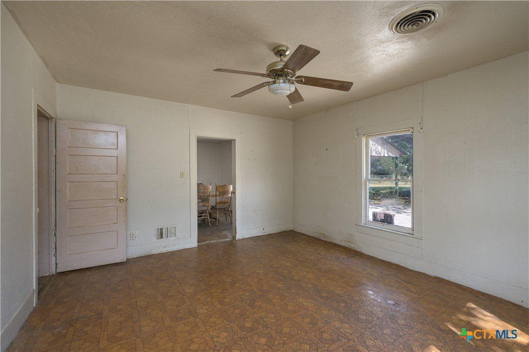 Charming Fixer-Upper in a Prime Lampasas Location -- This charming wood-frame home offers a welcoming covered front patio, perfect for enjoying the shade of beautiful mature trees. Inside, you will find a spacious living room, dining room, and a kitchen with a breakfast bar. The home features 3 bedrooms, 1 full bath, and a utility room with washer/dryer hookups and storage cabinets. Step out back to a nice-size deck and two-bay carport, with the property backing directly to Turner Field. Built on a pier-and-beam foundation, this home includes central air and heat and is ready for your personal touch. Conveniently located within walking distance to Hanna Springs Elementary. Just minutes from US Hwy 183/190/281 and FM 580E. Being sold AS-IS — an excellent investment or renovation opportunity in a sought-after neighborhood.