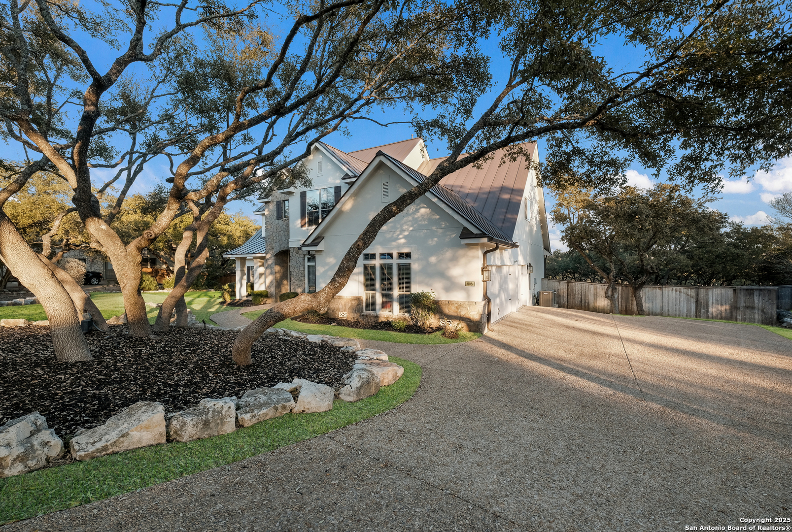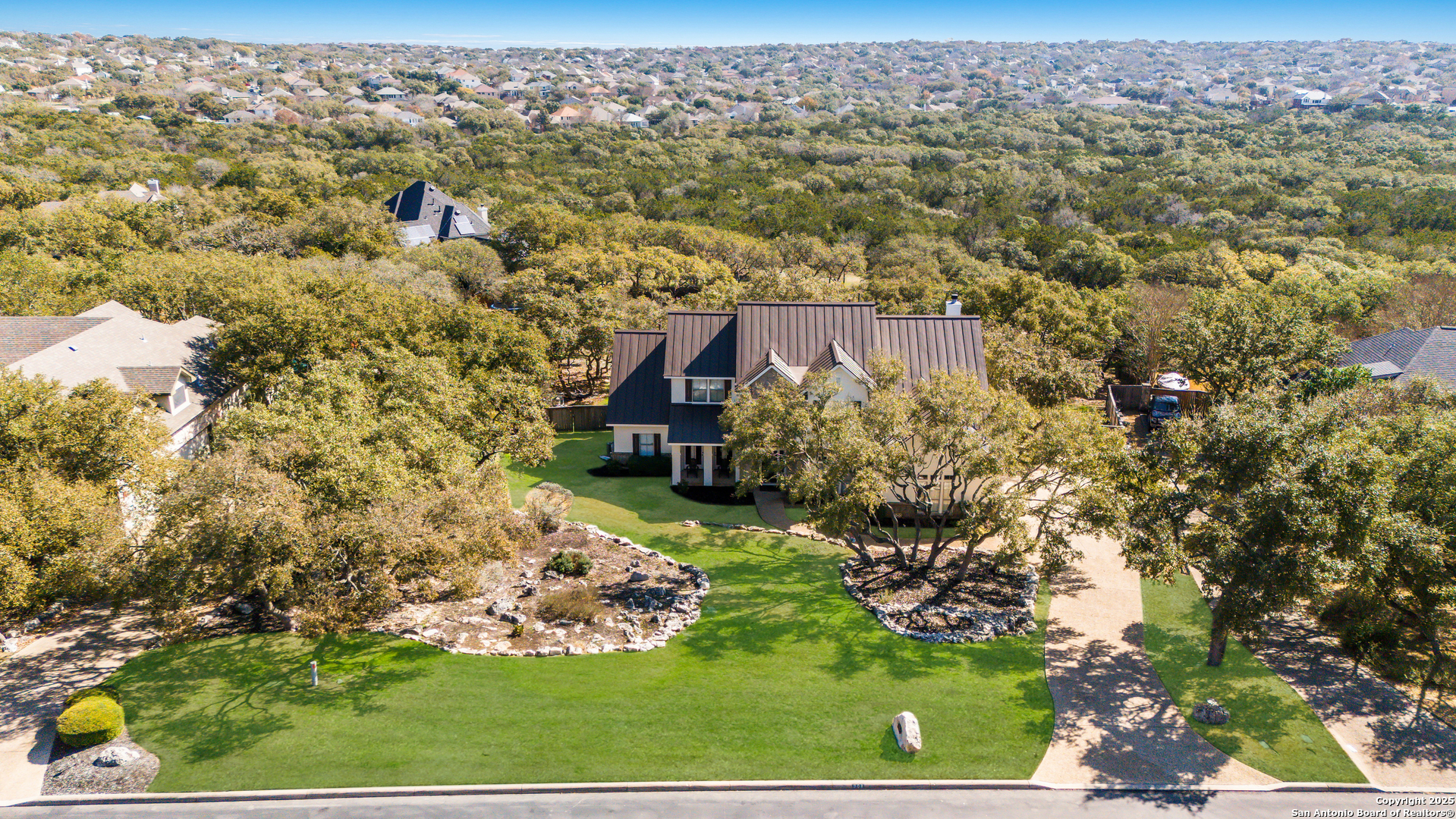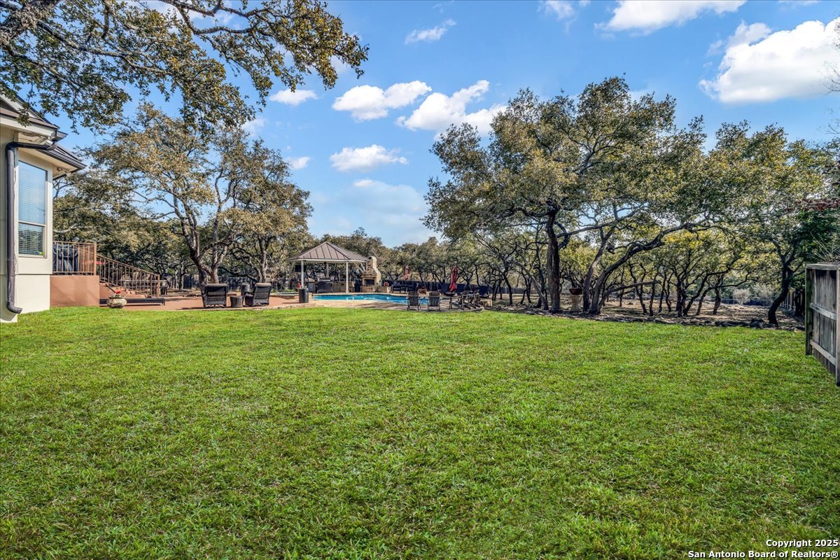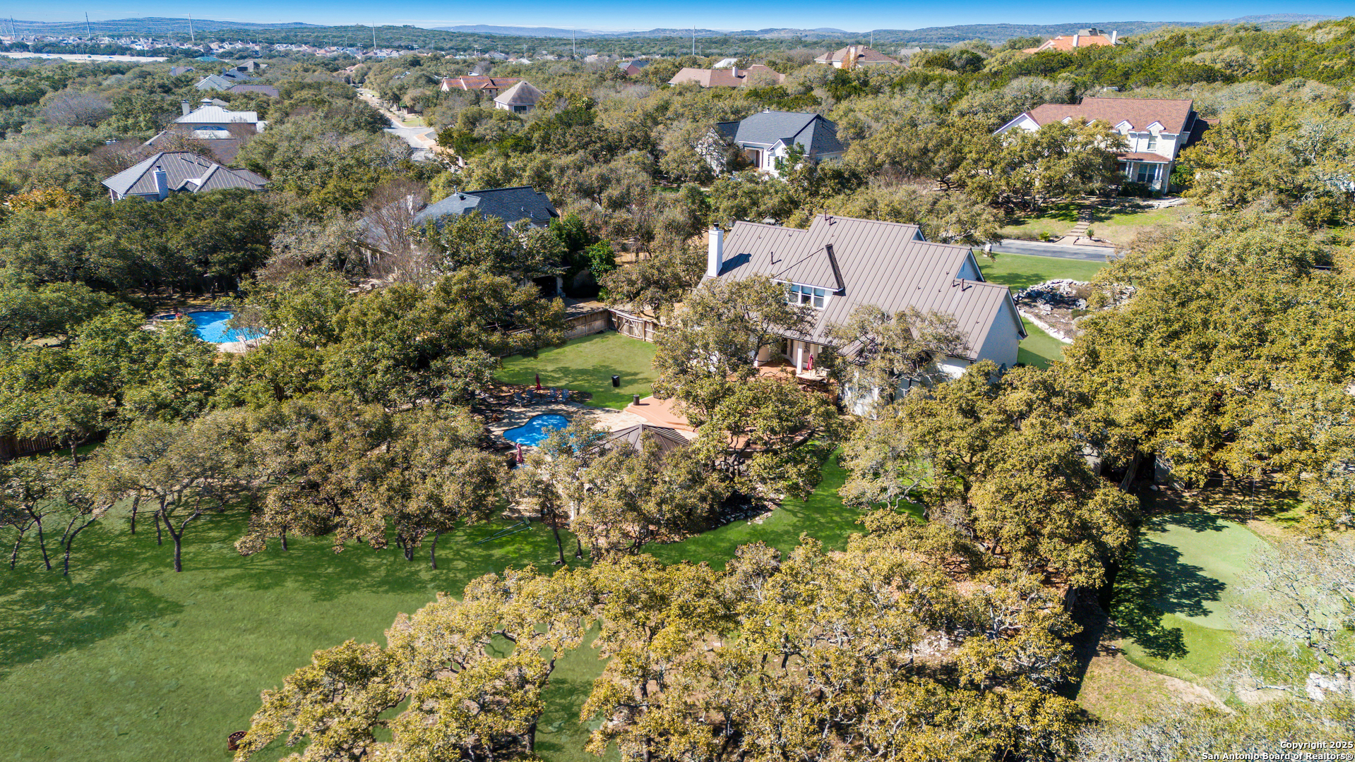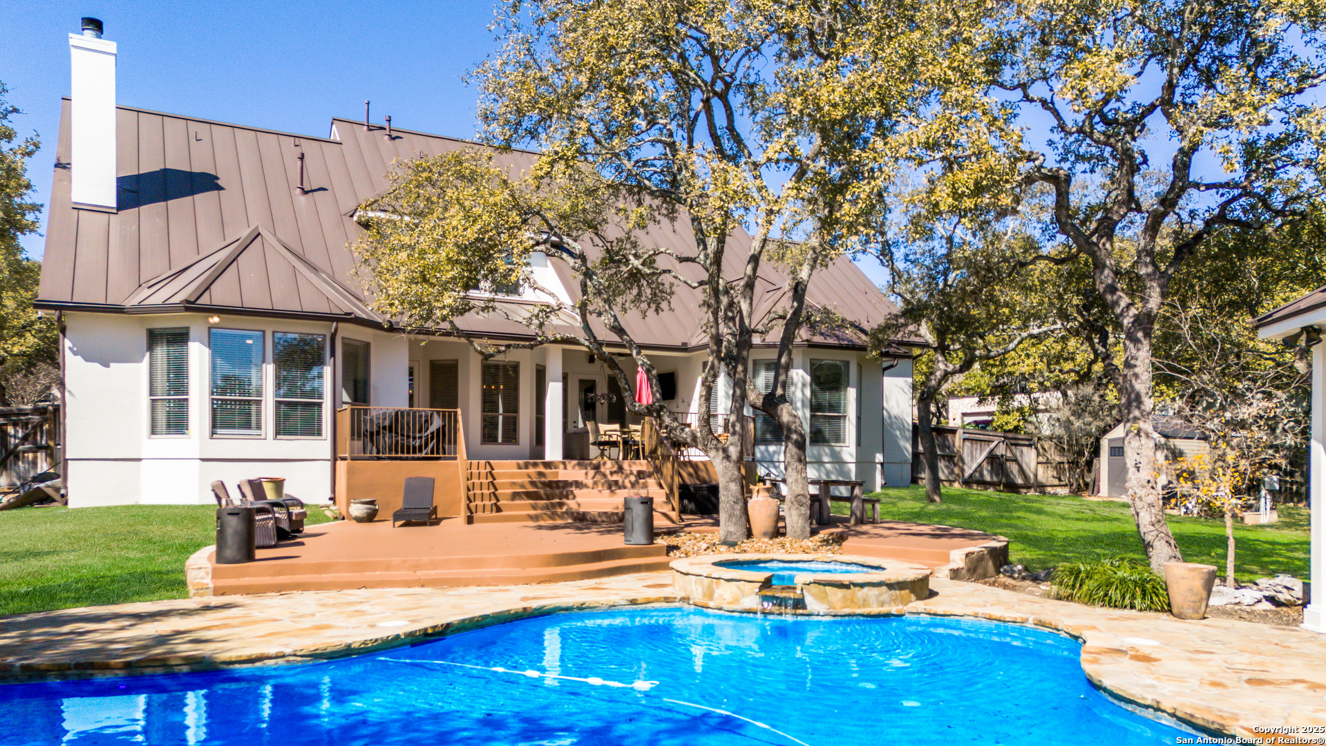 Discover your private hill country retreat set on 1.14 acres right in the heart of Stone Oak! This stunning home offers resort style living with all the conveniences of city life. Step outside to your personal oasis featuring a sparkling pool with an adjoining spa, perfect for relaxing or entertaining. Enjoy summer gatherings under the covered gazebo adjacent to the outdoor kitchen, or unwind on the expansive covered patio and freshly stained concrete patio-ideal for al fresco dining and enjoying those warm San Antonio evenings. Inside, the home boasts 4 spacious bedrooms, 3.5 modern bathrooms, a dedicated study, and a fun gameroom. The fully upgraded kitchen is a chef's dream, featuring high end cabinets, premium appliances with double ovens, gas cooking, a generous island, and a walk-in pantry. Elegant wood and tile flooring flow seamlessly throughout, ensuring a chic, low-maintenance lifestyle-no carpet in sight! The primary bedroom is conveniently located on the main level and offers private access to the outdoor patio and pool. It's a luxurious haven complete with a huge walk-in closet, a spa-like ensuite featuring a separate shower, and a relaxing garden tub. Additional highlights include a durable metal roof, fresh exterior paint, an oversized laundry room with sink and cabinets, and a spacious 3-car garage. Zoned to top-rated NEISD schools, this exceptional home perfectly blends the tranquility of hill country living with modern amenities and convenience.