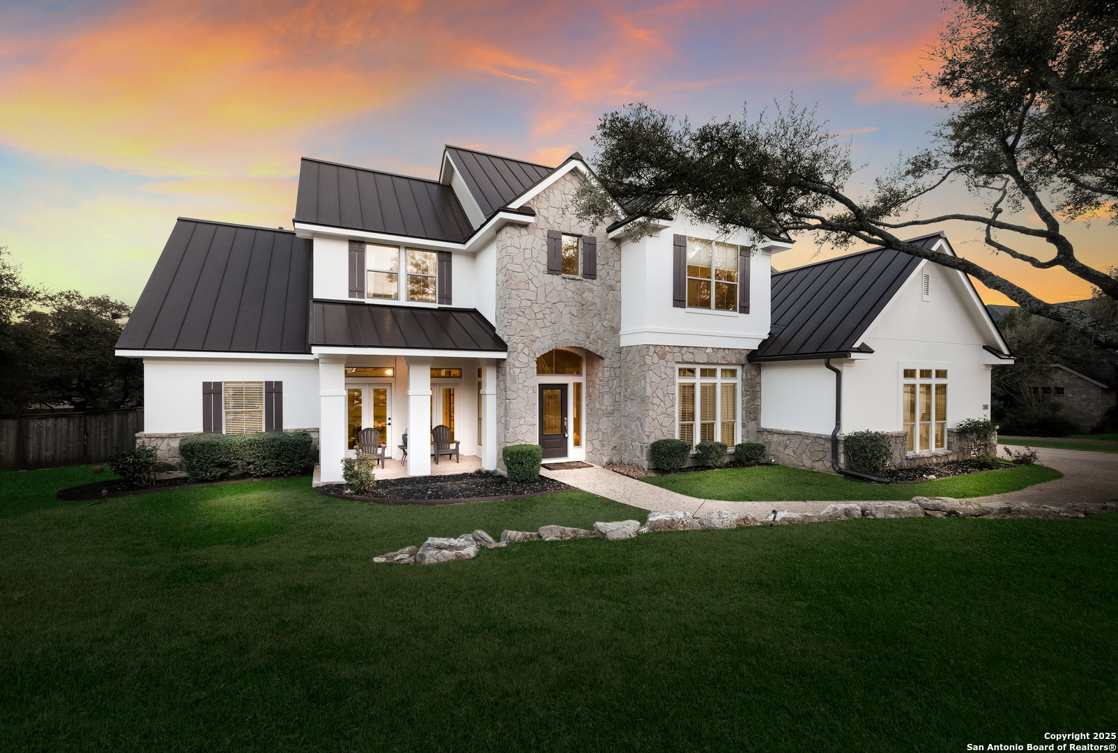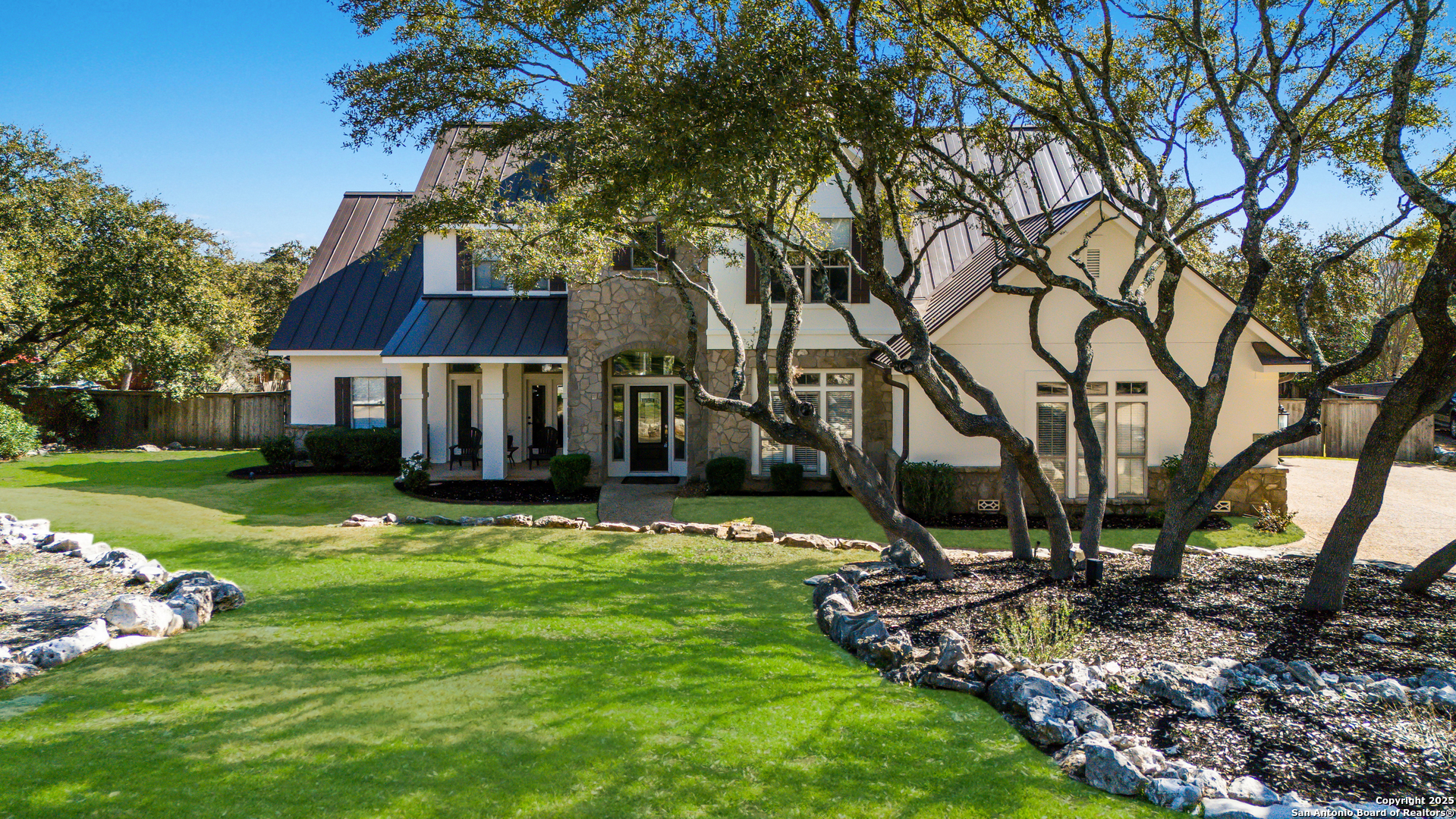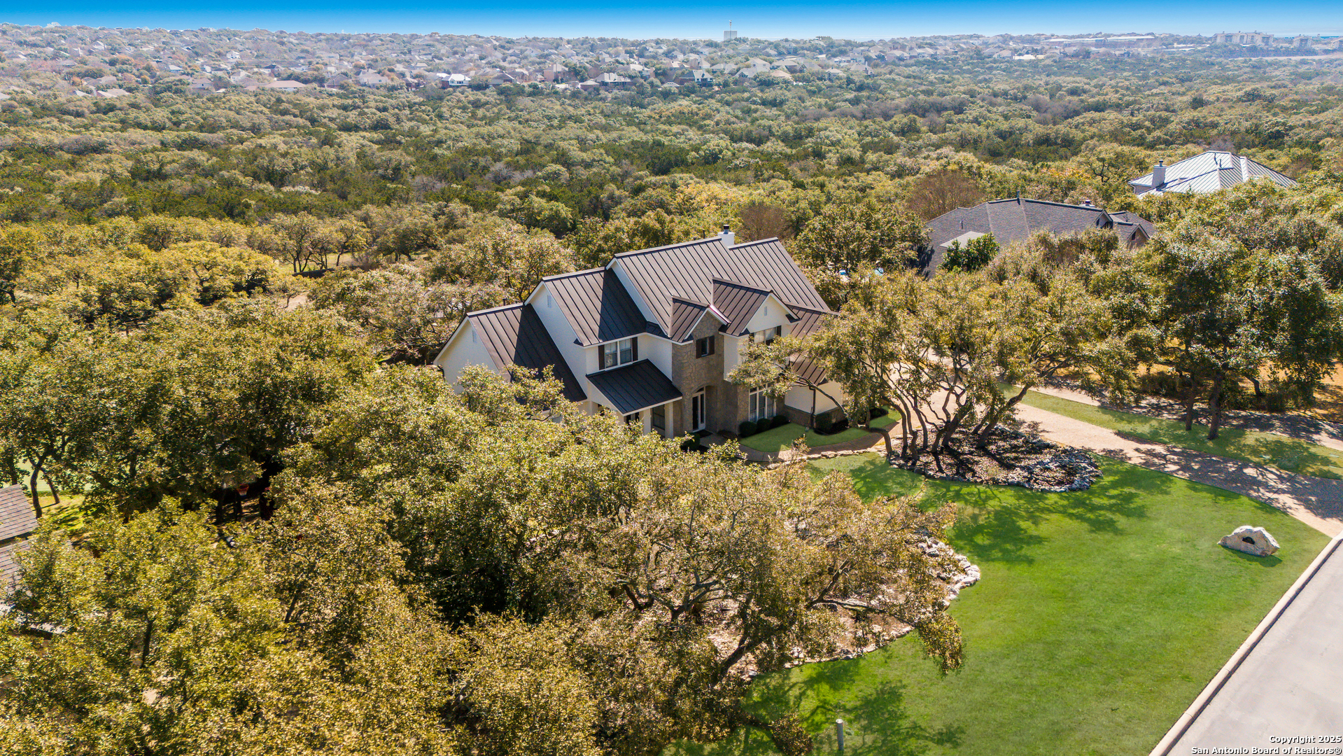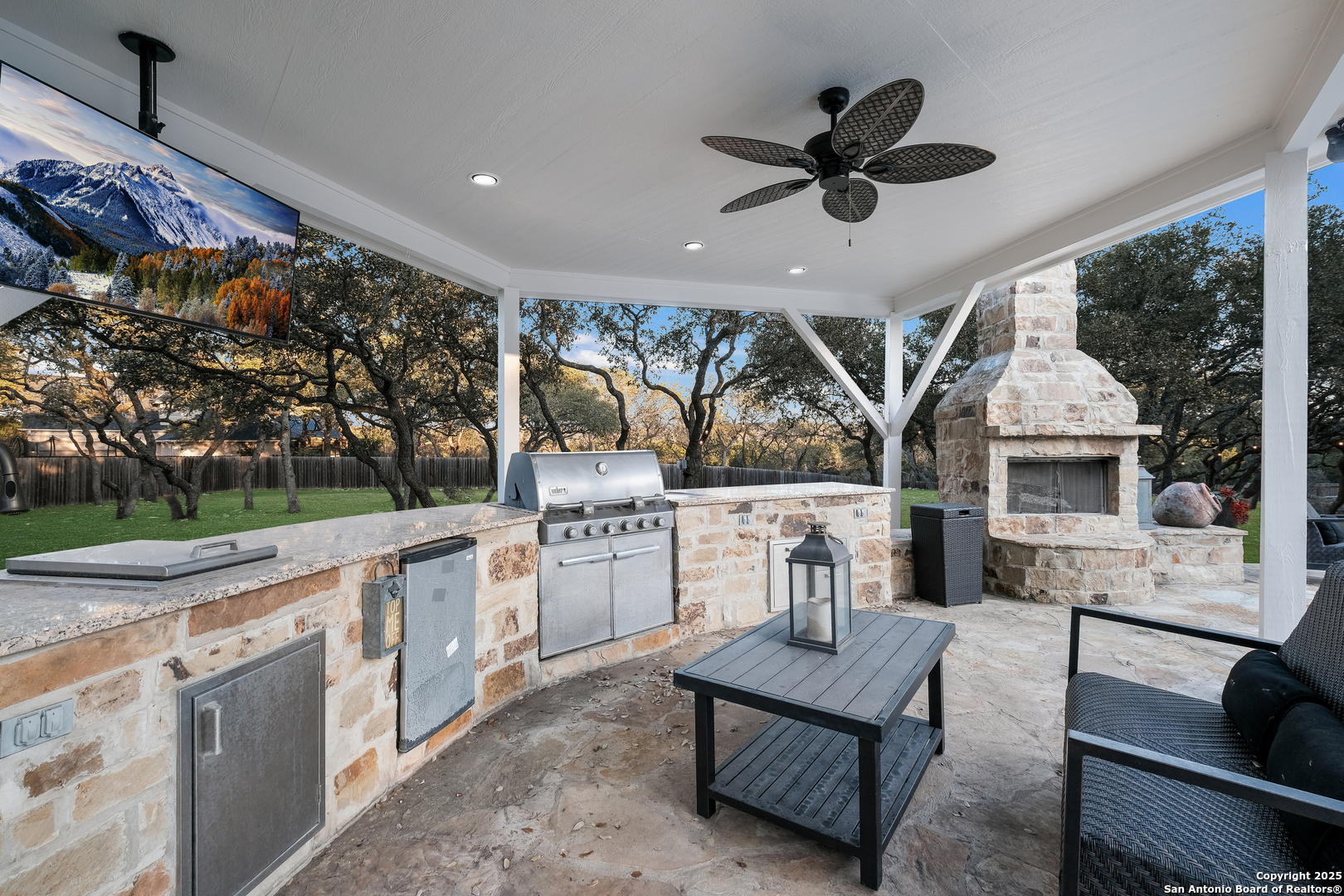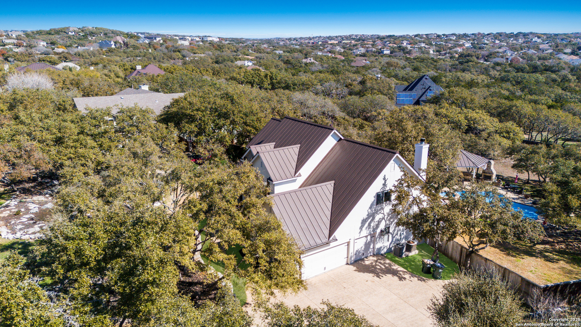 Discover your private hill country retreat set on 1.14 acres right in the heart of Stone Oak! This stunning home offers resort style living with all the conveniences of city life. Step outside to your personal oasis featuring a sparkling pool with an adjoining spa, perfect for relaxing or entertaining. Enjoy summer gatherings under the covered gazebo adjacent to the outdoor kitchen, or unwind on the expansive covered patio and freshly stained concrete patio-ideal for al fresco dining and enjoying those warm San Antonio evenings. Inside, the home boasts 4 spacious bedrooms, 3.5 modern bathrooms, a dedicated study, and a fun gameroom. The fully upgraded kitchen is a chef's dream, featuring high end cabinets, premium appliances with double ovens, gas cooking, a generous island, and a walk-in pantry. Elegant wood and tile flooring flow seamlessly throughout, ensuring a chic, low-maintenance lifestyle-no carpet in sight! The primary bedroom is conveniently located on the main level and offers private access to the outdoor patio and pool. It's a luxurious haven complete with a huge walk-in closet, a spa-like ensuite featuring a separate shower, and a relaxing garden tub. Additional highlights include a durable metal roof, fresh exterior paint, an oversized laundry room with sink and cabinets, and a spacious 3-car garage. Zoned to top-rated NEISD schools, this exceptional home perfectly blends the tranquility of hill country living with modern amenities and convenience.