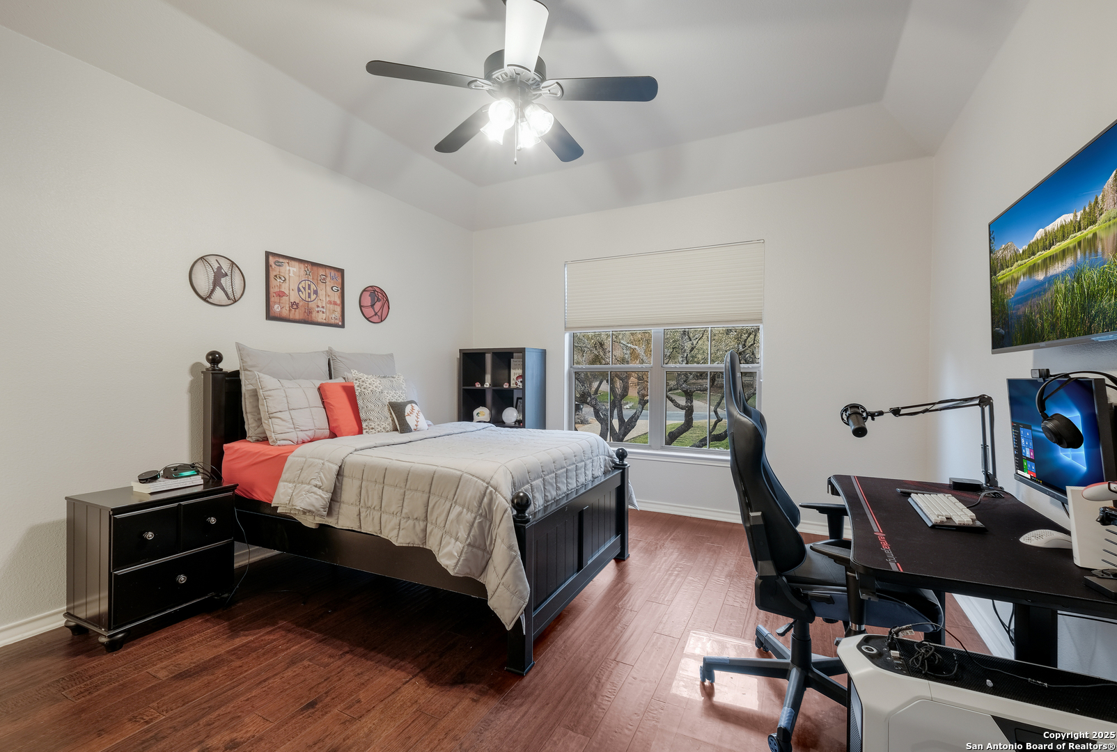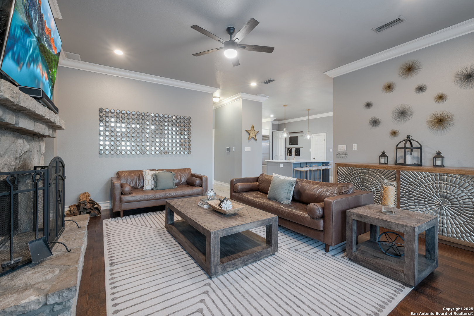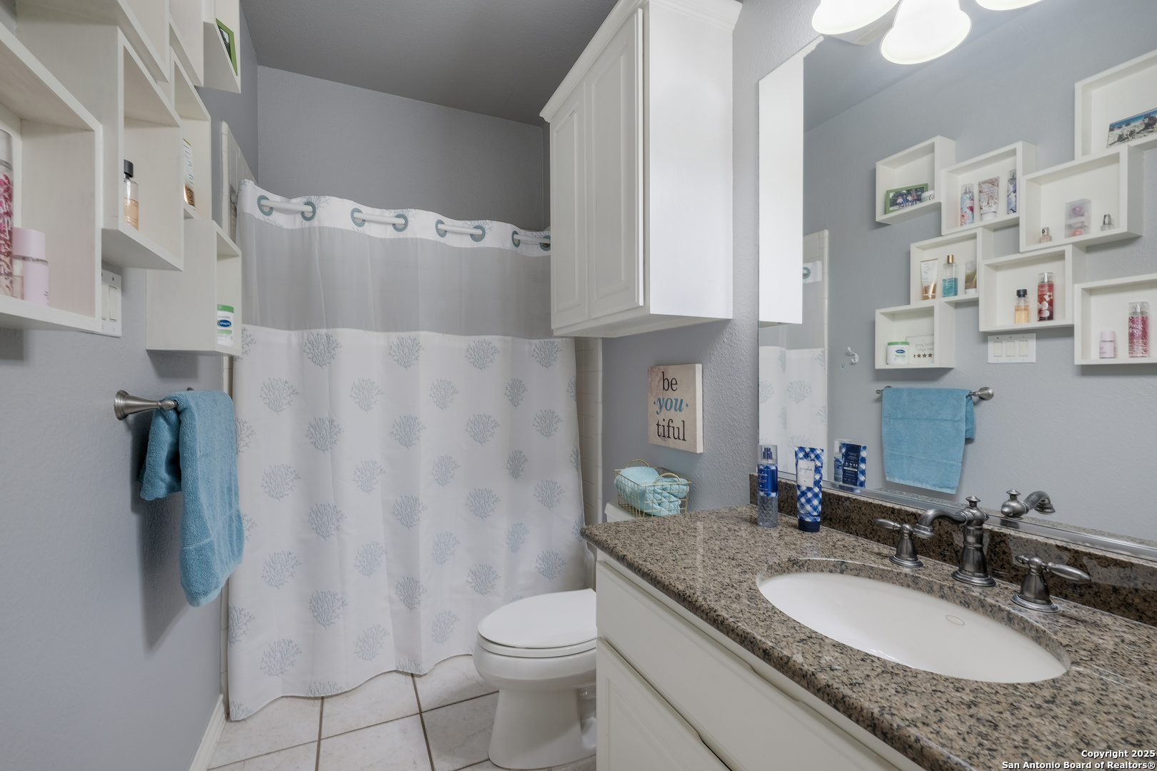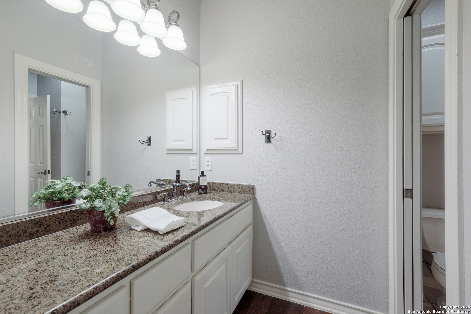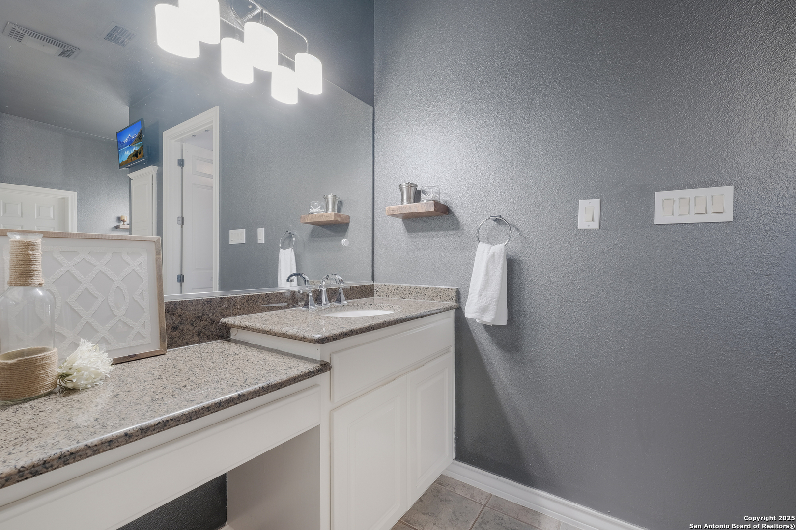 Discover your private hill country retreat set on 1.14 acres right in the heart of Stone Oak! This stunning home offers resort style living with all the conveniences of city life. Step outside to your personal oasis featuring a sparkling pool with an adjoining spa, perfect for relaxing or entertaining. Enjoy summer gatherings under the covered gazebo adjacent to the outdoor kitchen, or unwind on the expansive covered patio and freshly stained concrete patio-ideal for al fresco dining and enjoying those warm San Antonio evenings. Inside, the home boasts 4 spacious bedrooms, 3.5 modern bathrooms, a dedicated study, and a fun gameroom. The fully upgraded kitchen is a chef's dream, featuring high end cabinets, premium appliances with double ovens, gas cooking, a generous island, and a walk-in pantry. Elegant wood and tile flooring flow seamlessly throughout, ensuring a chic, low-maintenance lifestyle-no carpet in sight! The primary bedroom is conveniently located on the main level and offers private access to the outdoor patio and pool. It's a luxurious haven complete with a huge walk-in closet, a spa-like ensuite featuring a separate shower, and a relaxing garden tub. Additional highlights include a durable metal roof, fresh exterior paint, an oversized laundry room with sink and cabinets, and a spacious 3-car garage. Zoned to top-rated NEISD schools, this exceptional home perfectly blends the tranquility of hill country living with modern amenities and convenience.