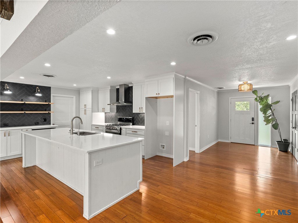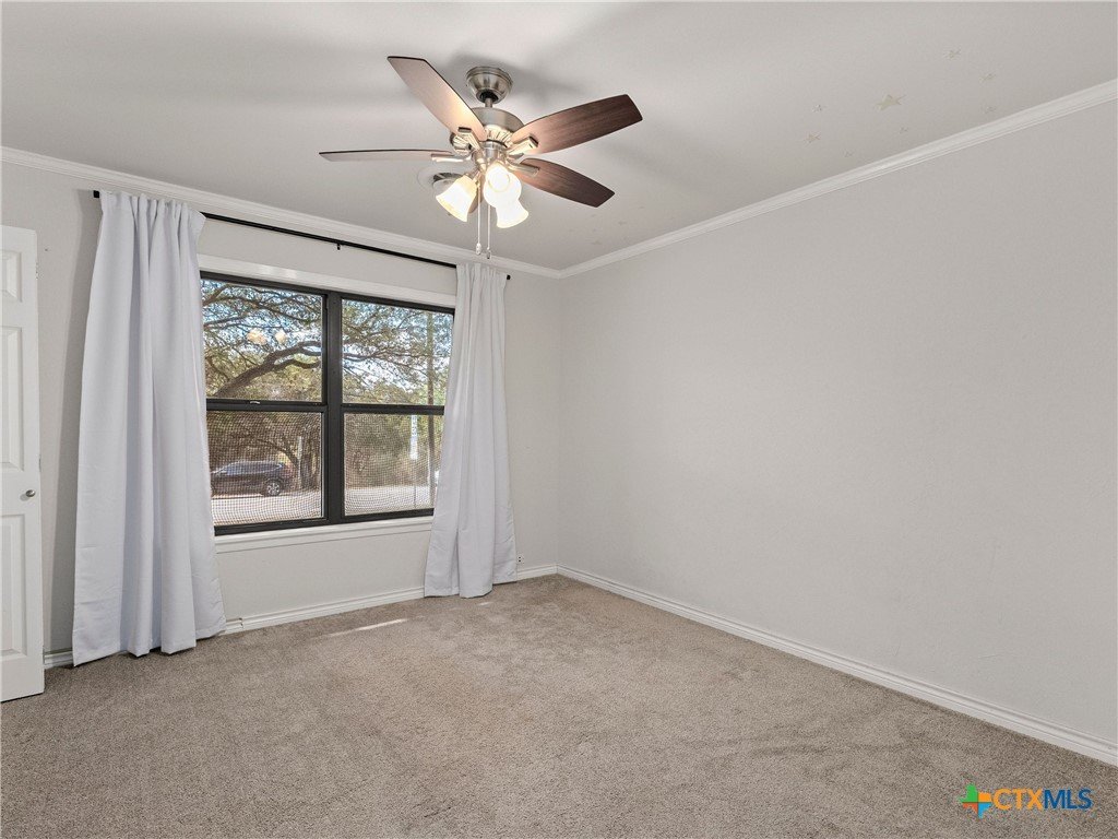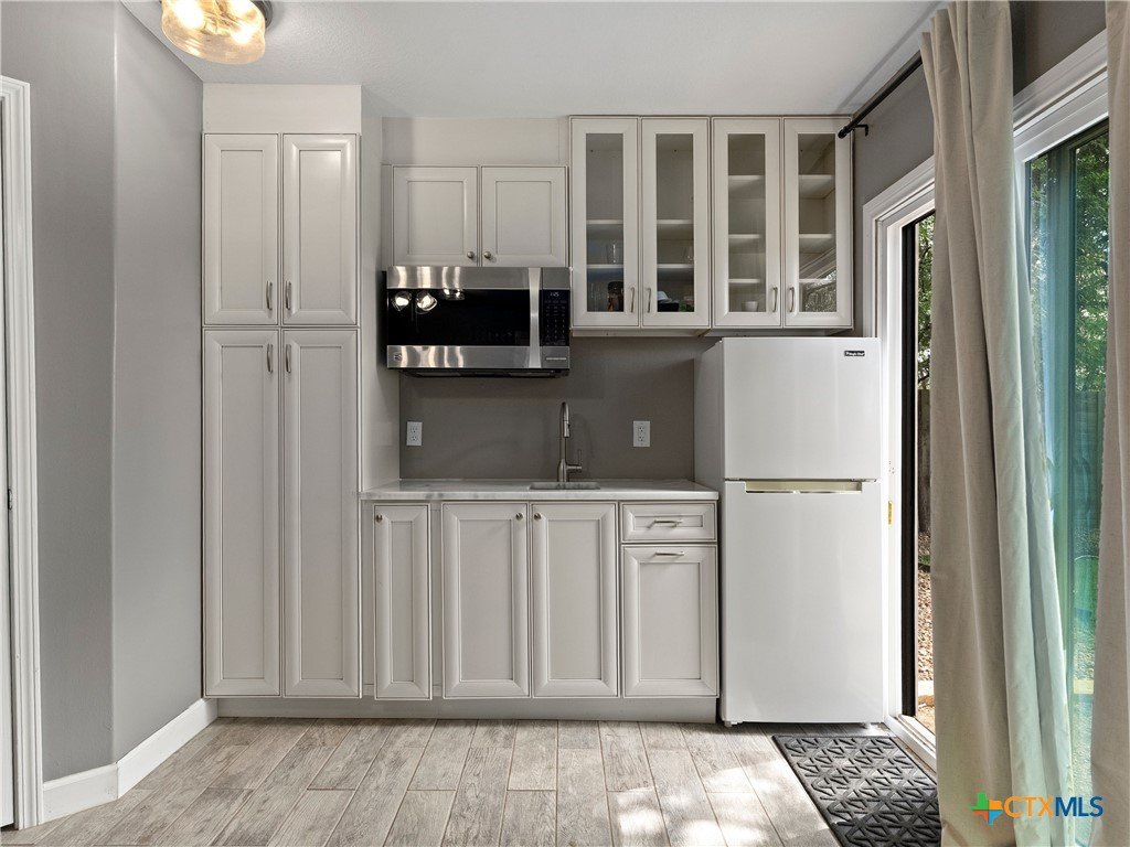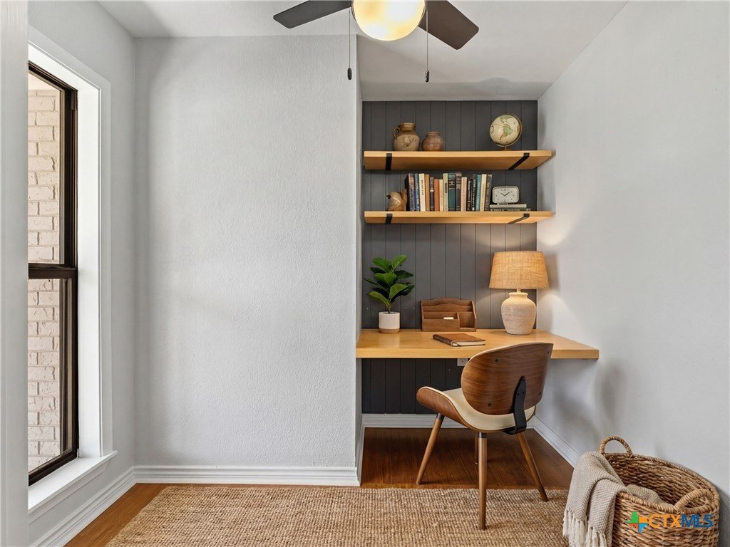 Perched on "The Hill" in coveted Landa Park Highlands, this one-of-a-kind property sits on a private half-acre lot shaded by mature trees. It is just steps from Panther Canyon Trail and a golf cart ride from downtown New Braunfels, Landa Park and Historic Gruene. The main home delivers 3 bedrooms, 2 full baths, and a game room with an open, airy layout anchored by beamed ceilings, crown molding, quartz countertops, and a chef's kitchen featuring a built-in gas range, double oven, kitchen island, and breakfast bar. A fully separate living space with its own bath and kitchenette provides exceptional flexibility perfect for a private home office or guest retreat. Enjoy the warmth of a fireplace, recessed lighting throughout, and 2-car garage. A rare find: private, elevated, and minutes from everything New Braunfels has to offer.