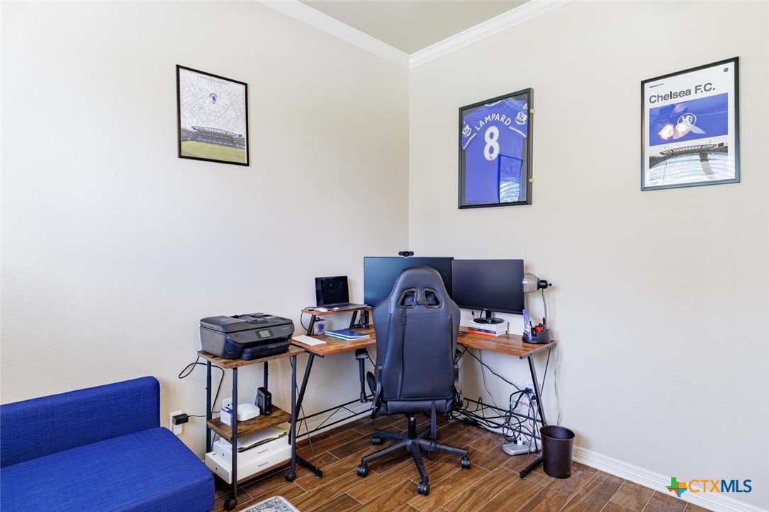 Welcome to this stunning single-story home nestled in the desirable Woodland Trails neighborhood, set on over half an acre of land. Featuring 4 spacious bedrooms and 2.5 baths, this home offers an open-concept kitchen that flows seamlessly into the living area—perfect for both everyday living and entertaining. You'll also find a formal dining room and a dedicated office, providing space for work and gatherings. The luxurious primary suite includes a spa-like bathroom with a walk-in shower, a large soaking tub, and an expansive walk-in closet. Step outside to a beautifully designed back patio complete with a cozy fireplace, outdoor sink, and a built-in space for your BBQ pit—ideal for Texas evenings. The oversized backyard offers plenty of room for relaxation or recreation, while thoughtful features such as plantation shutters, window blinds, a three-car garage, and a full sprinkler system add comfort and convenience. This home truly has it all!