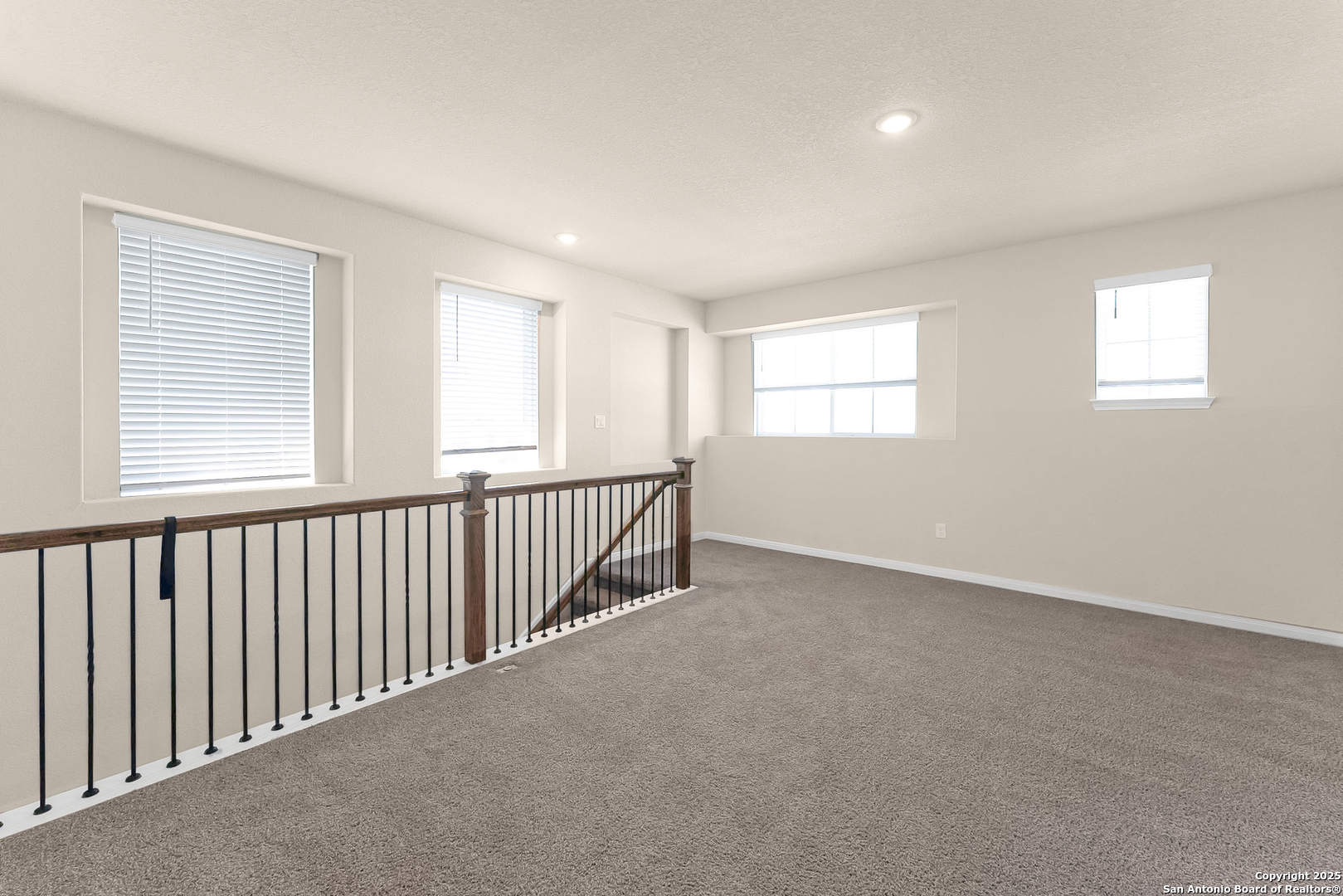 A beautiful and meticulously cared for almost new home with wonderful upgrades and luxury finishes! A stately entryway opens into a light and bright home with upgraded tile flooring throughout the wet areas, a spacious living room and kitchen with upgraded cabinetry, granite countertops, recessed lighting, stainless steel appliances and a kitchen island with built-in USB charging ports and pendant lighting! The large downstairs master suite features a bay window in the bedroom and a huge master bathroom with walk-in tiled shower, granite countertops and a large walk-in closet! Metal stair spindles lead to the upstairs which features a game room, large media room, 3 spacious secondary bedrooms and a full secondary bathroom with granite countertops! Out back enjoy the large covered patio! Home also features a full sprinkler system, large laundry room and a water softner! Home is located directly across from the neighborhood amenity center. A must see home! Fridge, Washer/Dryer included!!