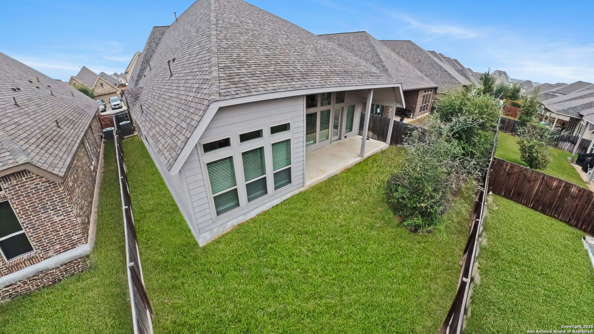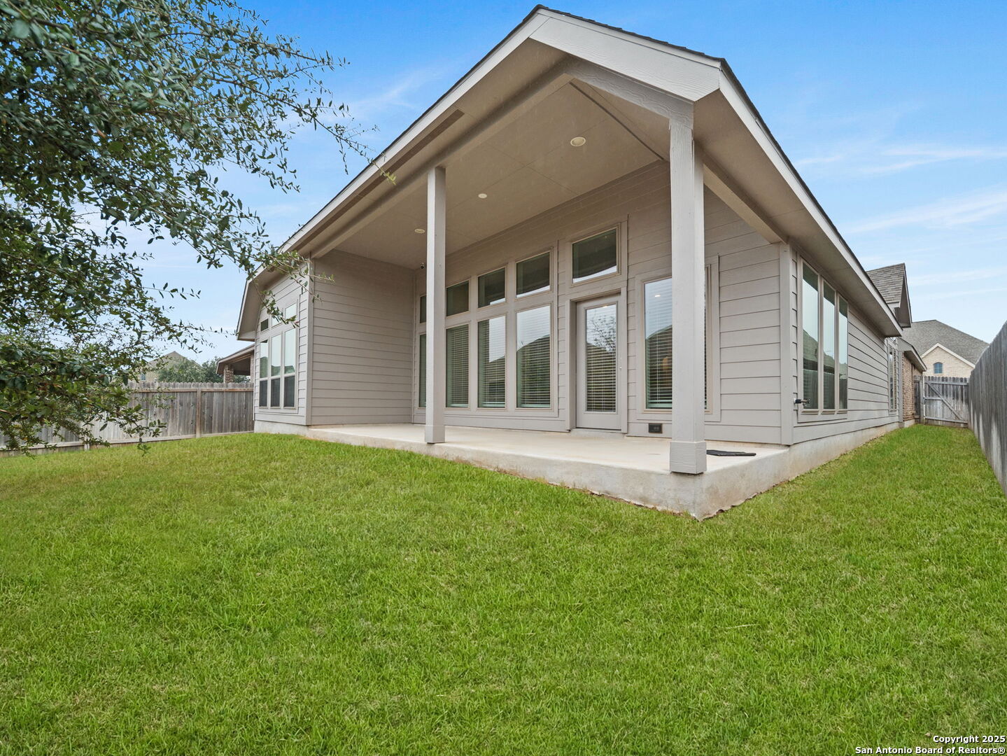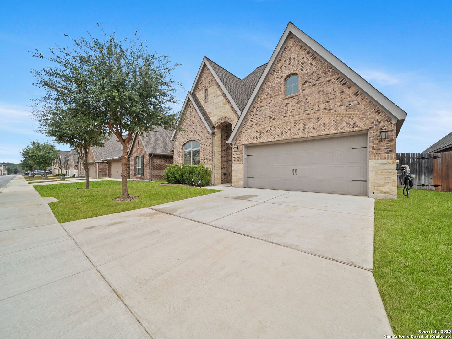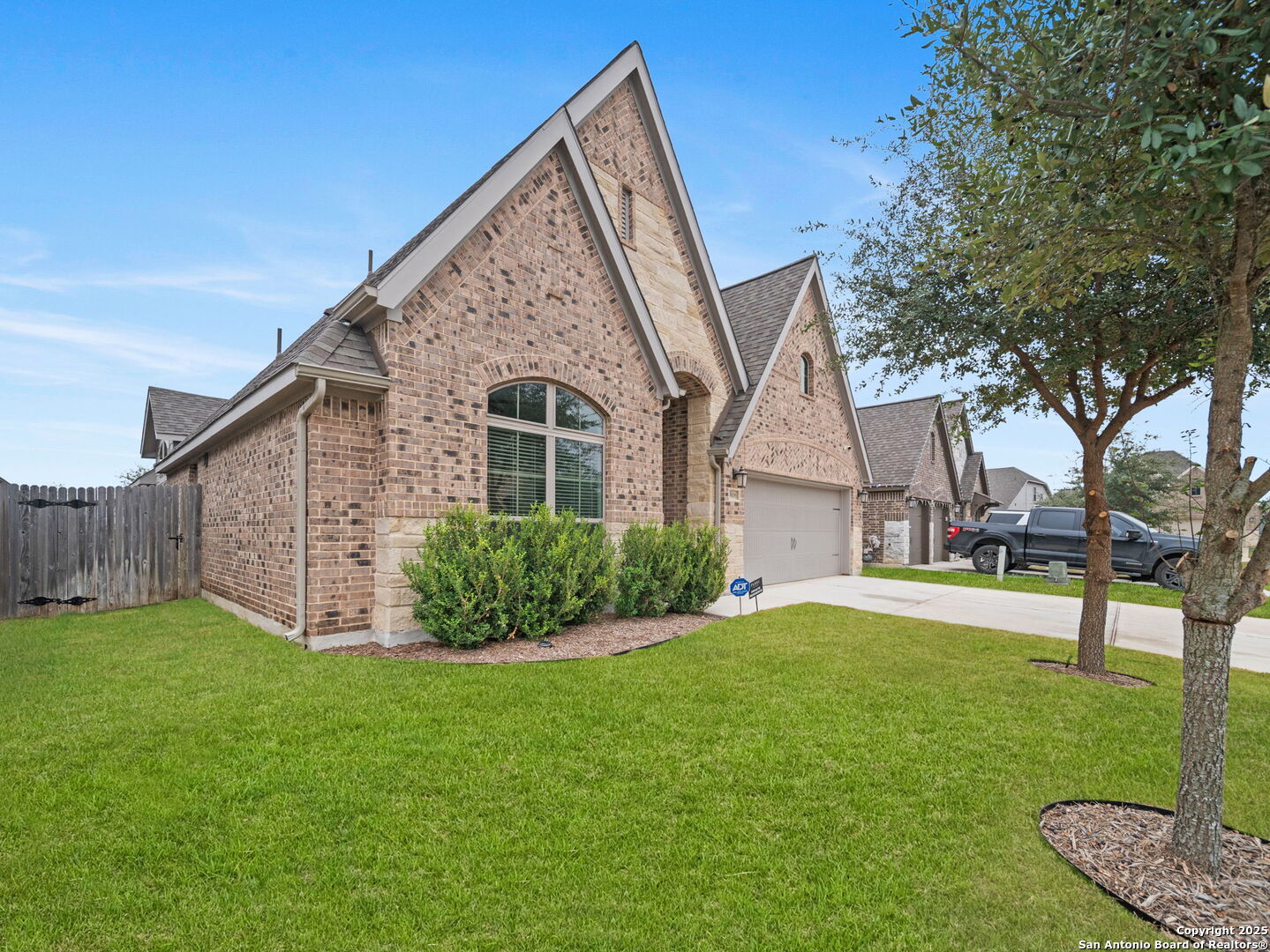 $10,000 in closing costs you don't want to miss! Welcome to this stunning 4-bedroom, 3-bath home located in the desirable Kallison Ranch community. Built in 2019, this well-maintained property offers an open-concept layout with high ceilings, abundant natural light, and modern finishes throughout. The spacious kitchen features a large island with seating, stainless steel appliances, granite countertops, and a walk-in pantry, opening to a bright living area perfect for entertaining. The primary suite includes a garden tub, separate shower, dual vanities, and a large walk-in closet. Additional features include a formal dining room, versatile game room or office with French doors, and a full guest suite. Enjoy outdoor living on the covered patio overlooking the fenced backyard. Community amenities include pools, playgrounds, and walking trails. Conveniently located near shopping, dining, and top-rated NISD schools, this home offers comfort and convenience in one of San Antonio's most sought-after areas. Buyer and Buyer's Rep to verify all information contained herein.